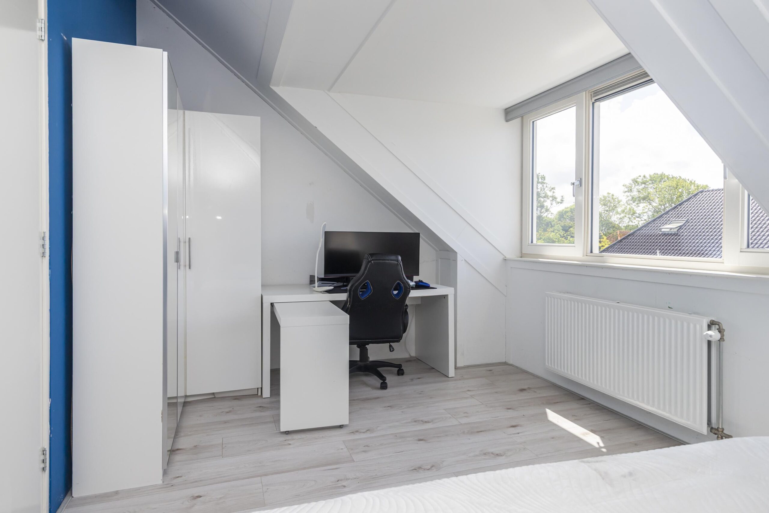 Grenzend aan de woonkamer bevindt zich een extra kamer, ideaal als werkkamer of praktijkruimte. Deze is voorzien van airco én dubbele deuren naar de achtertuin.