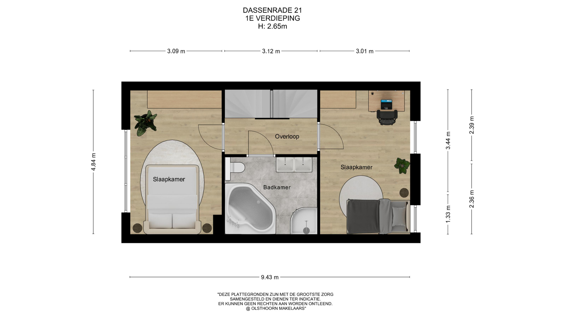 Het is mogelijk om de kamers aan voorzijde te splitsen in 2 slaapkamers waardoor er totaal 5 of zelfs 6 slaapkamers kunnen worden gemaakt.