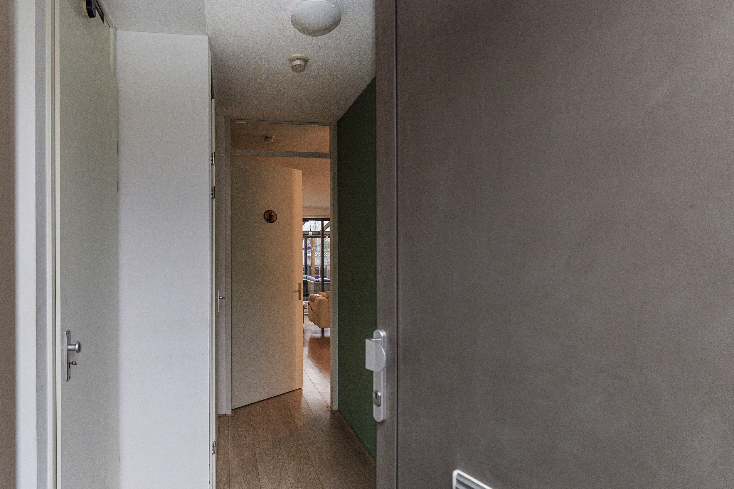 Via de entree kom je binnen in de hal met toegang tot het separate toilet en de woonkamer. De woonkamer is ruim opgezet en biedt volop mogelijkheden voor een comfortabele zit- en eethoek. De keuken sluit hier praktisch op aan en vormt samen met de woonkamer een prettig geheel. Aan de achterzijde geven grote raampartijen toegang tot de veranda, een fijne verlenging van de woonruimte. Dankzij de vloerverwarming is deze ruimte het hele jaar door comfortabel te gebruiken. Vanuit de veranda is de tuin bereikbaar, waar ook een berging aanwezig is, ideaal voor het stallen van fietsen en tuingereedschap.