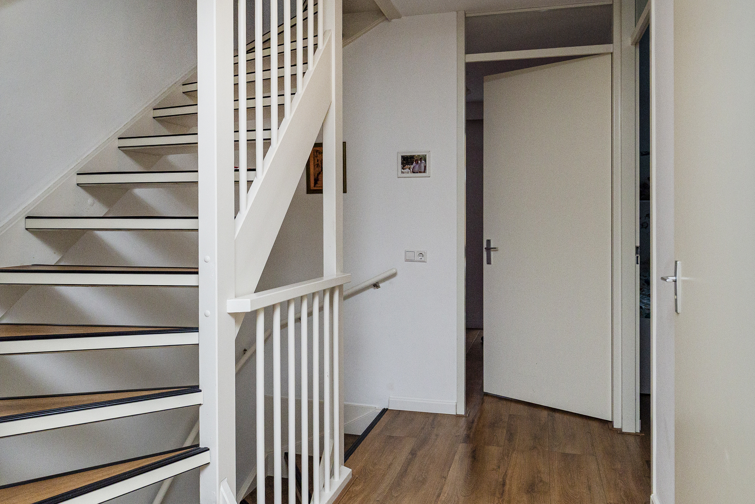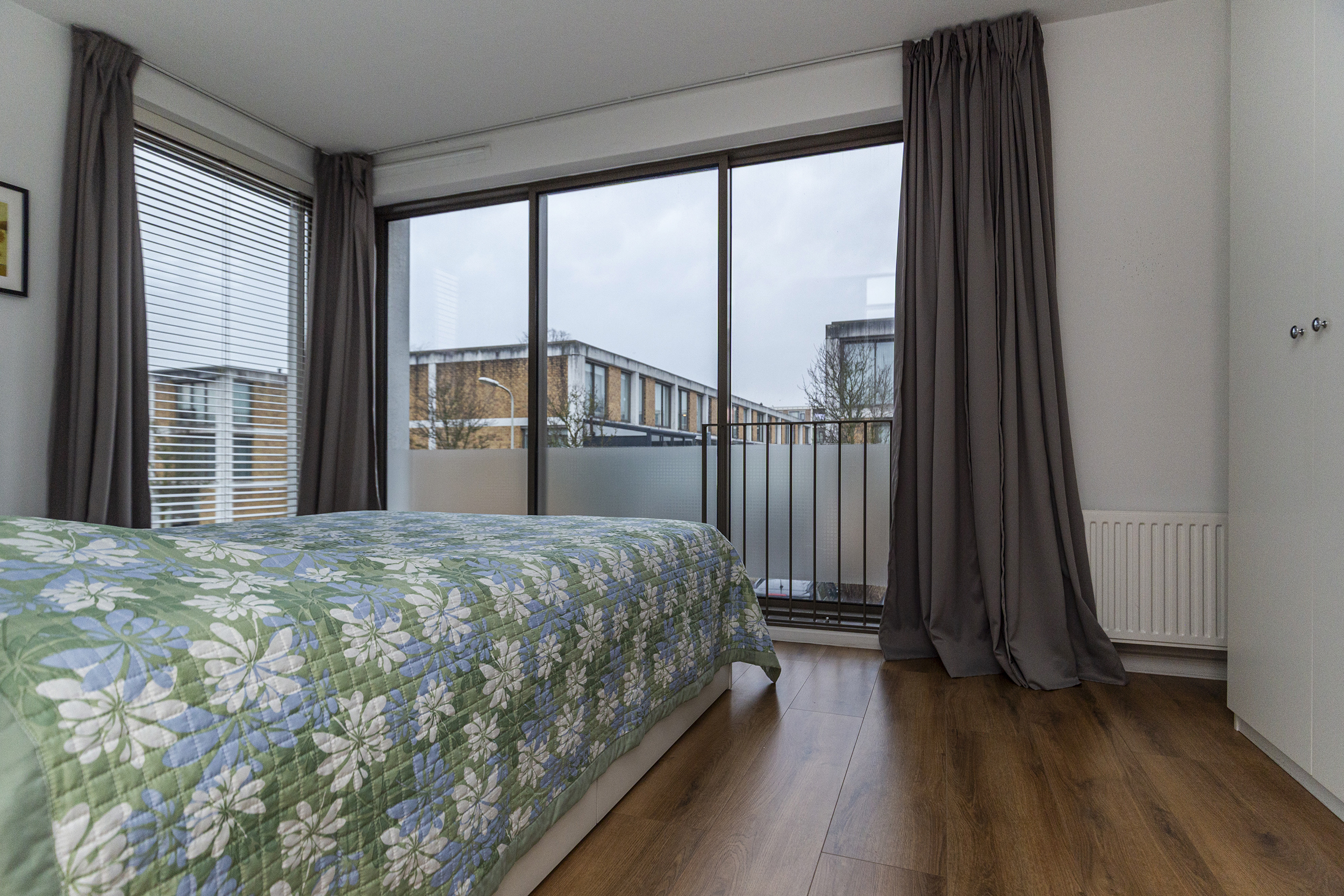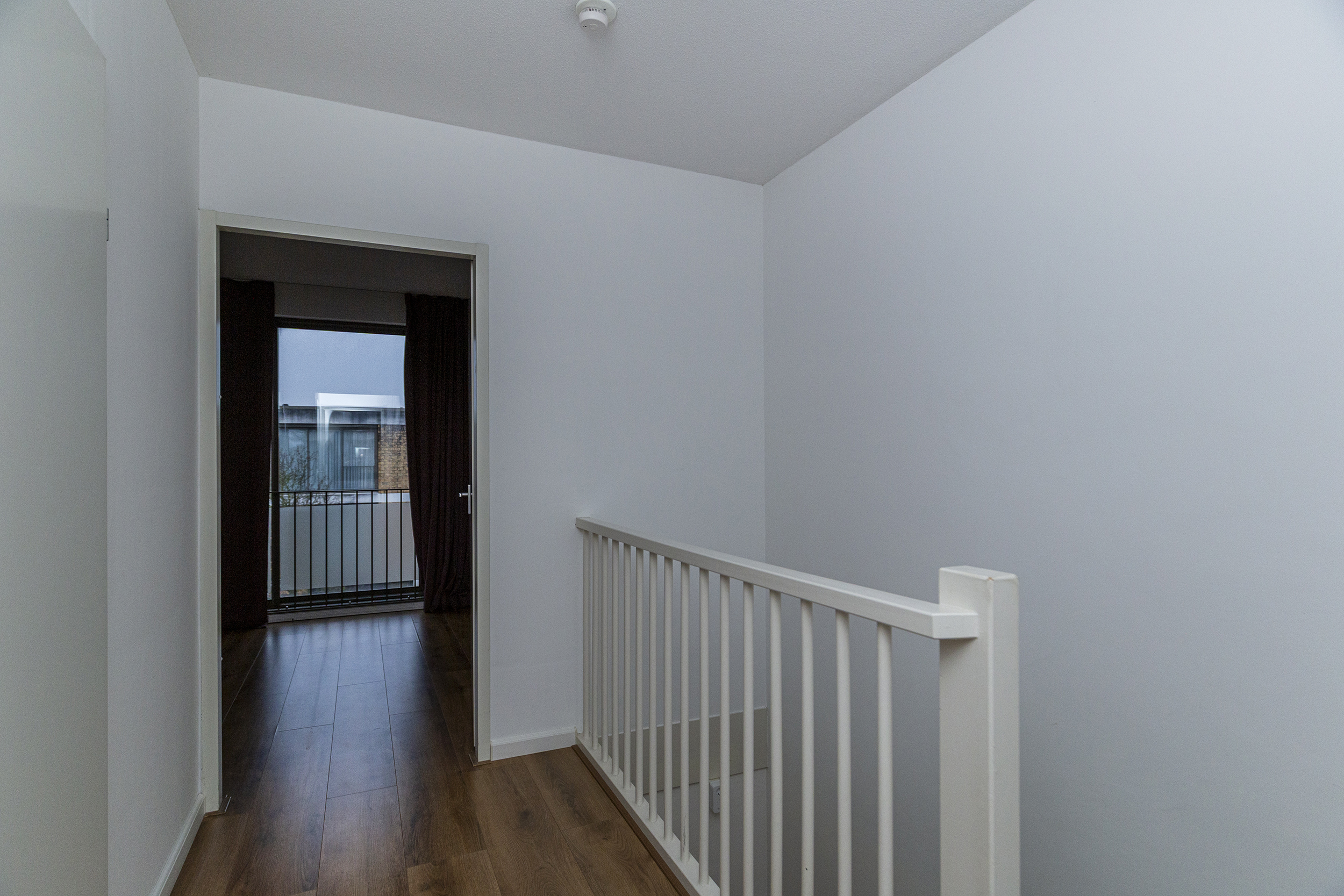 Op de eerste verdieping geeft de overloop toegang tot de verschillende vertrekken. Hier bevinden zich drie slaapkamers, geschikt als slaap-, werk- of hobbyruimte. De badkamer is centraal gelegen en compleet uitgevoerd met een ligbad, douche en wastafel. De vloerverwarming zorgt hier voor extra comfort en een aangename start van de dag.