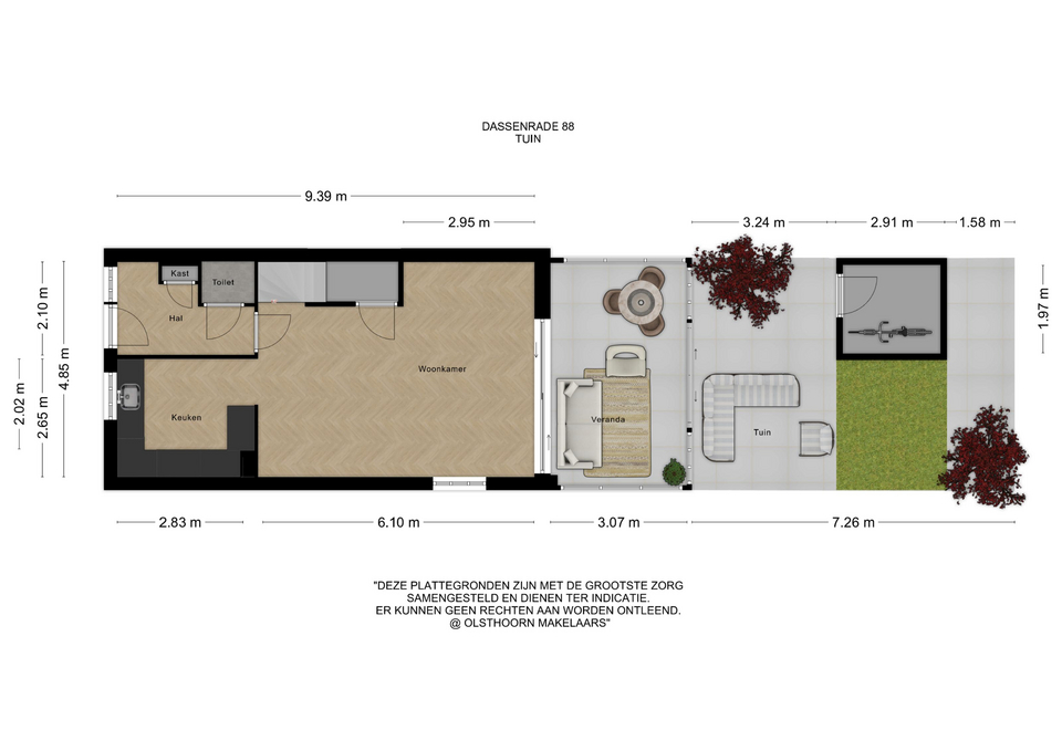- Oppervlakte hoofdtuin 37 m2