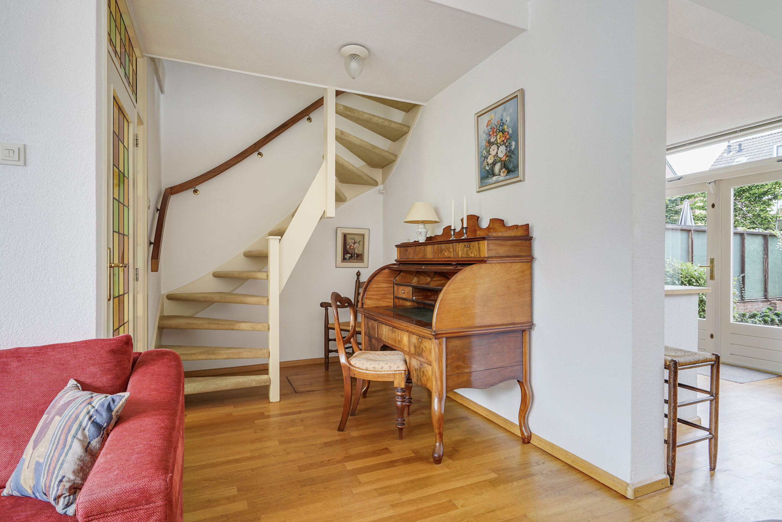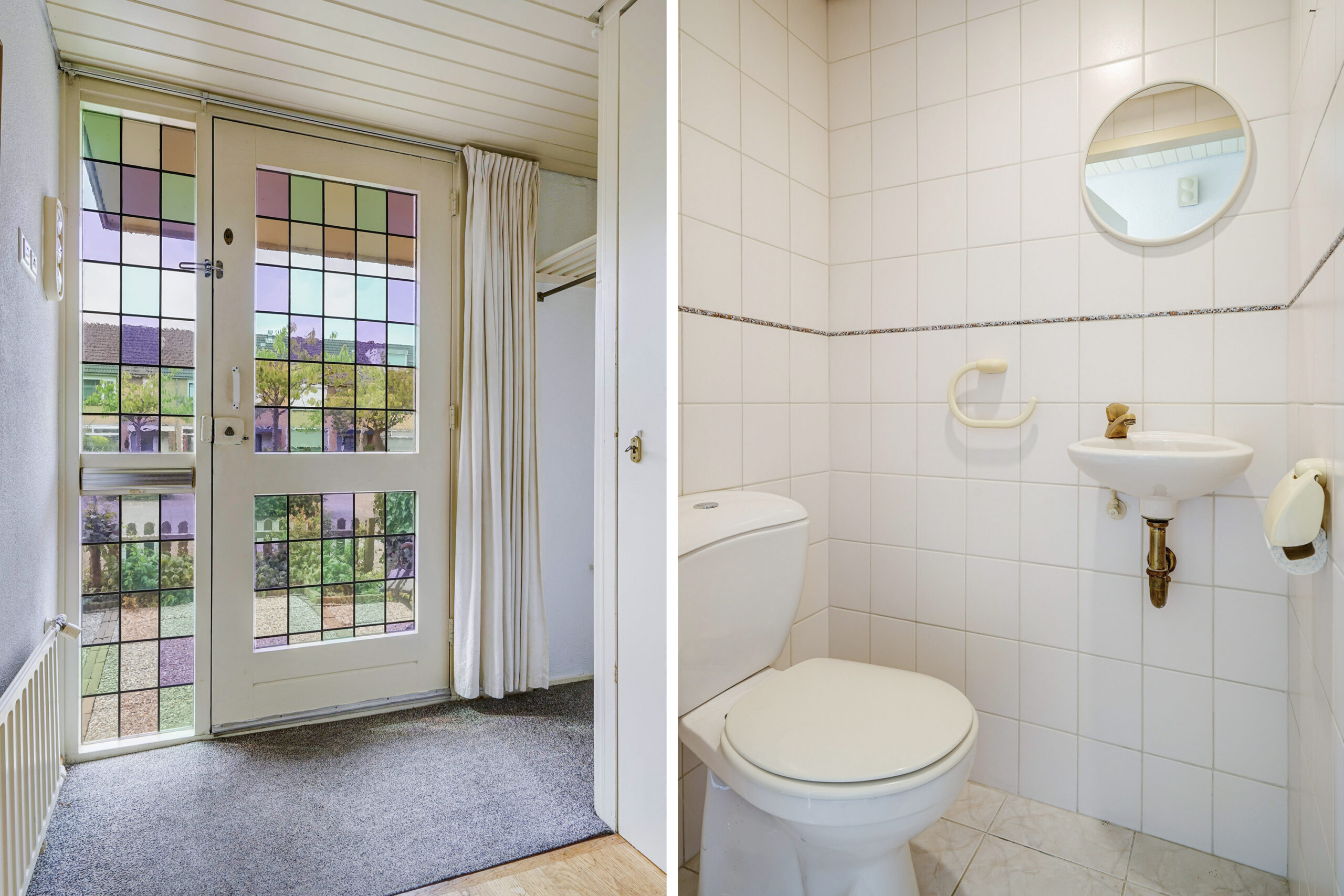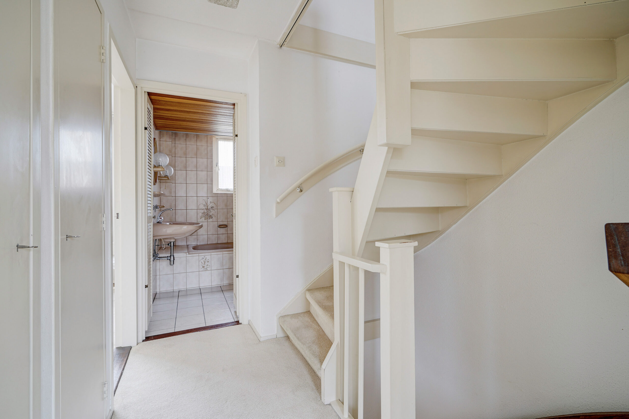 Je komt binnen via de voortuin en stapt de hal in met meterkast en een toilet met fonteintje. Vanuit de hal bereik je de lichte doorzonwoonkamer, waar grote ramen aan voor- en achterzijde zorgen voor veel natuurlijk licht. Aan de achterzijde van de woning vind je de open keuken, uitgerust met een 4-pits gaskookplaat, oven, vaatwasser en een koel-/vriescombinatie. Middels de trap bereikt u de eerste verdieping. Een deur biedt toegang tot de achtertuin met een vrijstaande stenen berging en een achterom.