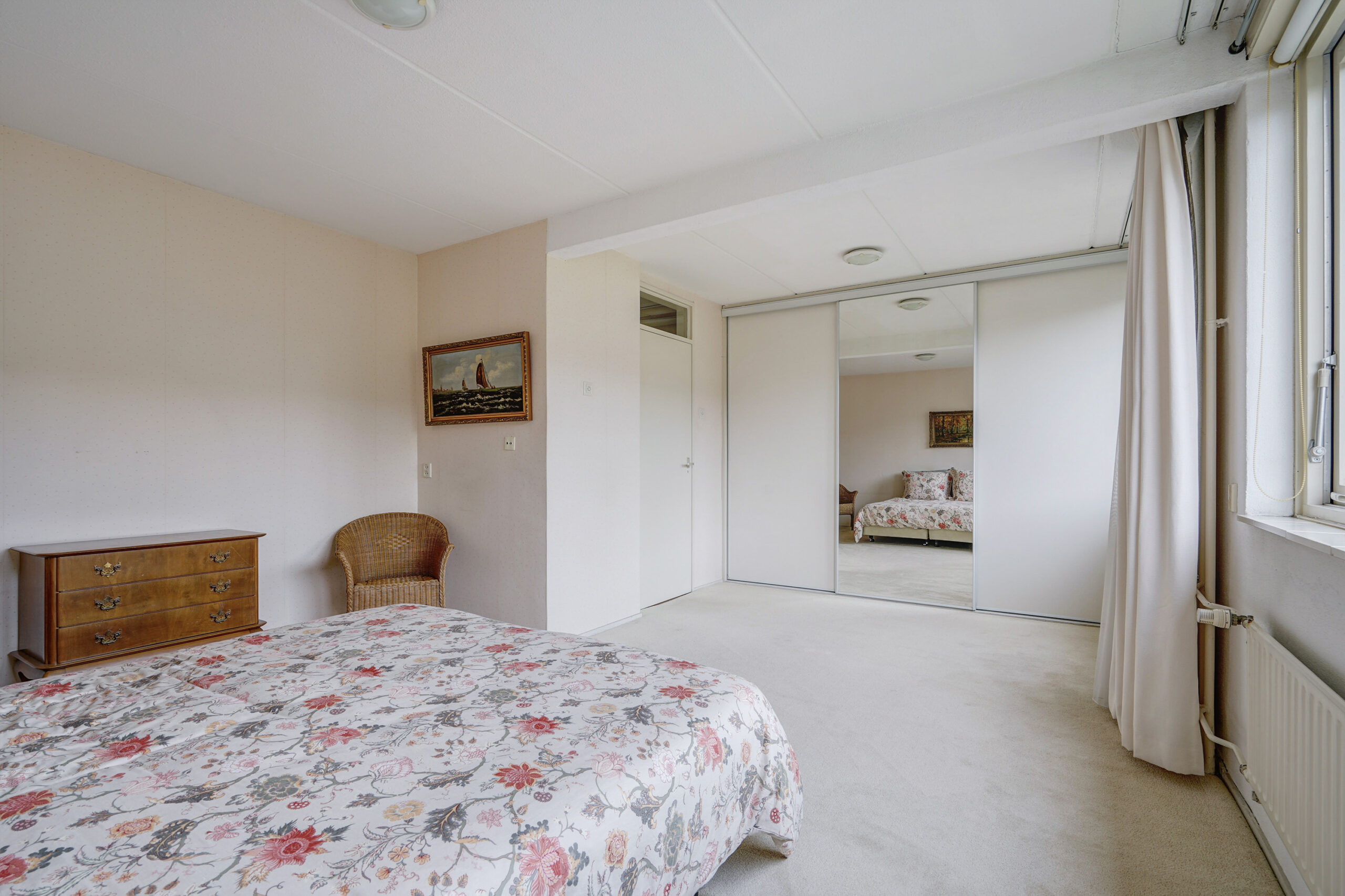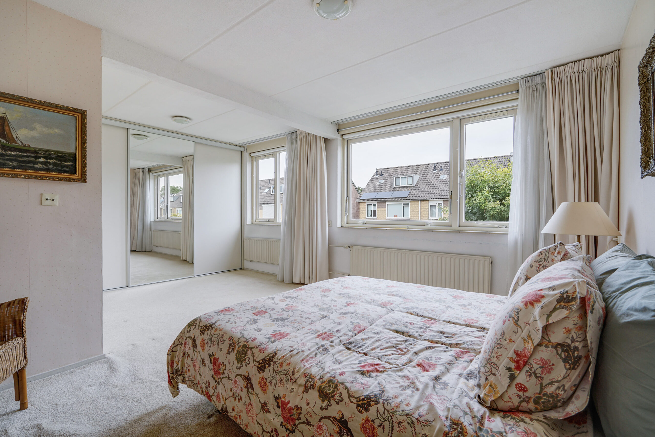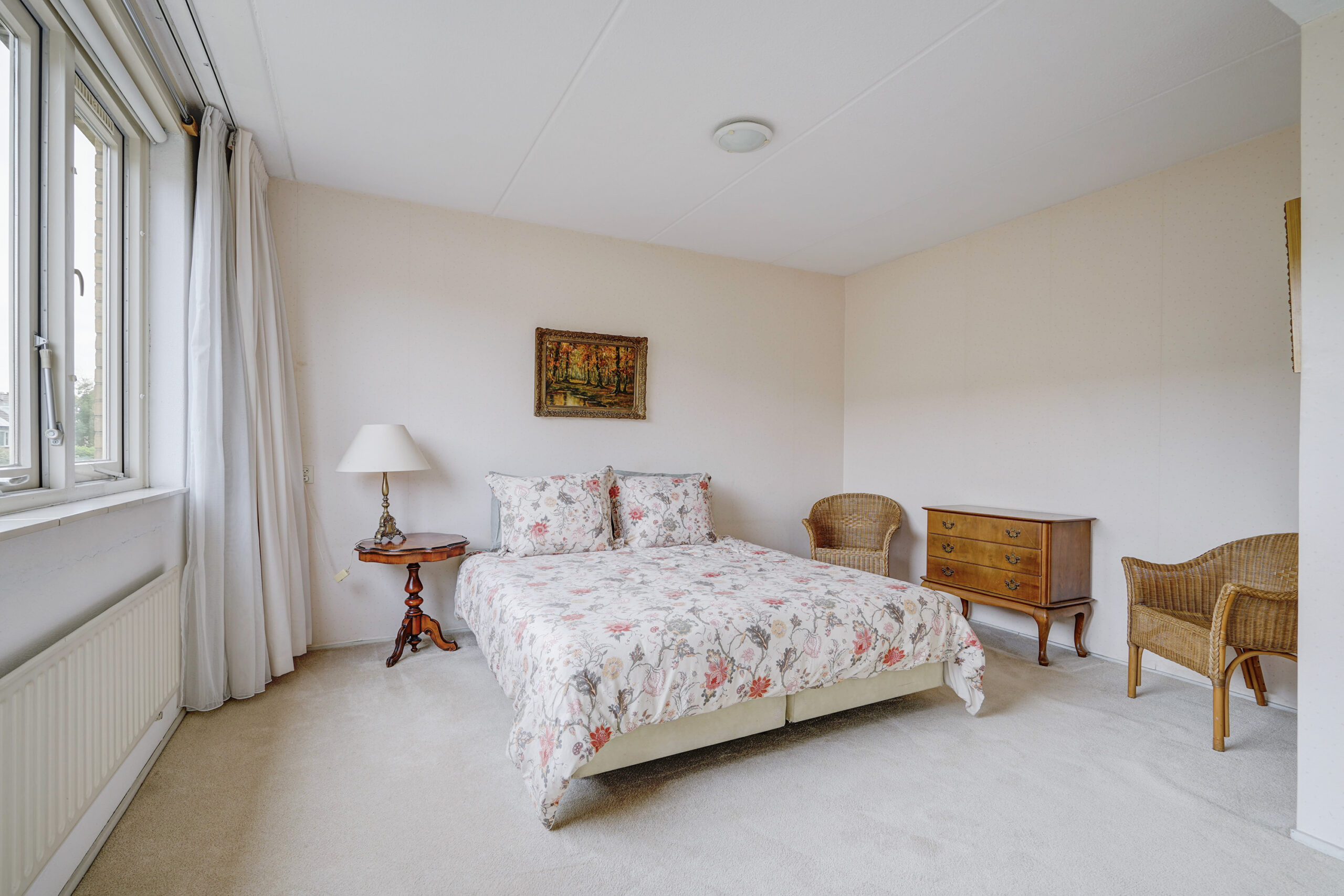 De overloop geeft toegang tot twee ruime slaapkamers. Aan de voorzijde bevindt zich een slaapkamer met vaste kasten, ideaal als werkkamer of logeerkamer. Aan de achterzijde ligt de woningbrede hoofdslaapkamer, eveneens voorzien van handige inbouwkasten. De badkamer aan de voorzijde beschikt over een ligbad, toilet en wastafel.
