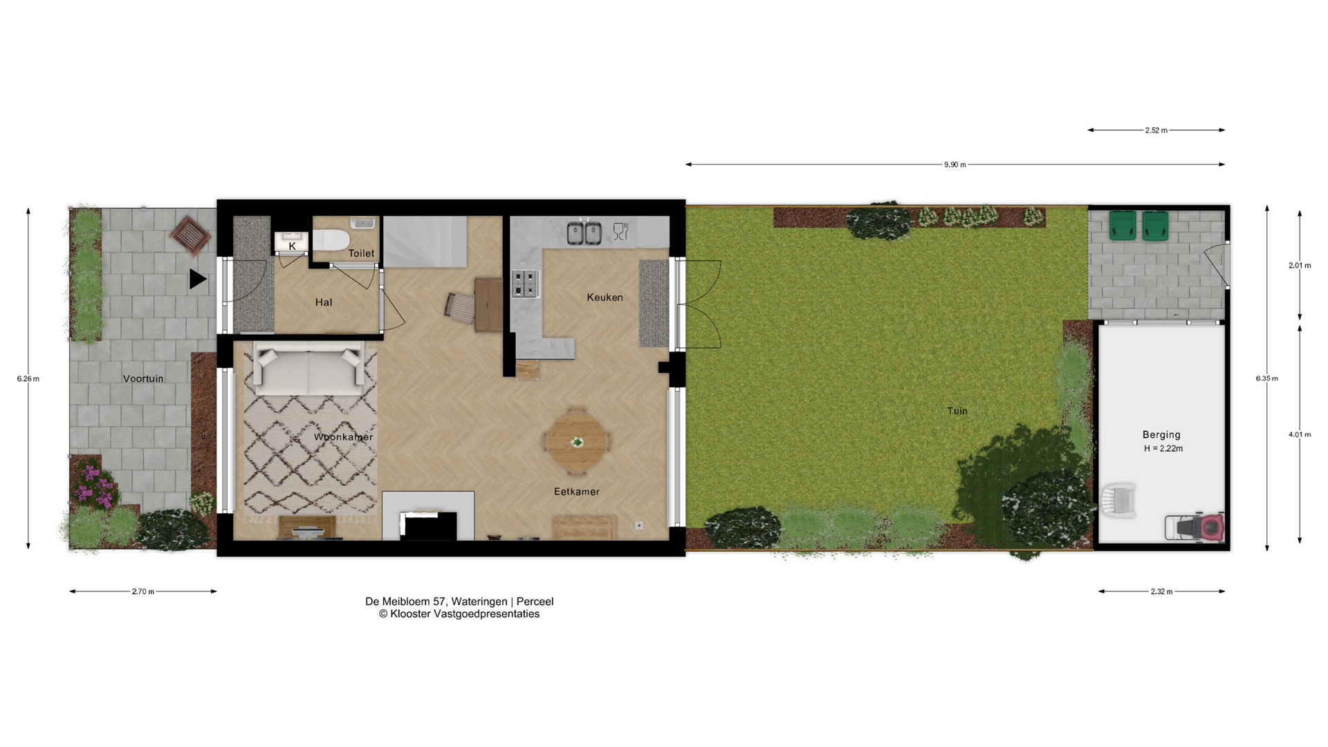 De woning beschikt over zowel een voor- als achtertuin, ideaal voor wie graag buiten zit of tuinliefhebber is. De achtertuin is bereikbaar via een achterom en beschikt over een vrijstaande stenen berging. In de straat aangrenzend aan De Meibloem, op nog geen minuut lopen, bevindt zich bovendien een eigen stenen garage met elektrisch bedienbare deur — ideaal voor opslag of parkeren.