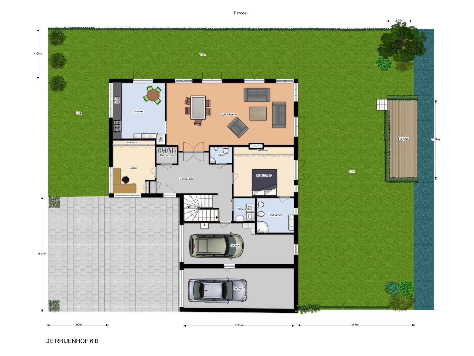 De villa biedt een royale woonoppervlakte van 485 m² en wordt omgeven door een zonnige, goed onderhouden tuin aan het water. Er is ruime parkeergelegenheid op eigen terrein en een dubbele garage die niet alleen ruimte biedt voor meerdere voertuigen, maar ook perfect is als opslag- of hobbyruimte.