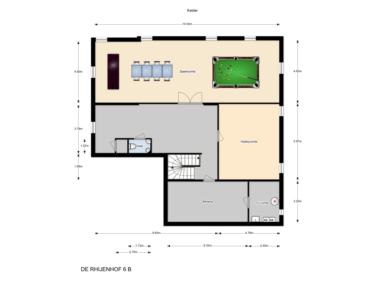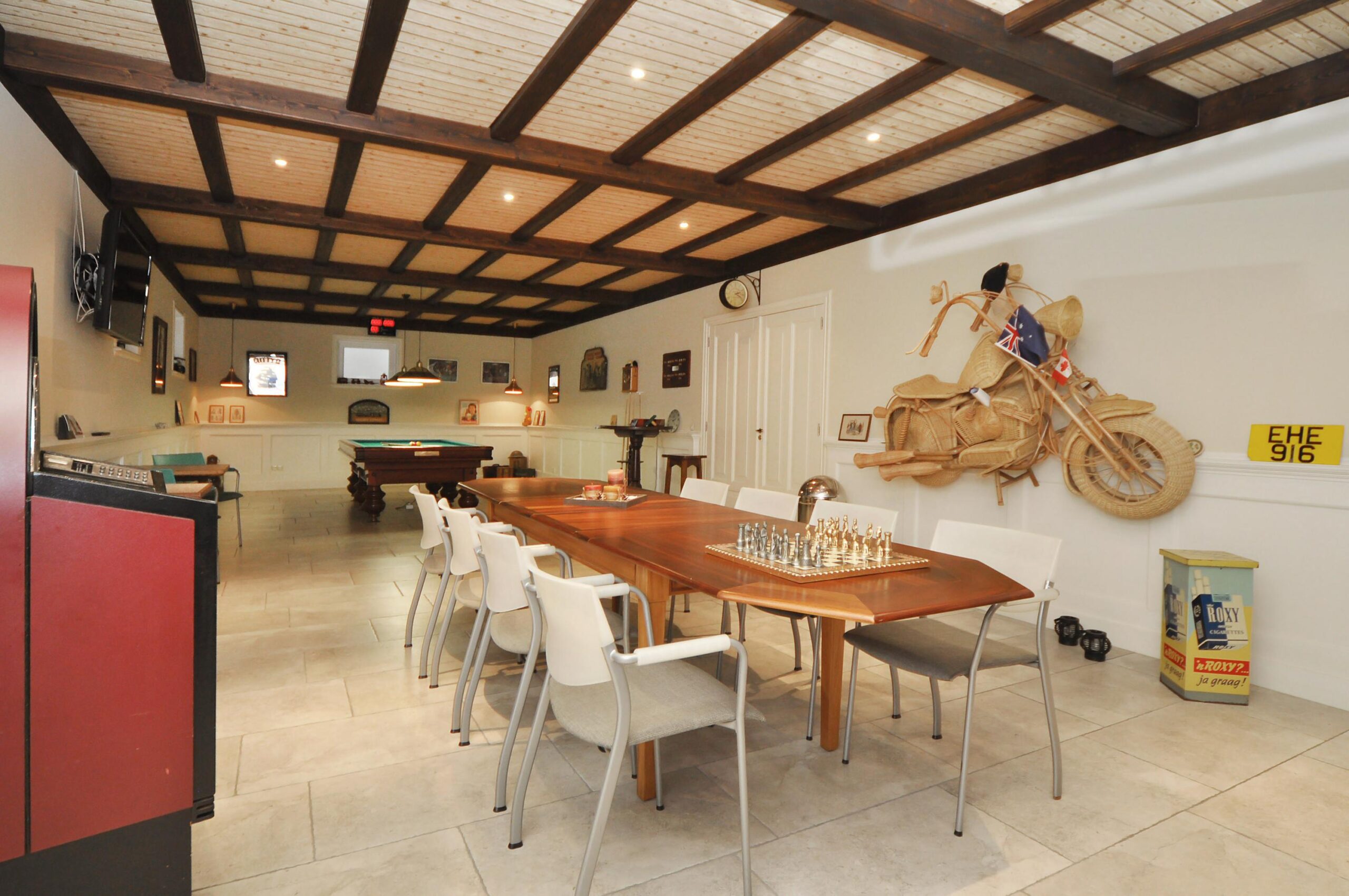 De kelderverdieping van ca. 148 m² biedt een geweldige ruimte voor ontspanning en hobby’s. Hier vindt u een gezellige bar van 4,80 x 14,54 m¹ met ingebouwde biertap en koelkast, ideaal voor borrels en feestjes. De ruimte biedt daarnaast plek voor bijvoorbeeld een biljarttafel of bioscoopopstelling. Verder bevinden zich hier een tweede hobbyruimte, toiletruimte, berging en technische ruimte.