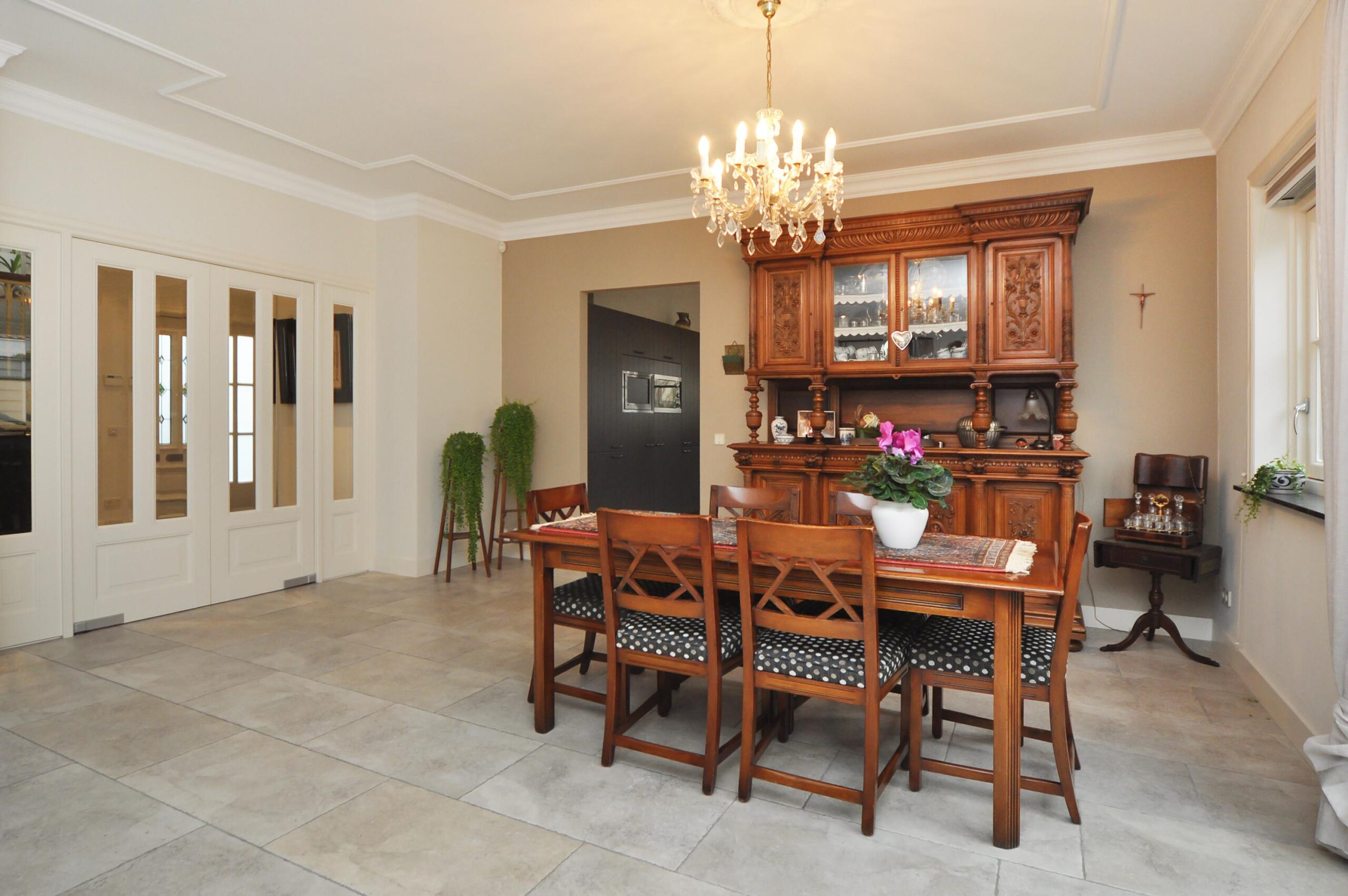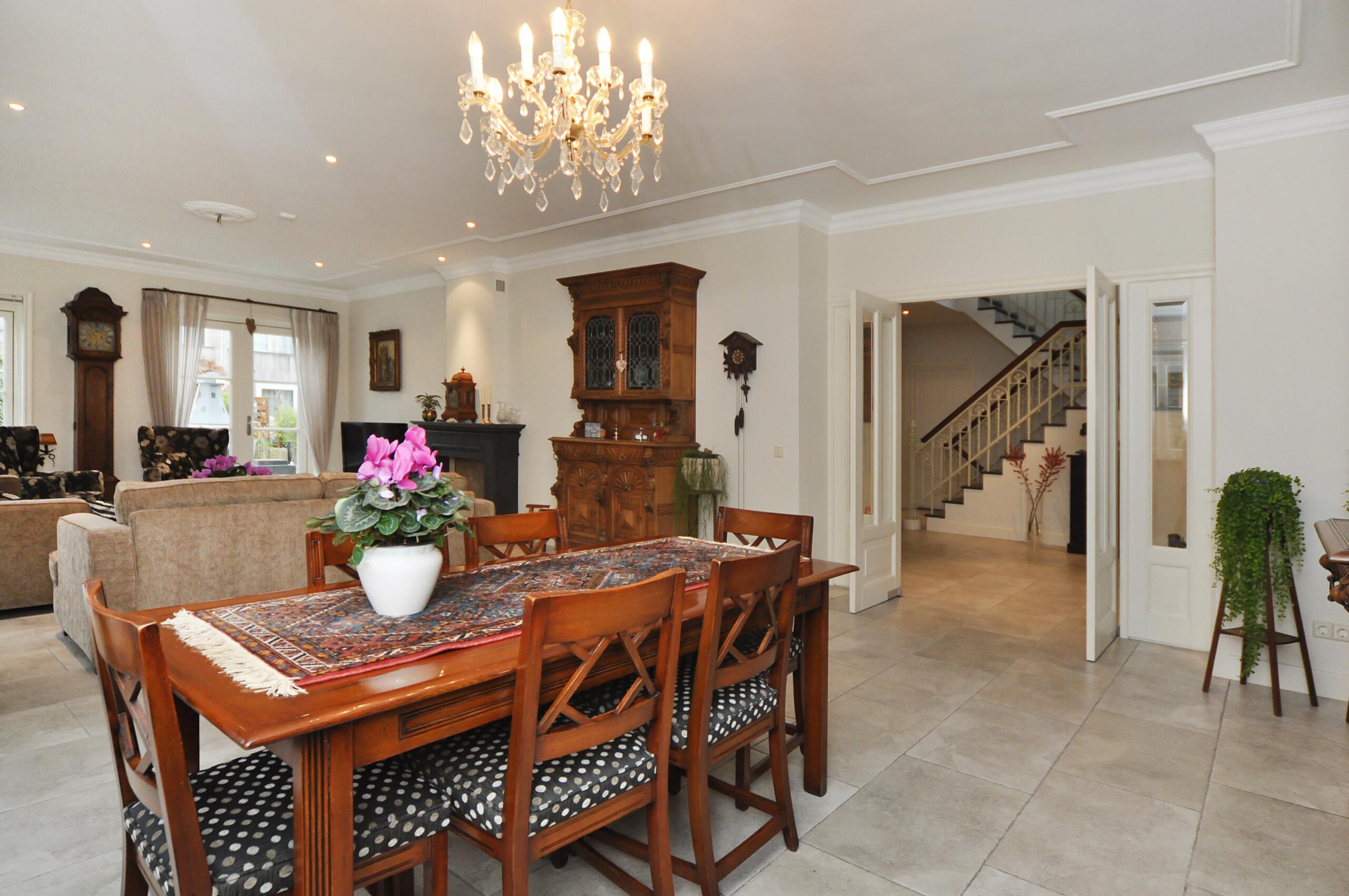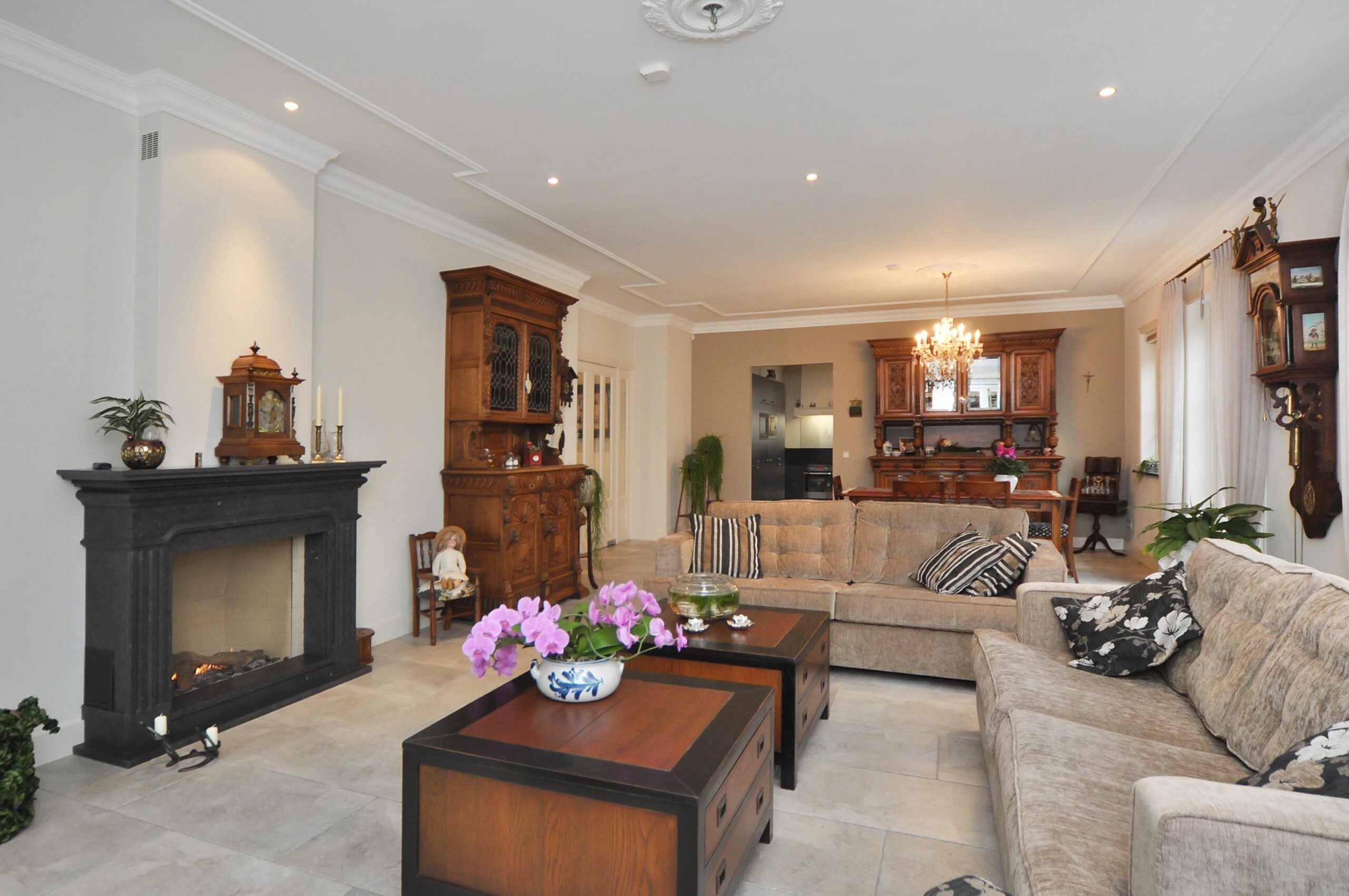 De elegante entree verwelkomt u met een ruime hal voorzien van garderobekast, een smaakvol afgewerkte toiletruimte en een imposante trap. We openen de dubbele deuren naar de riante, lichte woonkamer, waar het daglicht royaal binnenvalt door de vele raampartijen. De living biedt met zijn afmetingen van 10,29 bij 5,00 meter veel indelingsmogelijkheden. Zodra de avond valt, zorgt de gashaard voor een extra vleugje warmte en aangename ambiance. Bovendien vloeien binnen en buiten hier mooi in elkaar over, met het terras en de tuin als natuurlijk verlengstuk van de woonkamer.