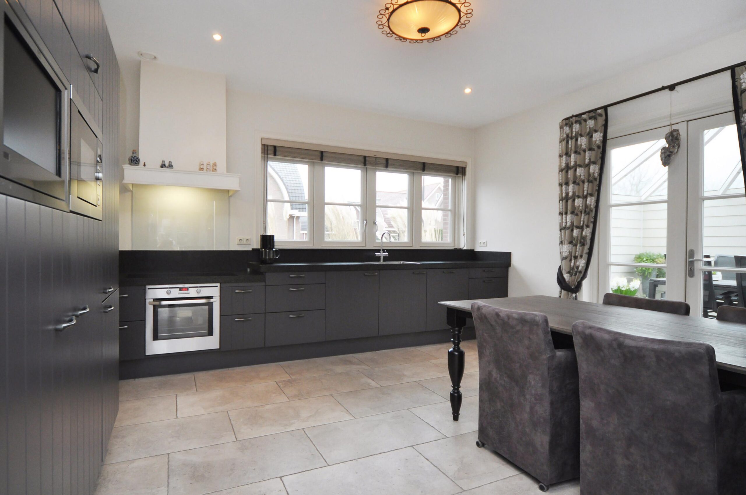 De keuken is praktisch en luxe ingericht, compleet met inductiekookplaat, oven, vaatwasser, magnetron, koel-vriescombinatie en zelfs een ingebouwde televisie. Direct naast de keuken ligt een overdekt terras, ideaal om het hele jaar door buiten te zitten.