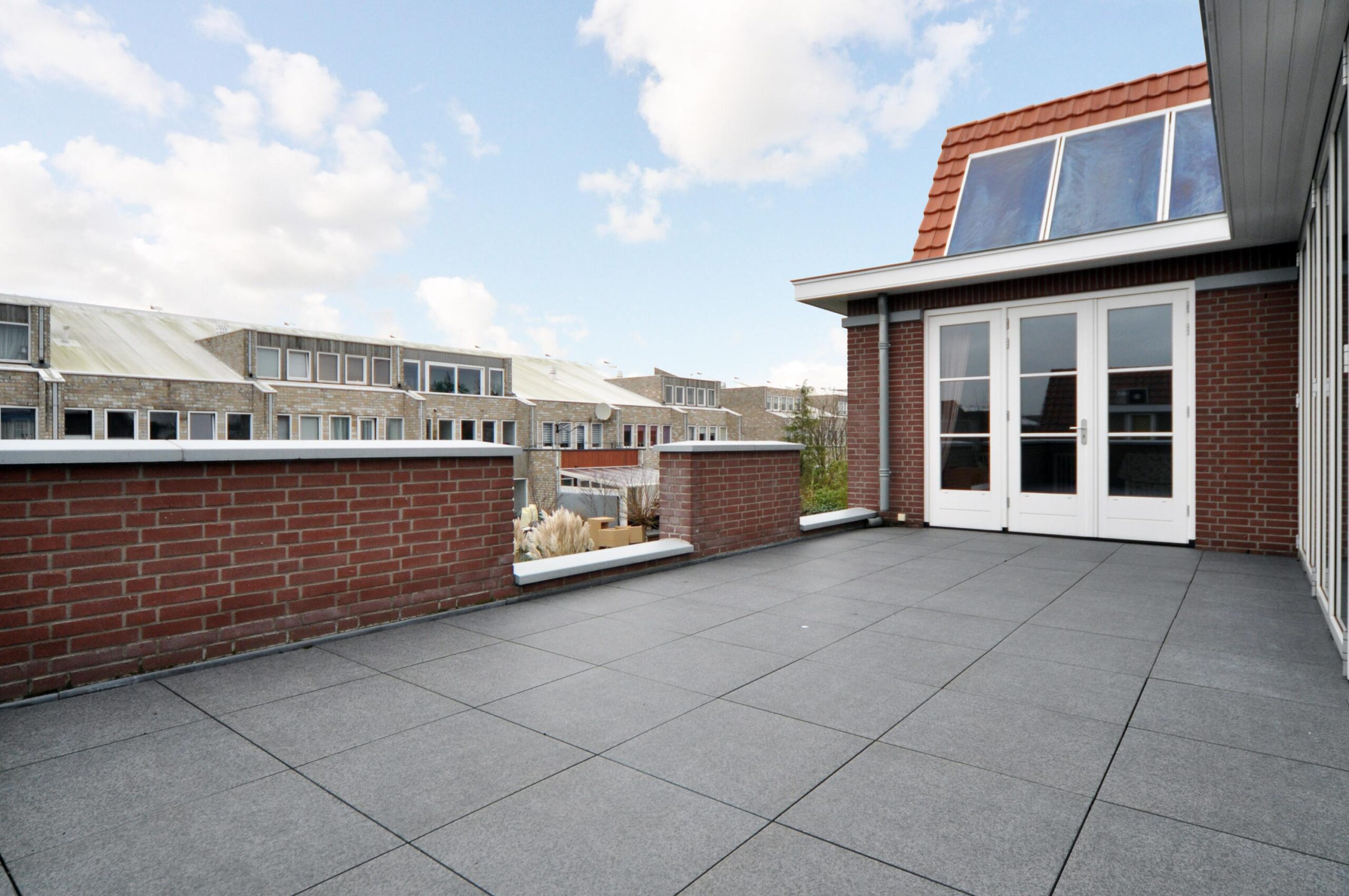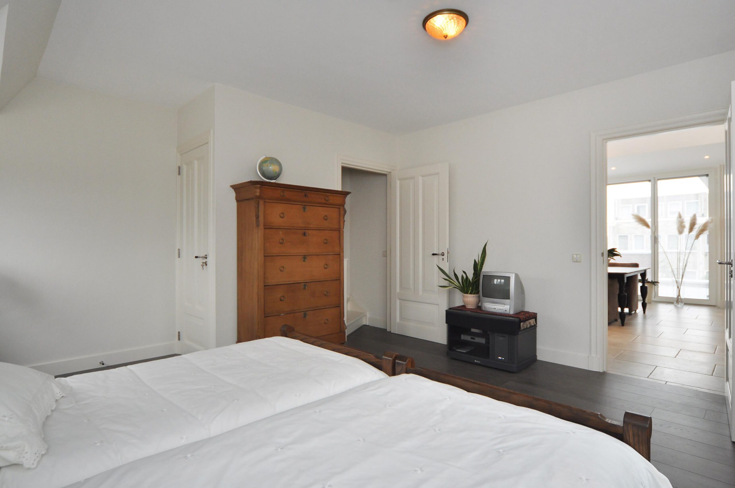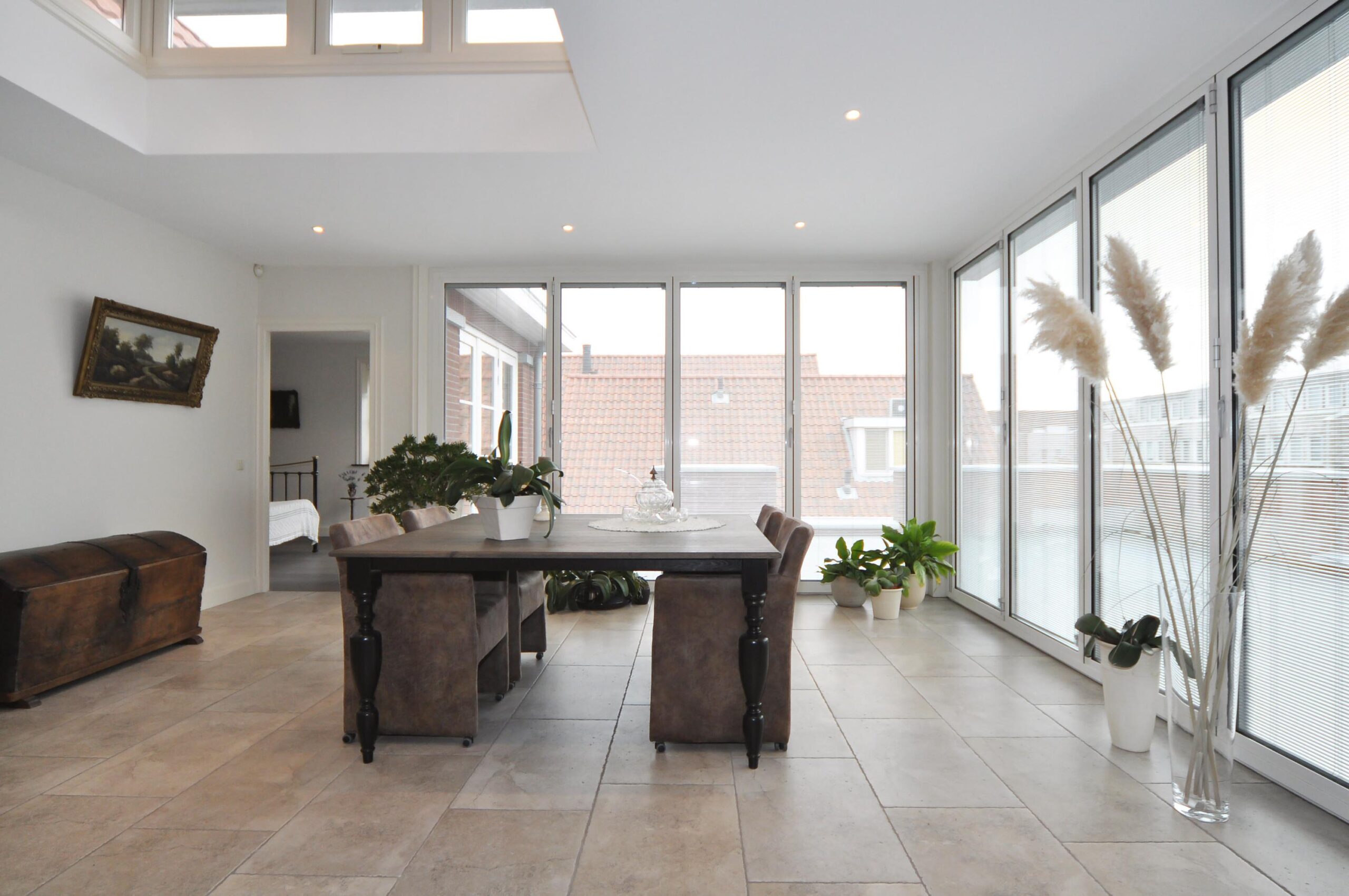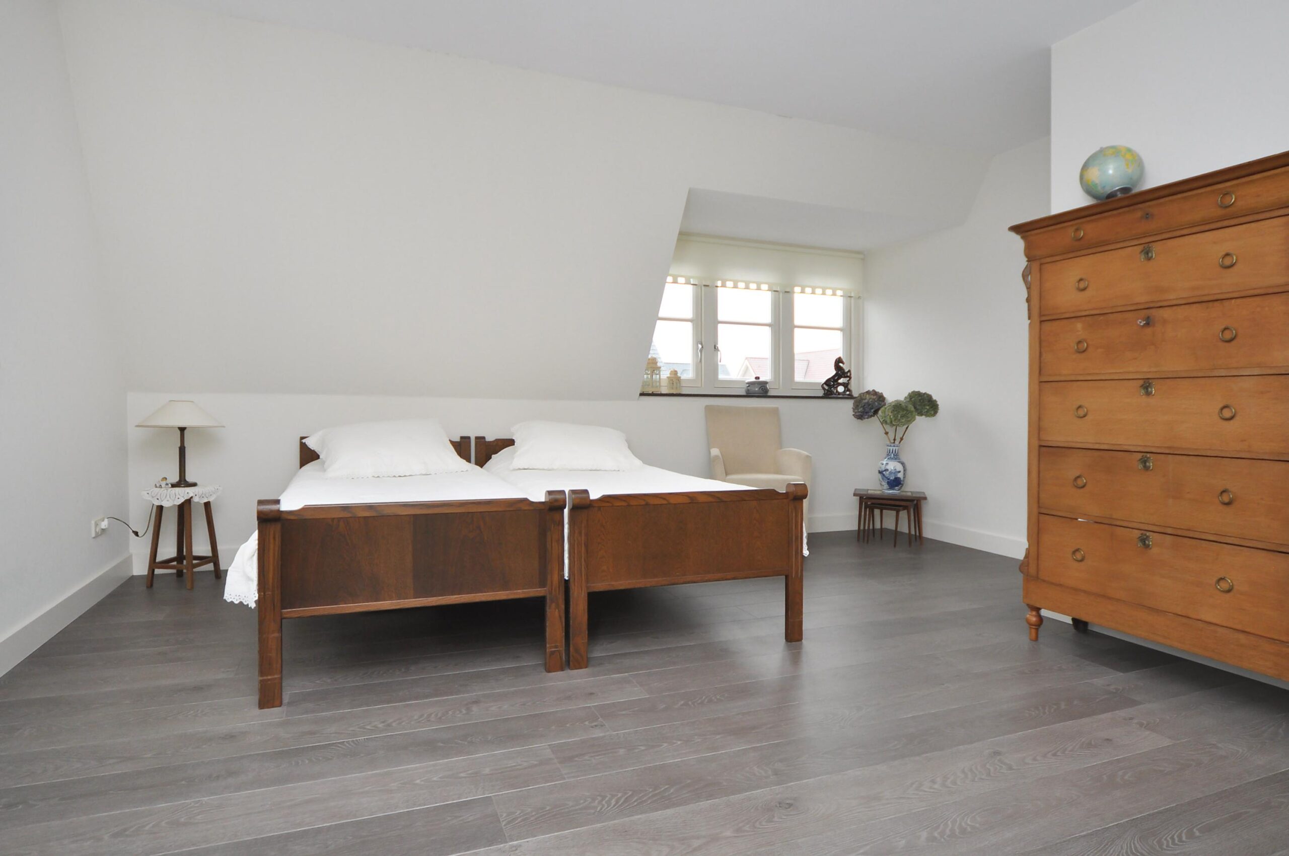 De statige trap leidt naar een overdekte serre met glazen vouwwanden, die toegang bieden tot het dakterras. Vanuit de serre bereikt u de drie grote slaapkamers, waaronder een hoofdslaapkamer aan de voorzijde en twee slaapkamers aan de achterzijde, beide met toegang tot het zonnige terras op het zuidwesten.