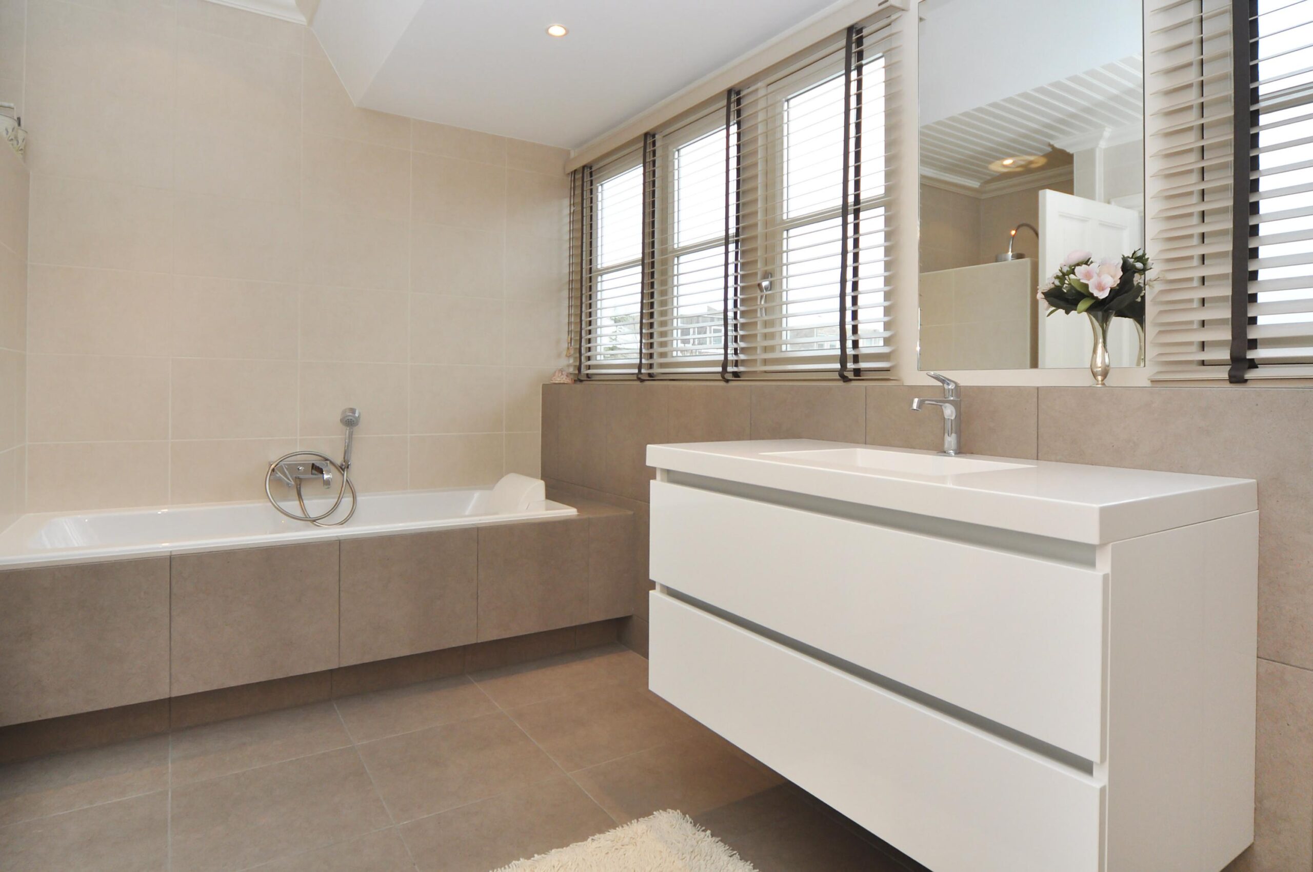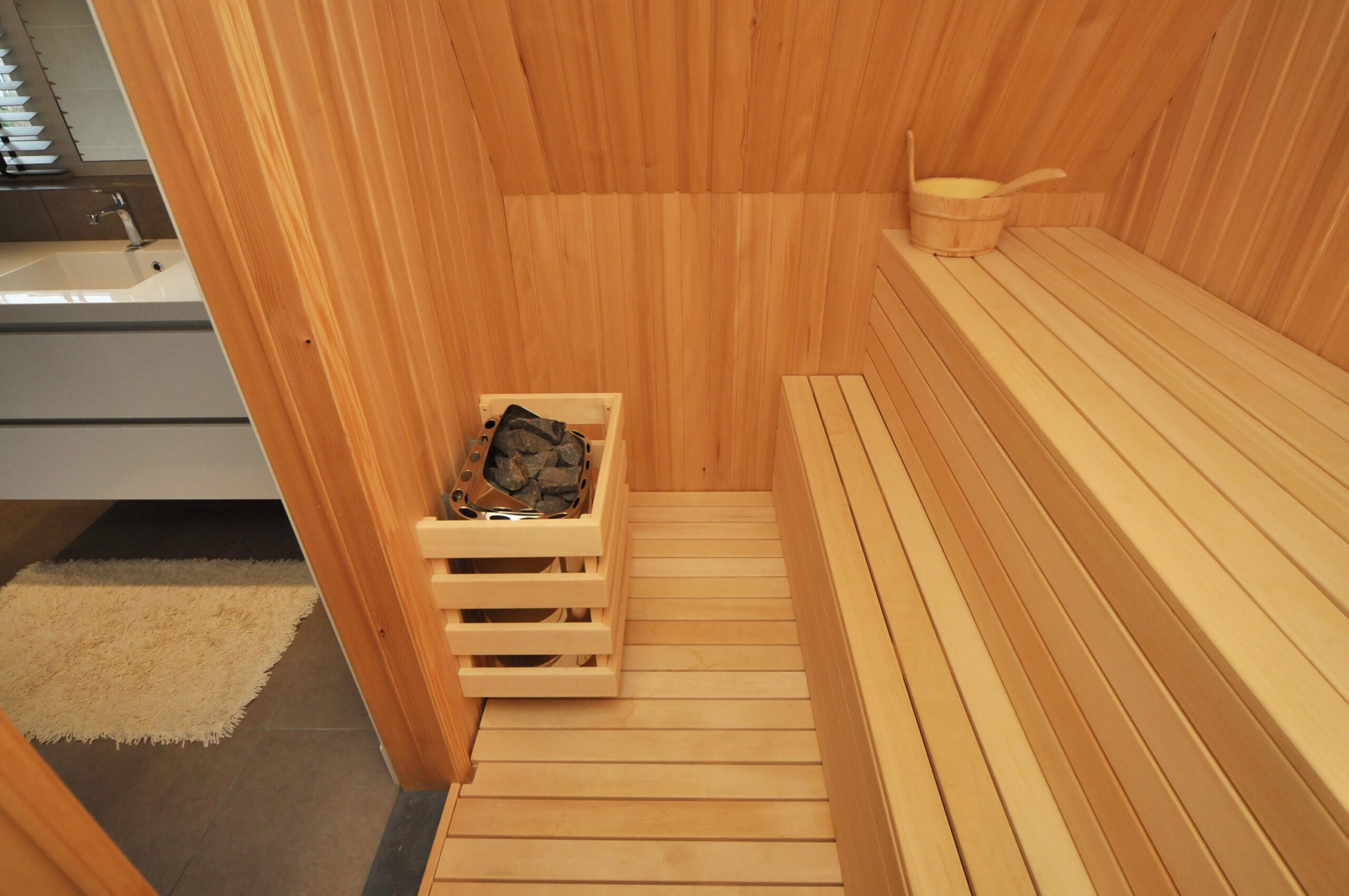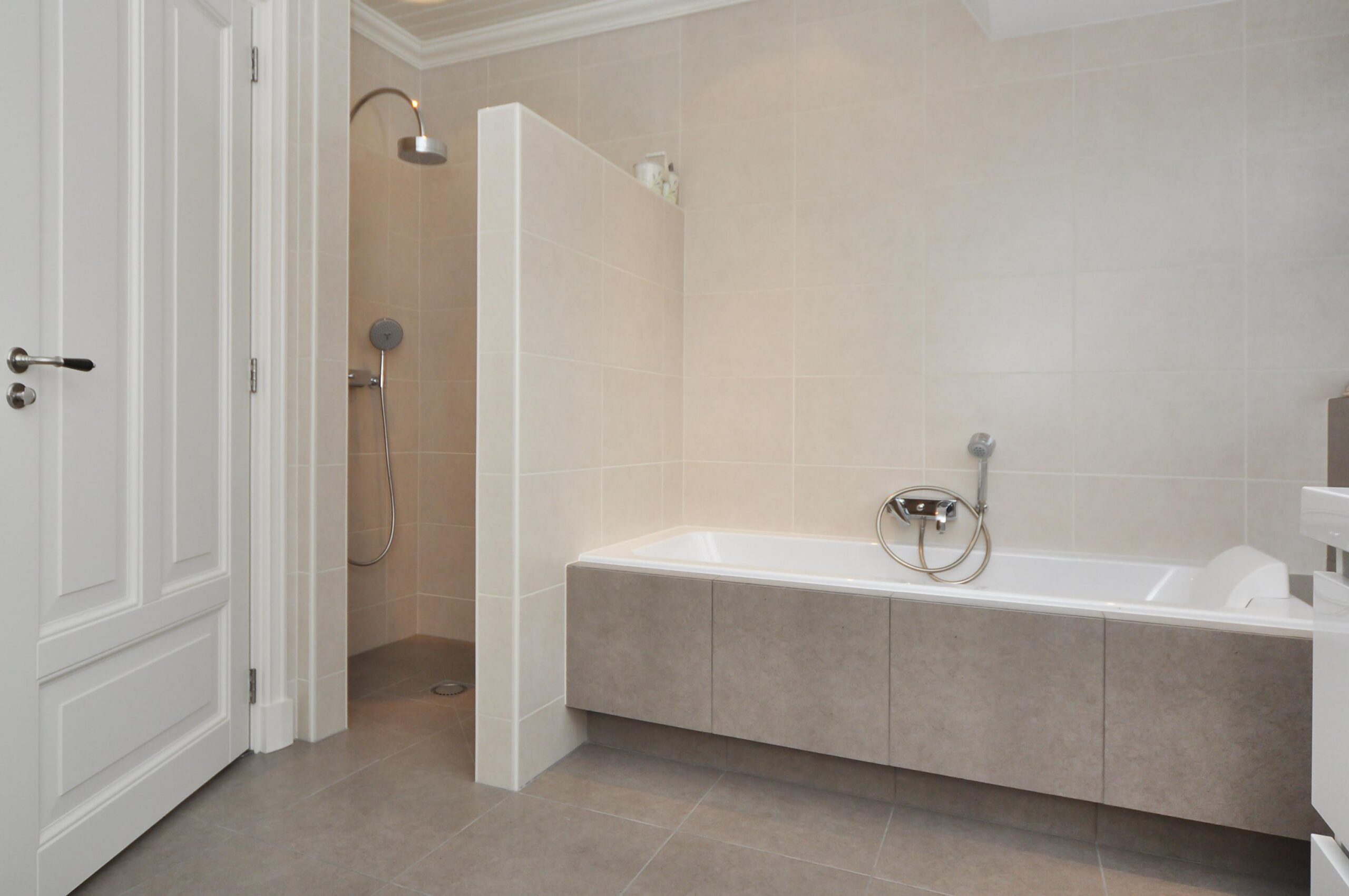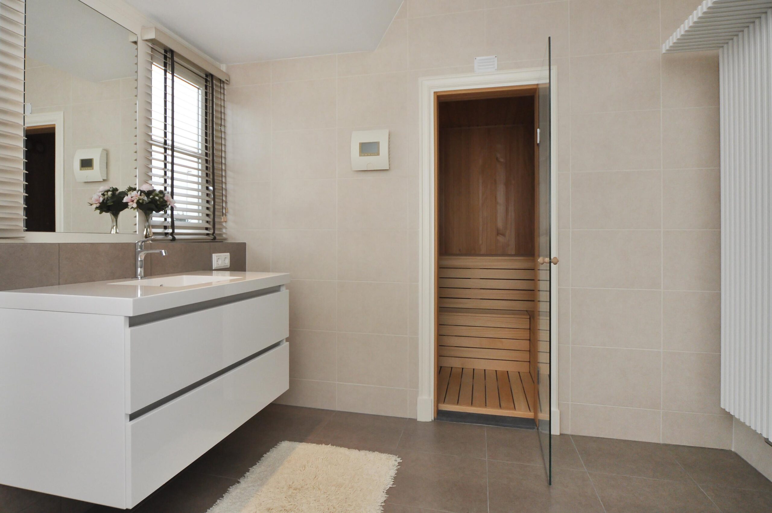 De tweede badkamer op deze verdieping is voorzien van een ligbad, inloopdouche, wastafelmeubel en luxe sauna – ideaal voor ontspanning na een drukke dag. Een separate toiletruimte met fontein maakt het geheel compleet.