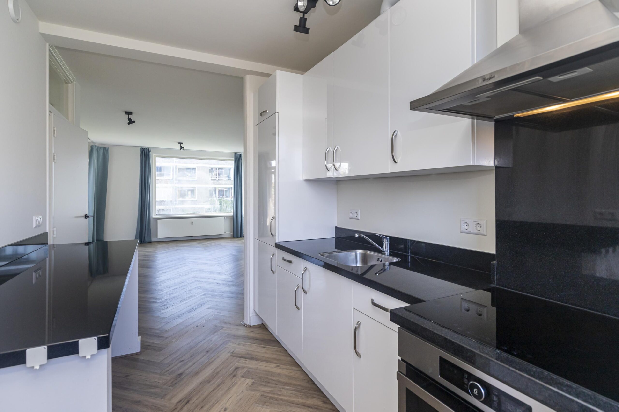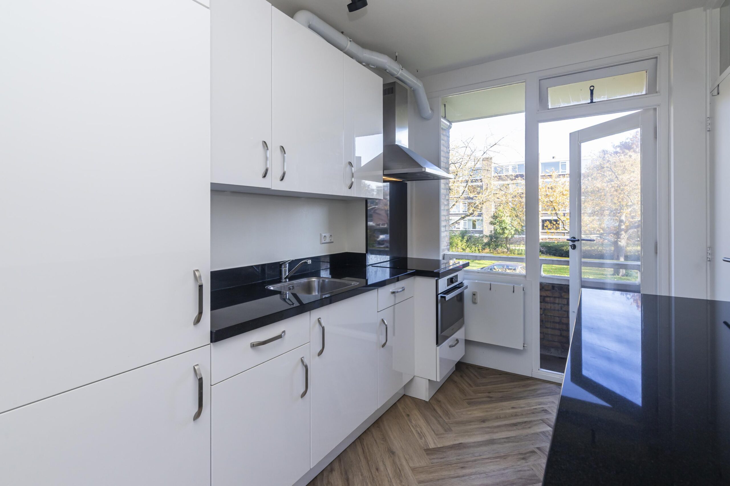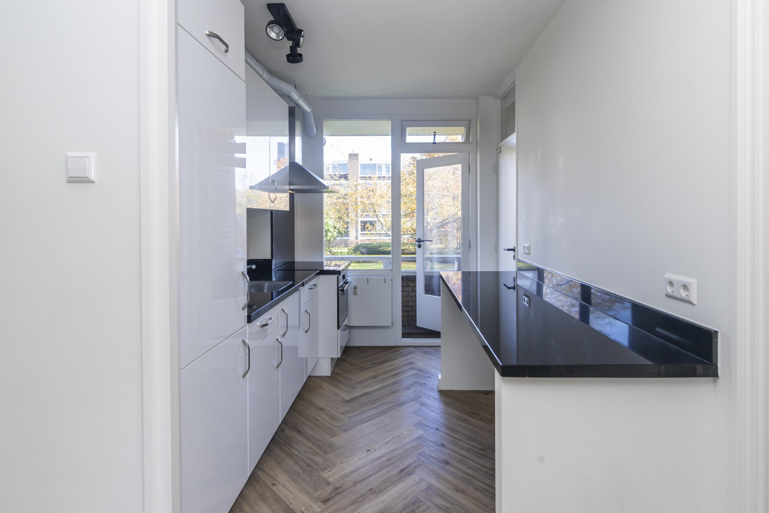 De keuken is uitgevoerd met inbouwapparatuur zoals een koelkast, vriezer, combi-oven, inductiekookplaat, afzuigkap en geiser en heeft toegang tot een klein balkon gelegen op het oosten. Het aanrechtblad geeft een hoogwaardige uitstraling. Ook is hier ruimte voor een wasmachine en droger.