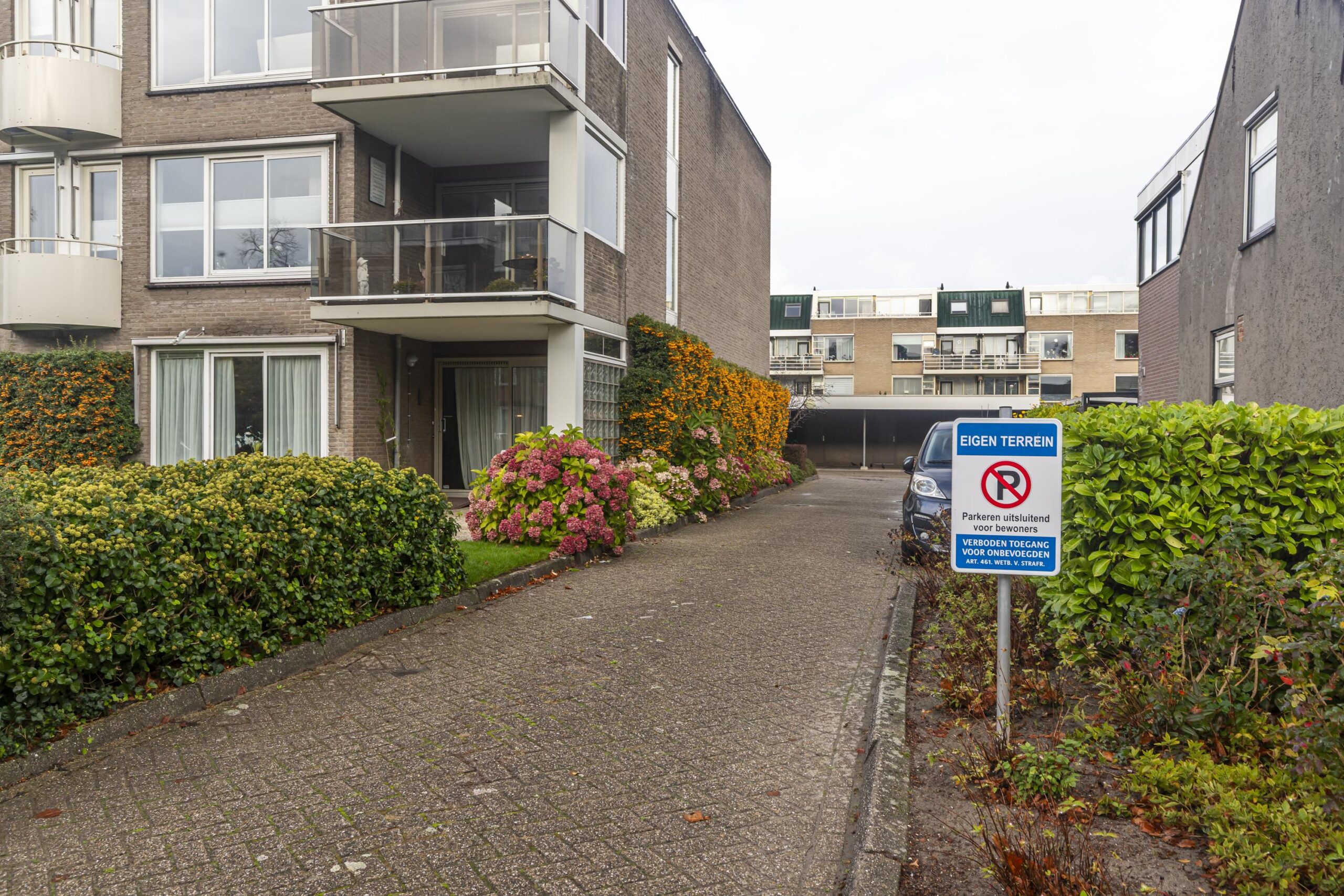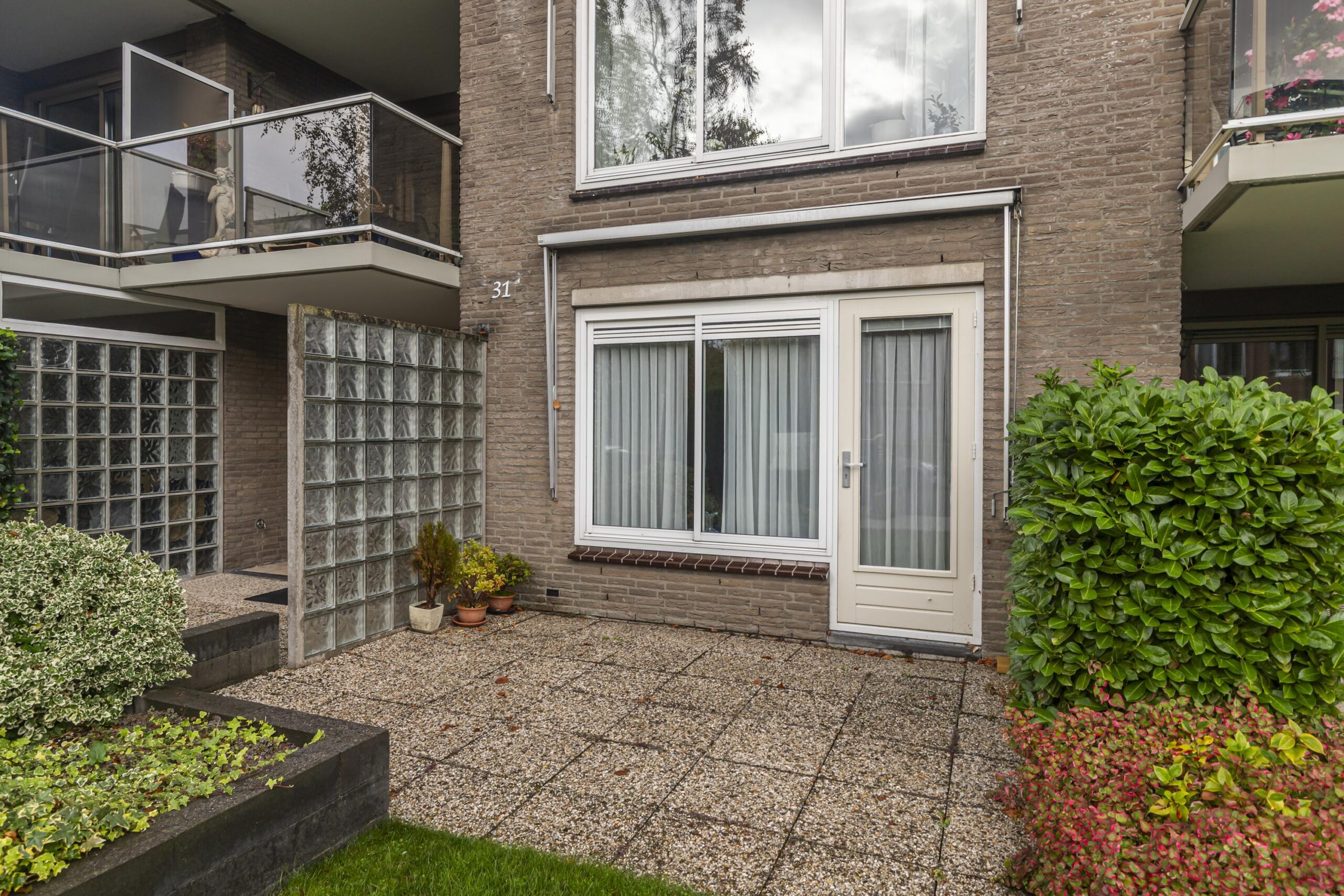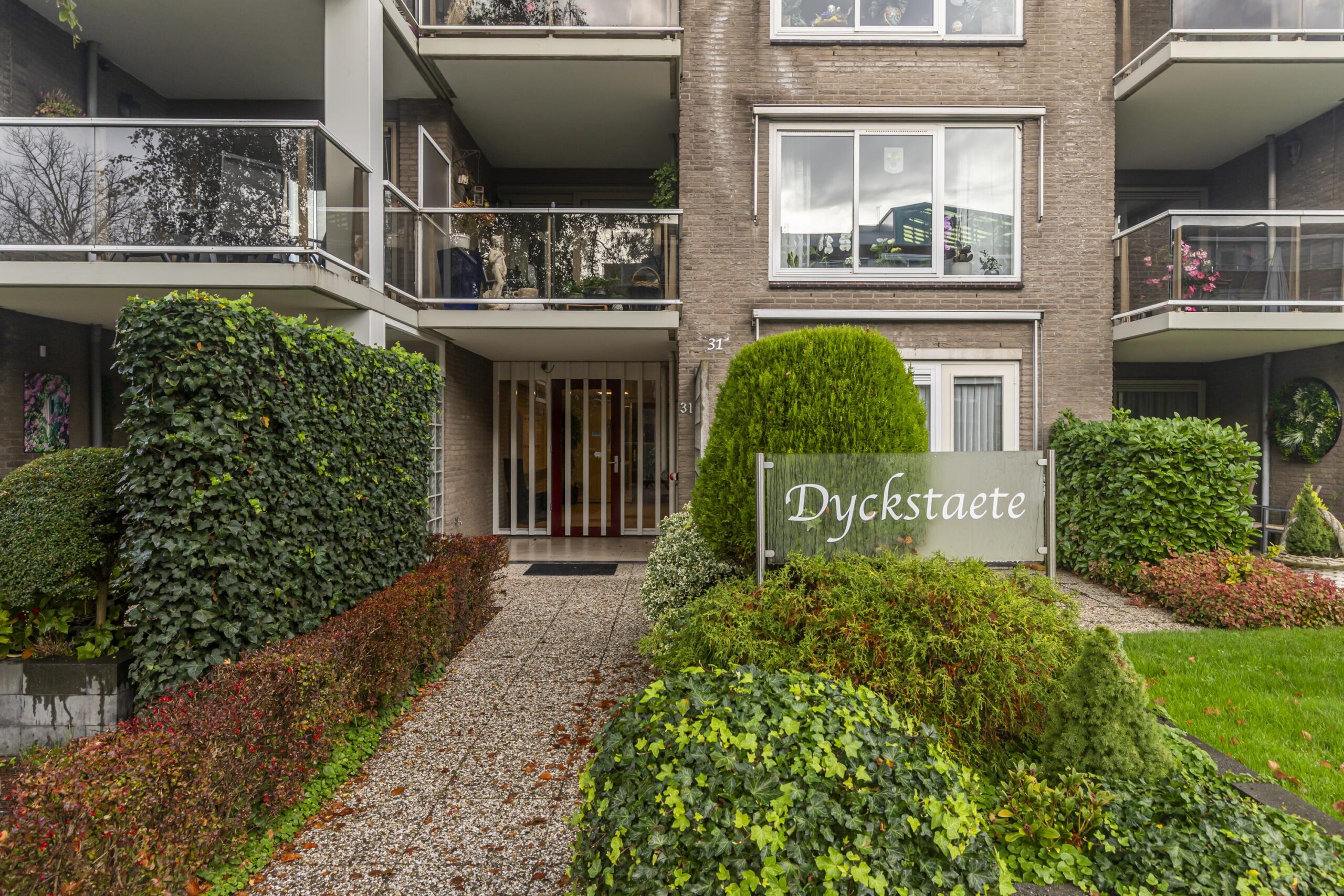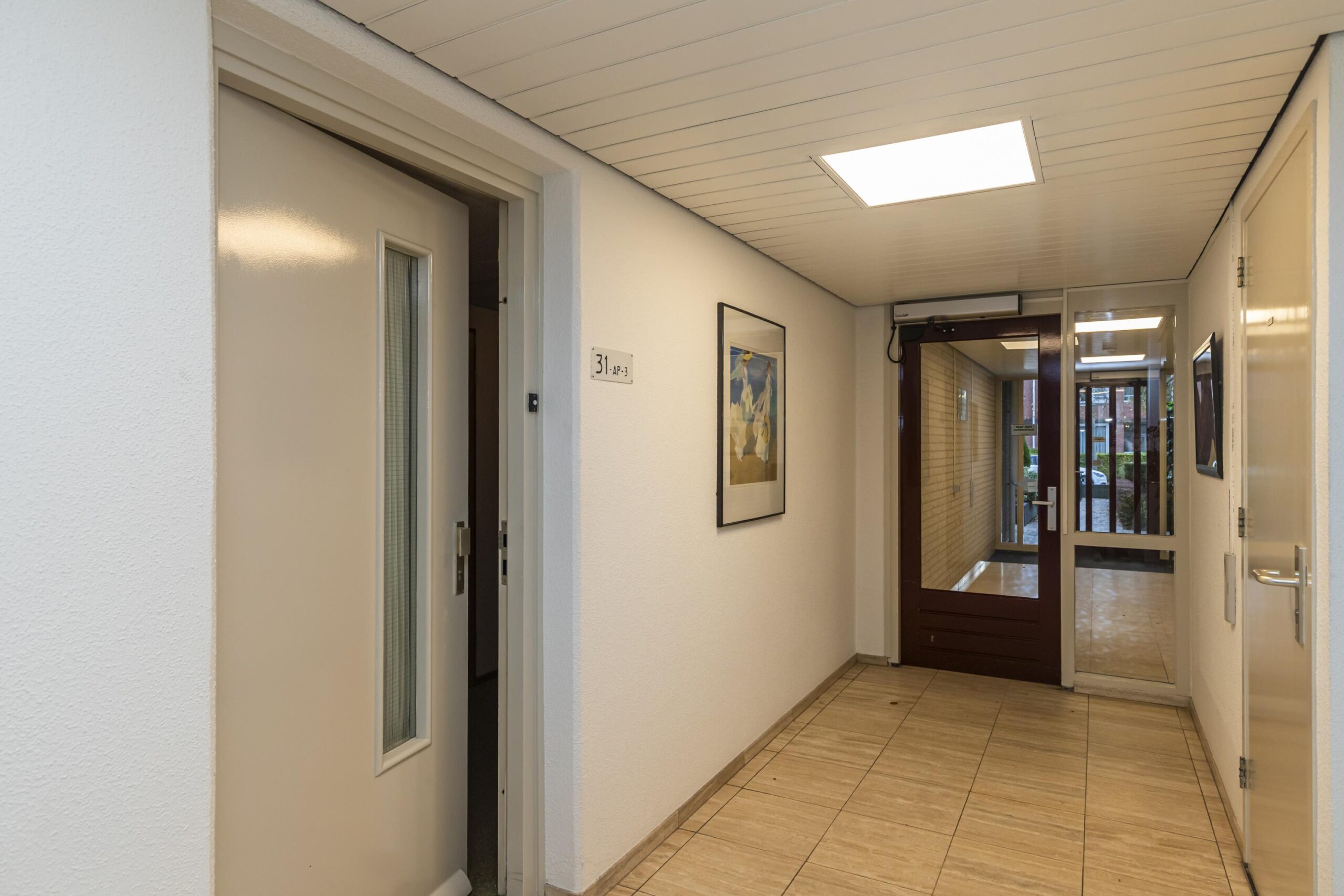 Het appartementencomplex beschikt over een verzorgde, afgesloten entree met brievenbussen en een bellentableau. Dankzij de lift en elektrische deuren in de algemene ruimtes is het gebouw uitstekend toegankelijk. Vanuit de centrale hal bereik je eenvoudig het appartement op de begane grond.