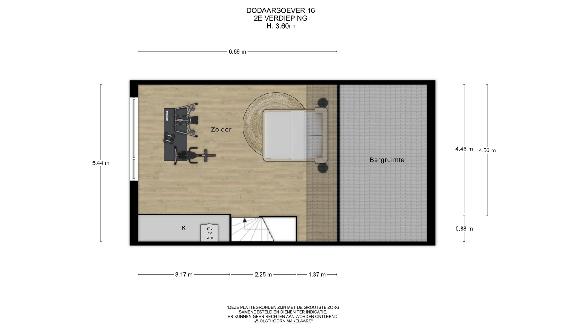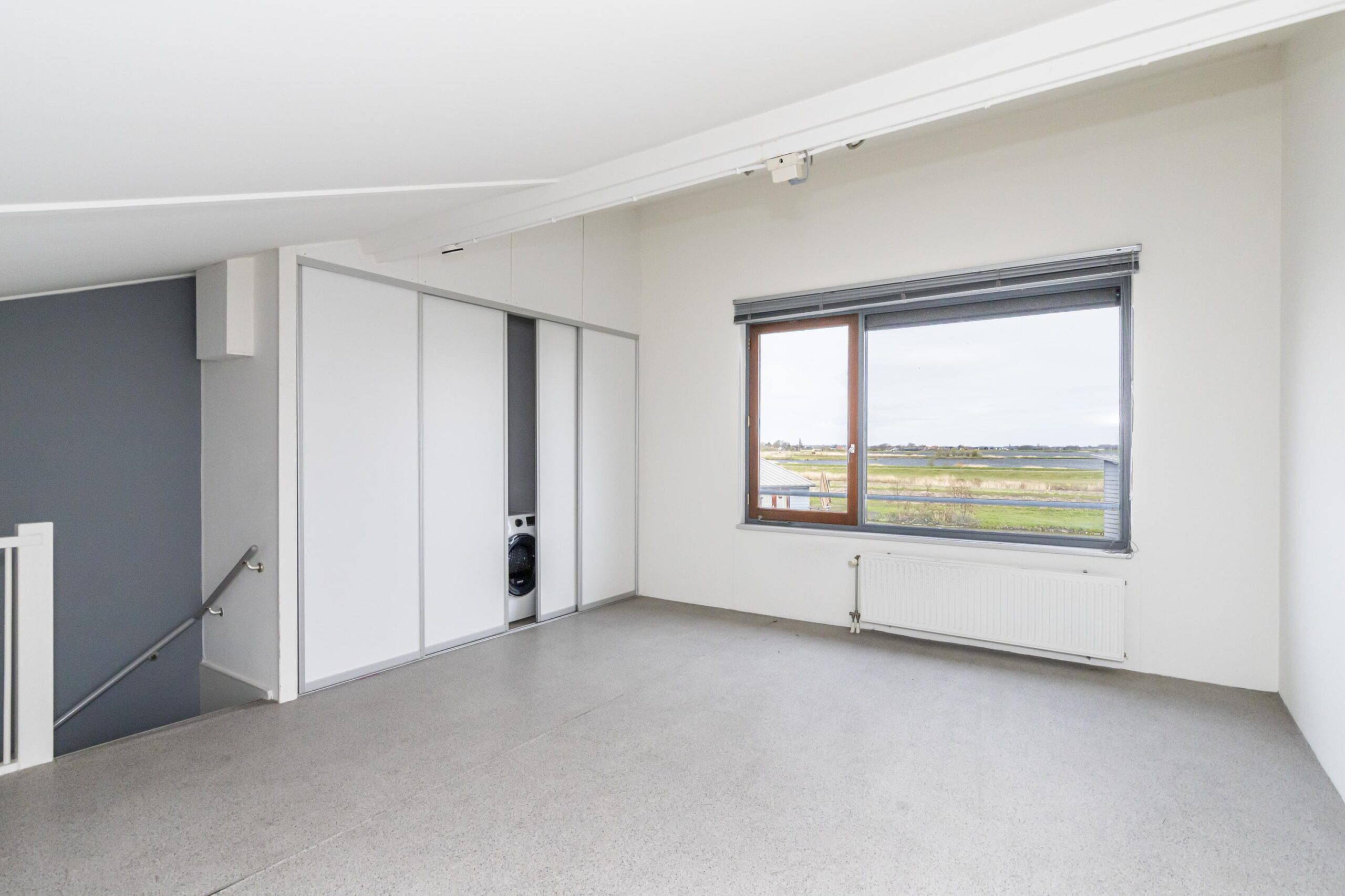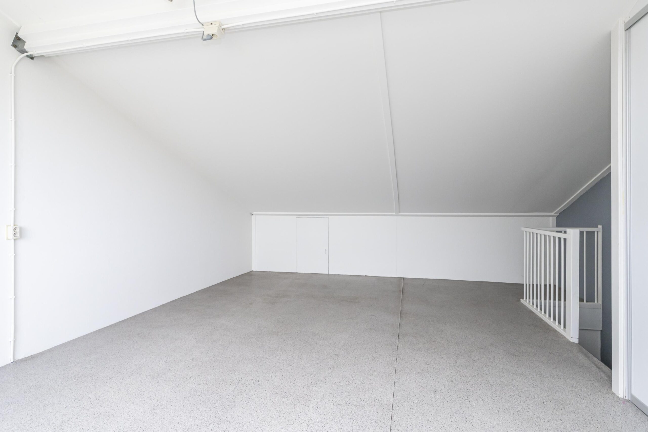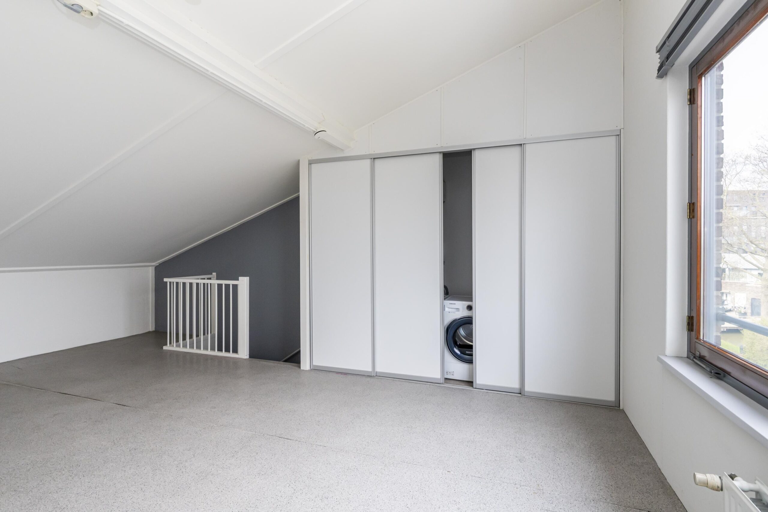 De zolderverdieping is nog vrij in te delen en geeft veel mogelijkheden. Denk bijvoorbeeld aan één grote slaapkamer, een werkruimte of twee extra slaapkamers. Aan beide zijden zijn knieschotten geplaatst, ideaal voor extra bergruimte. Daarnaast is er een vaste kast met de aansluiting voor de wasmachine, de cv-ketel, mechanische ventilatie en de omvormer voor de zonnepanelen.