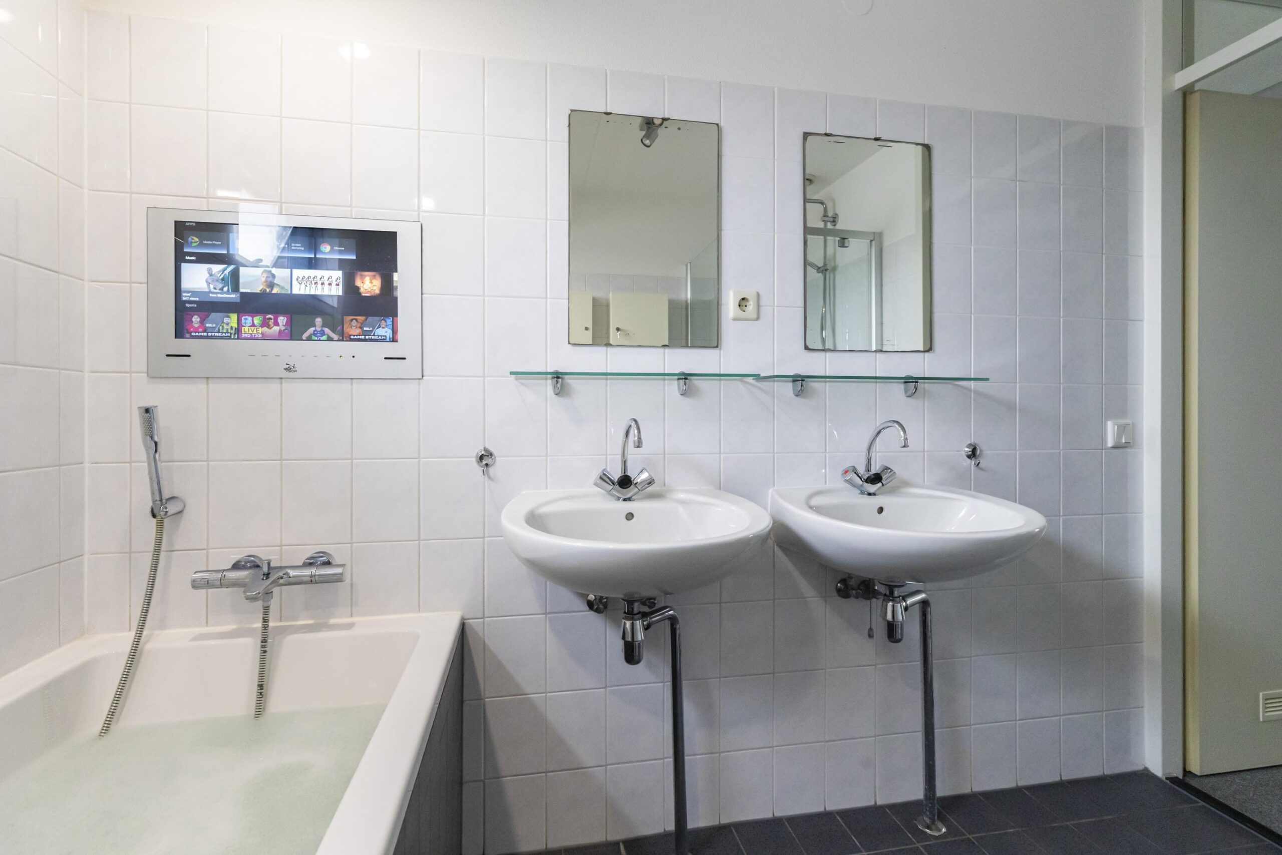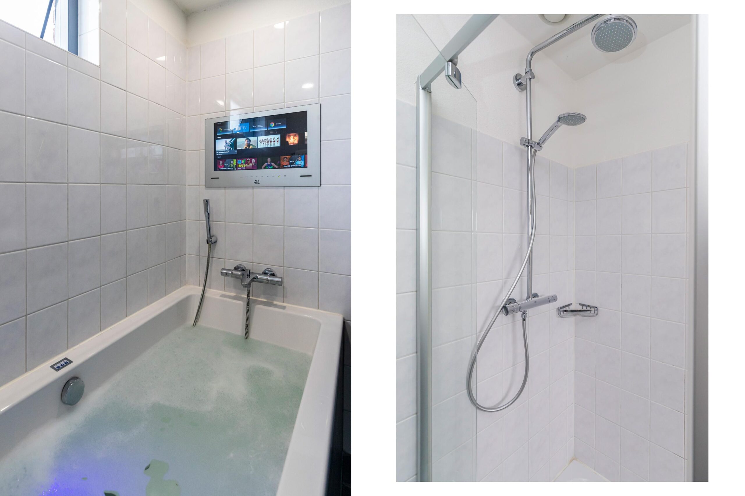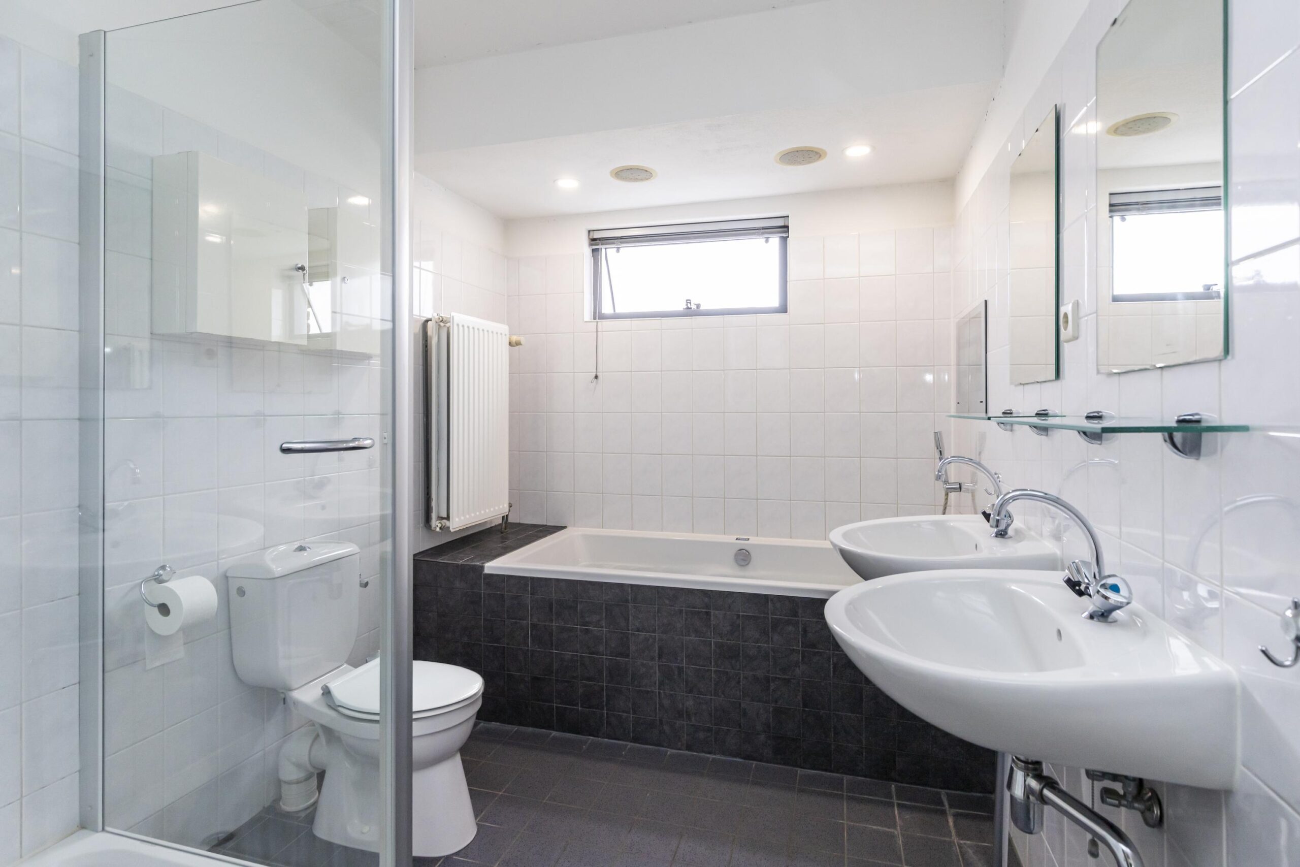 - Badkamervoorzieningen Toilet, douche, dubbele wastafel, whirlpool