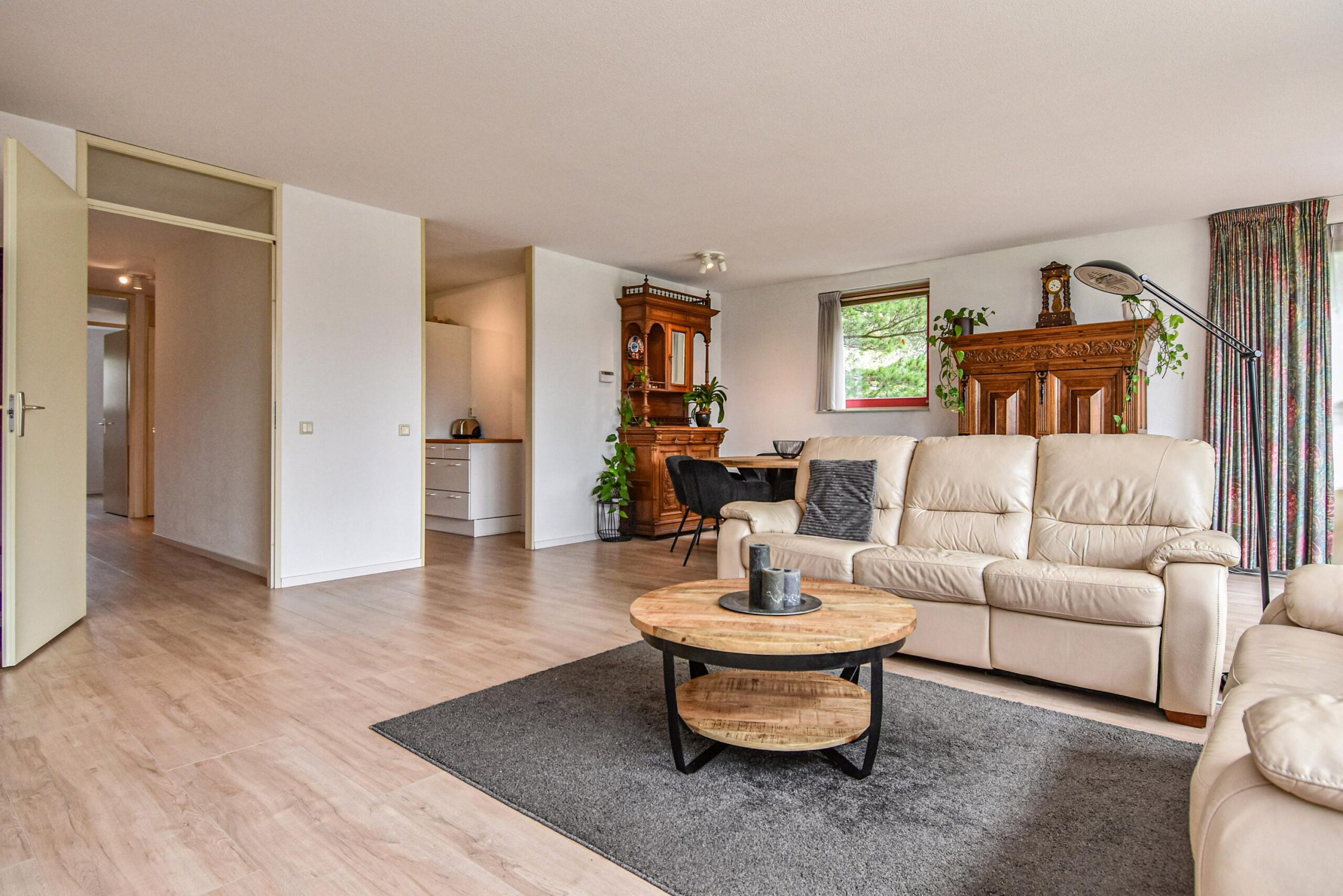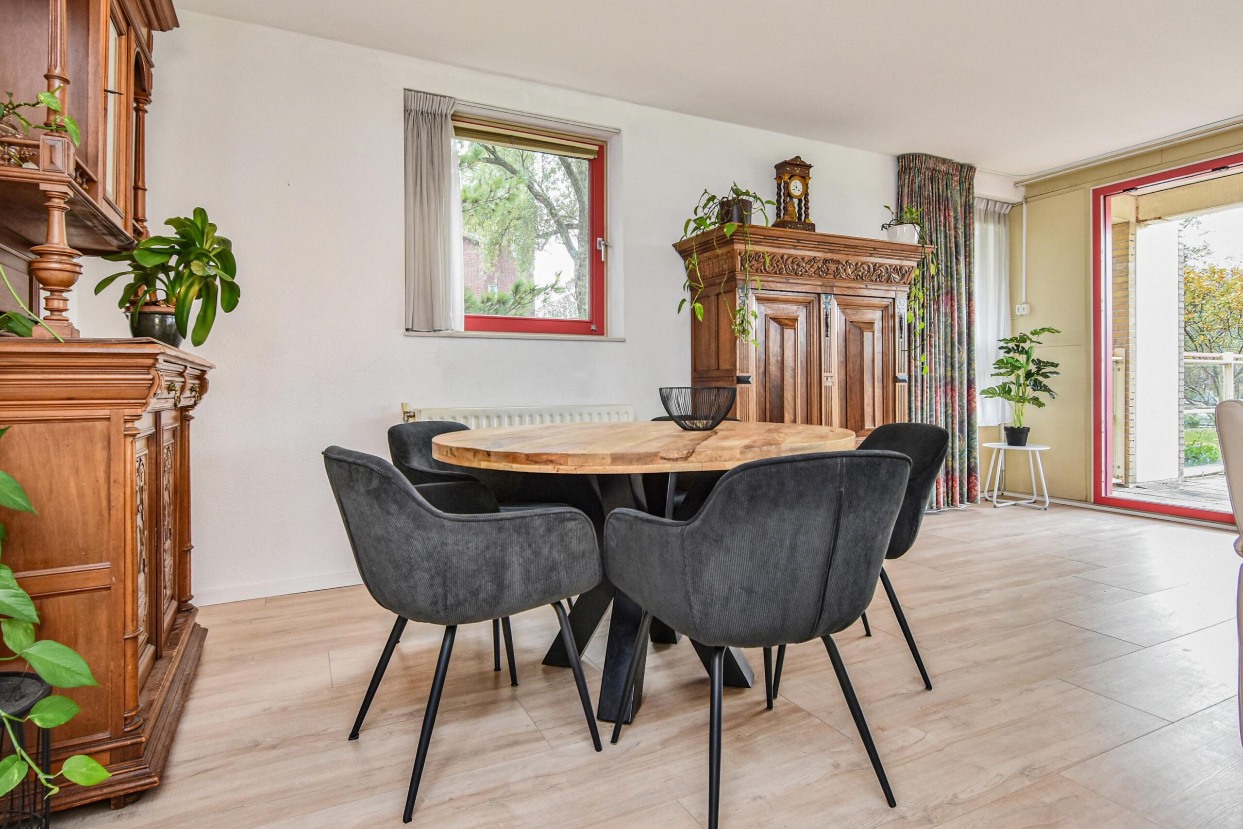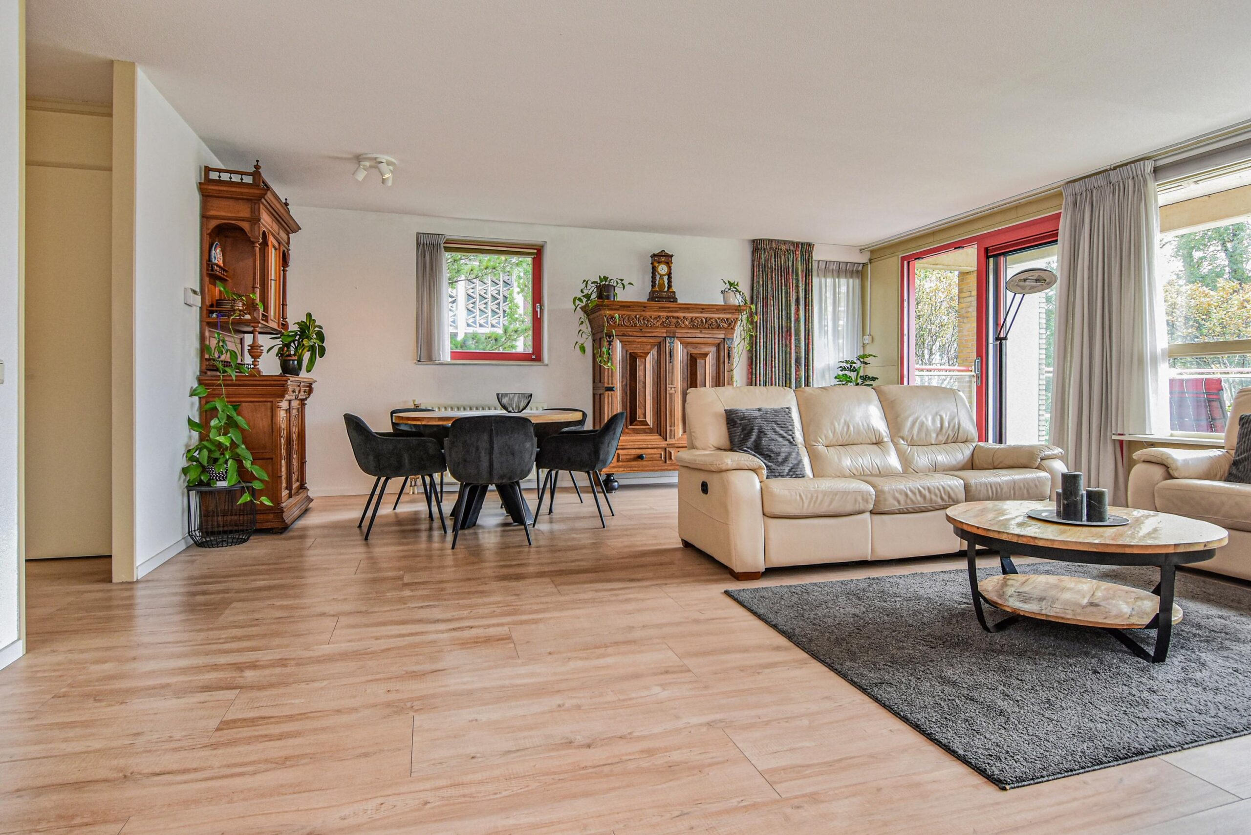 De royale woon- en eetkamer is dankzij de grote raampartijen bijzonder licht en ruim van opzet. Via de schuifpui bereikt u het royale terras met een gedeeltelijke overkapping en elektrische zonneschermen. Hier geniet u van een fraai groen uitzicht en een bijzondere blik op de voetbalwedstrijden die in het weekend op het nabijgelegen sportveld plaatsvinden.