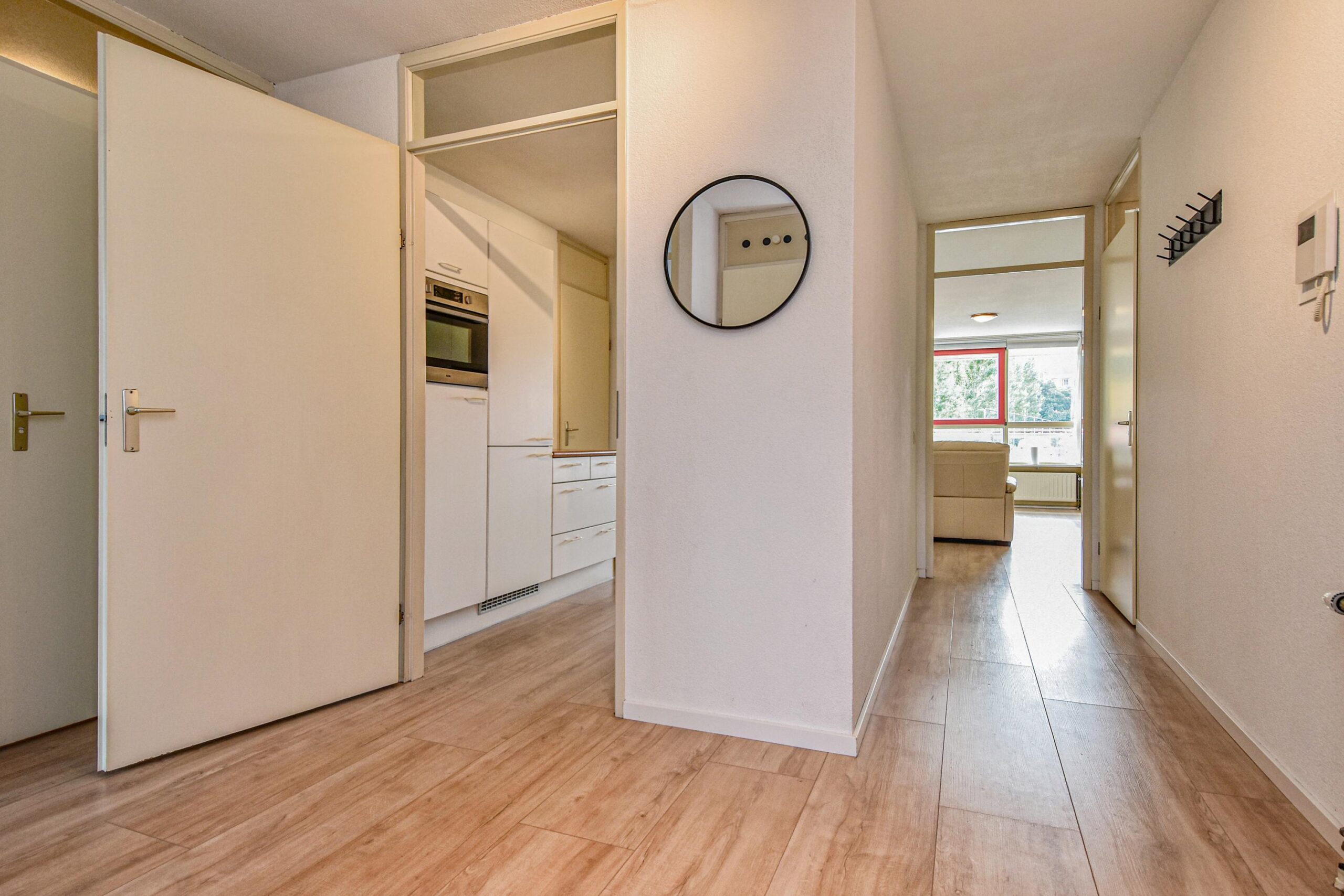 Via de hal van het appartementencomplex met bellentableau met videofoon komt u bij de voordeur van dit fraaie appartement. Bij binnenkomst treft u een ruime en centrale hal die toegang biedt tot alle kamers.