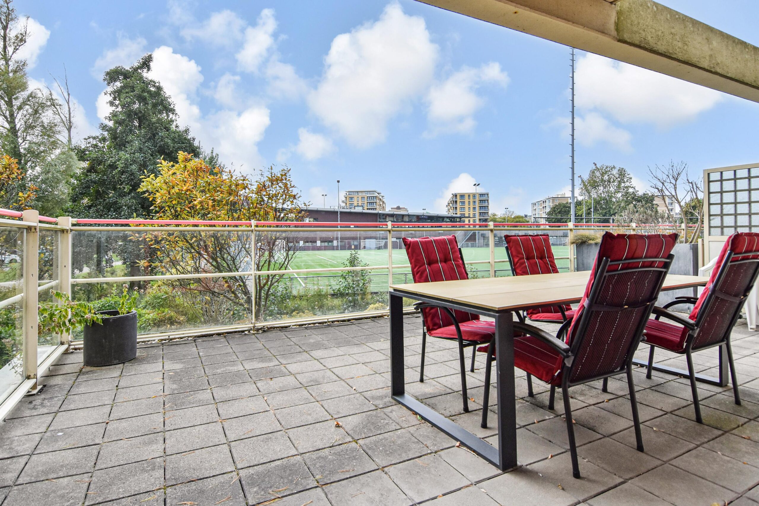 • Riant zonnig terras (incl zonwering) op het zuid/westen met vrij uitzicht over sportterrein