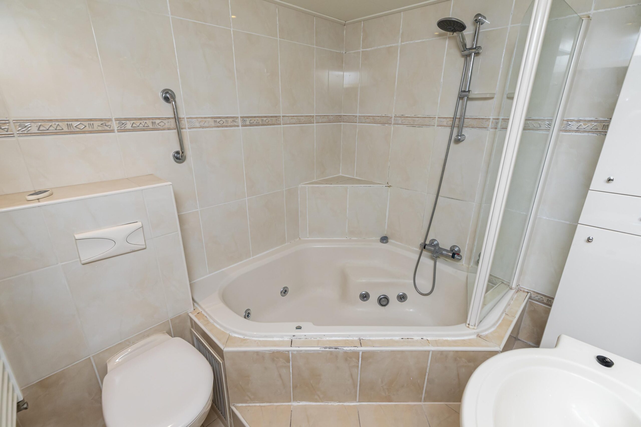 - Badkamervoorzieningen Ligbad, toilet, douche, wastafelmeubel