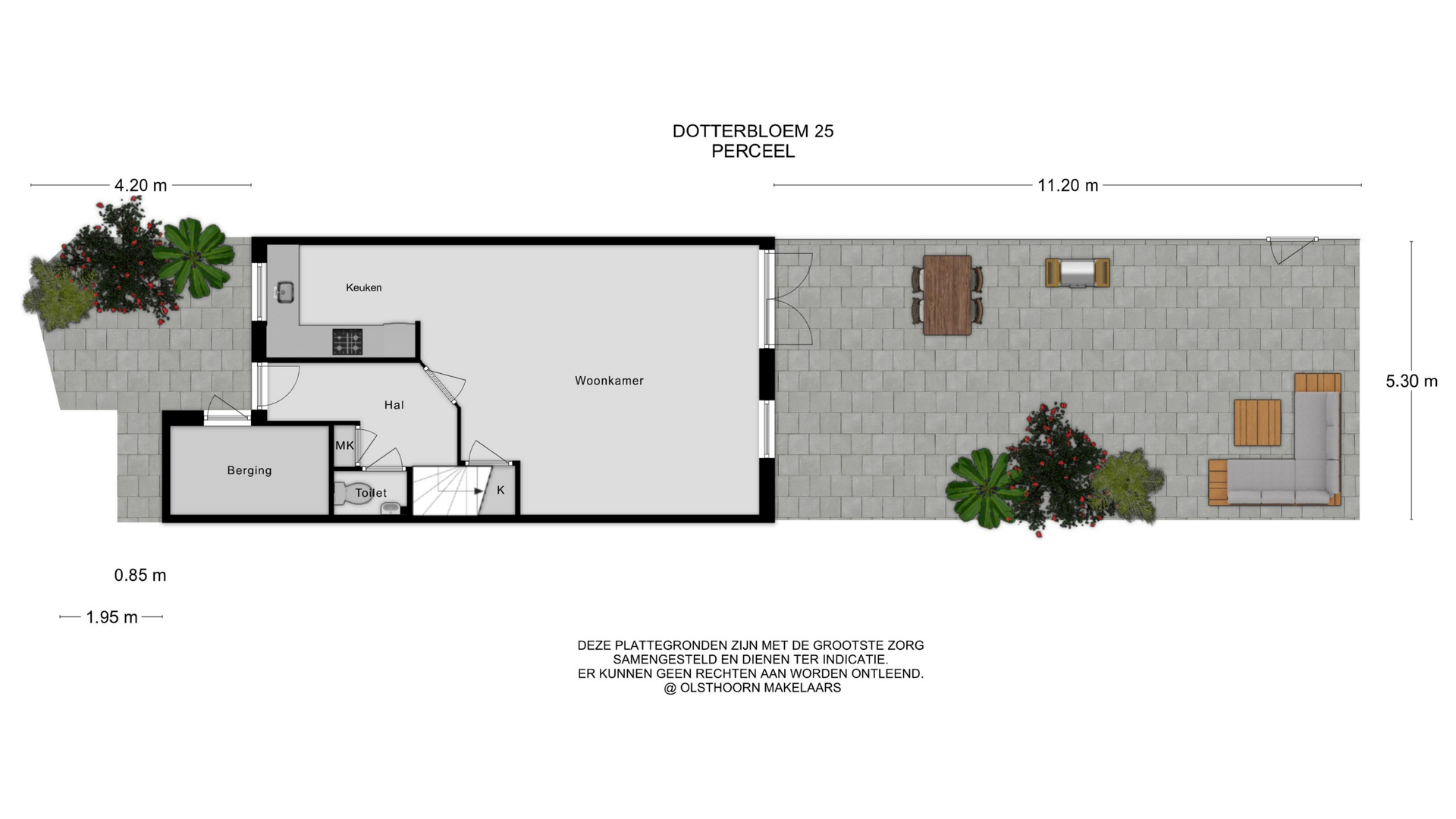 - Oppervlakte hoofdtuin 59 m2