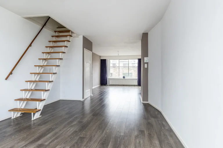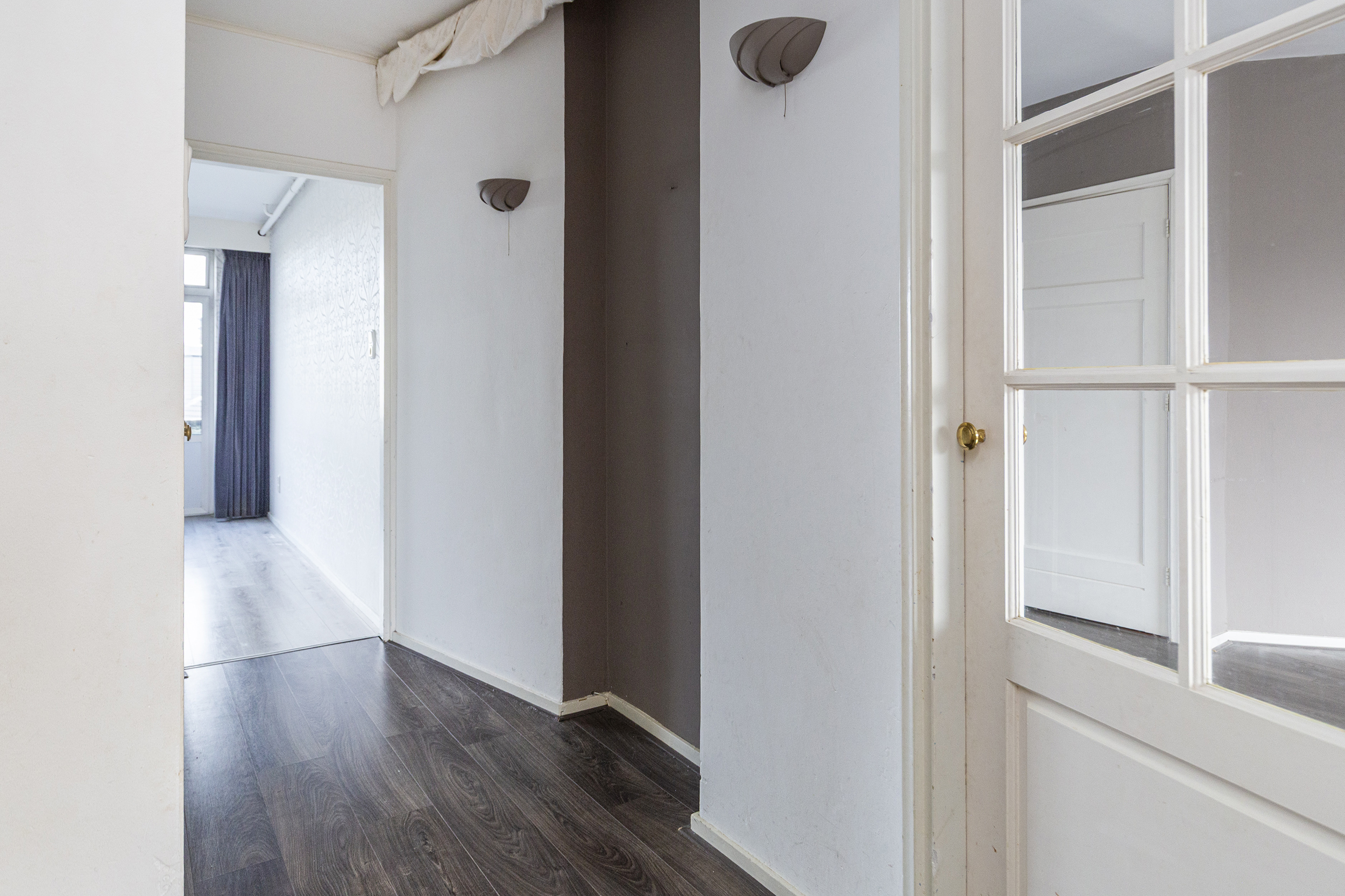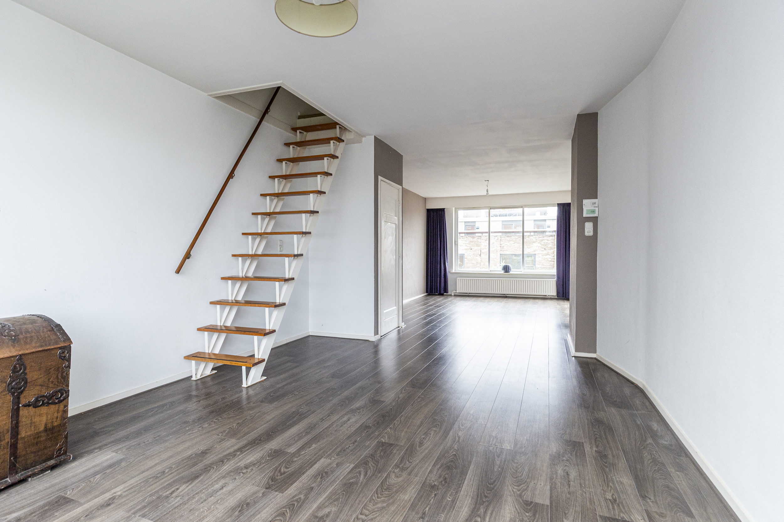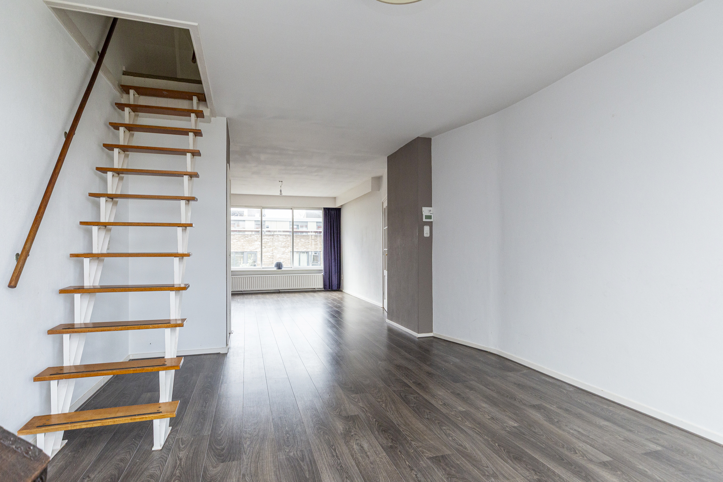 De L-vormige hal biedt toegang tot de ruime woonkamer, met een indrukwekkende diepte van ruim 11 meter. Vanuit de voorkamer heeft u een weids uitzicht over de straat. Vanuit de achterkamer heeft u toegang tot het balkon dat over de volle breedte van de woning loopt. In de woonkamer treft u een vaste kast en een mooie open trap met houden traptreden die u naar de 3e etage leidt. Eén slaapkamer bevindt zich op de woonetage aan de achterzijde van het appartement. Deze is voorzien van een inbouwkast en heeft ook toegang tot het balkon. De badkamer is voorzien van een douche en wastafelmeubel. Aan de voorzijkamer is een nette keuken met koelkast/vriezer, vaatwasser, combi oven/magnetron, afzuigkap, kookplaat en toegang tot het voorbalkon. Vanuit de gang heeft u toegang tot een apart toilet met fontein, een ruime kast en de meterkast.