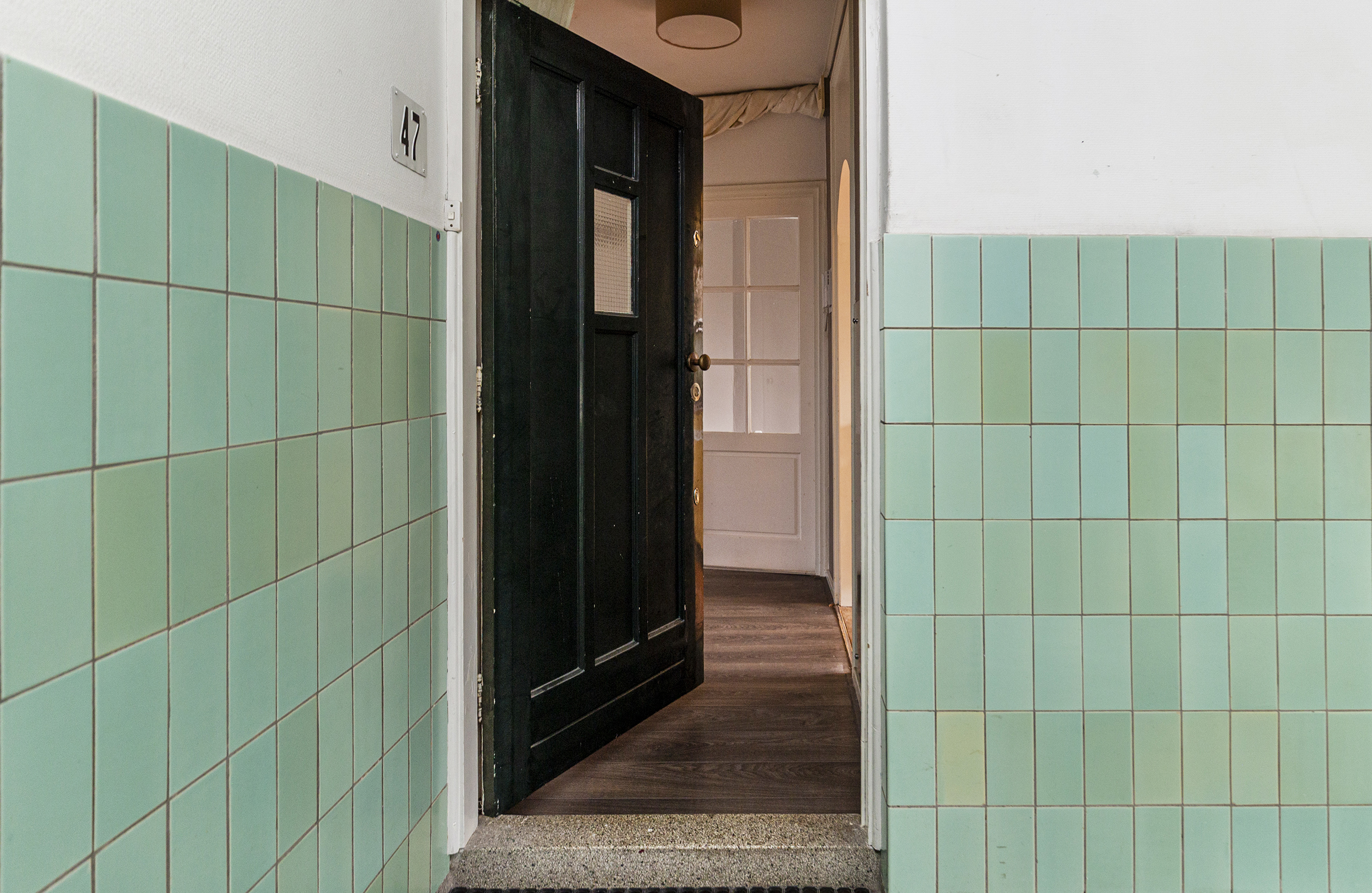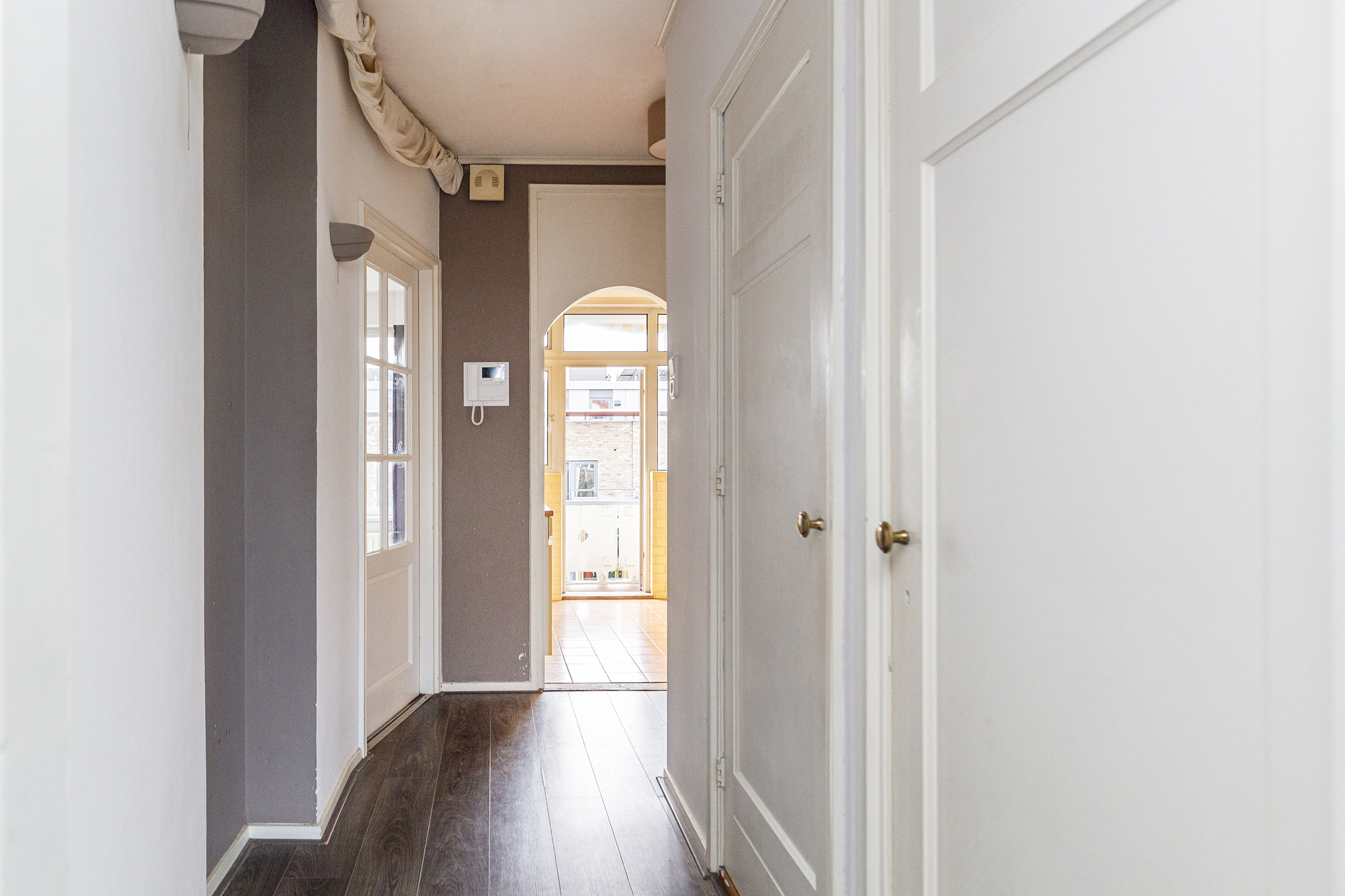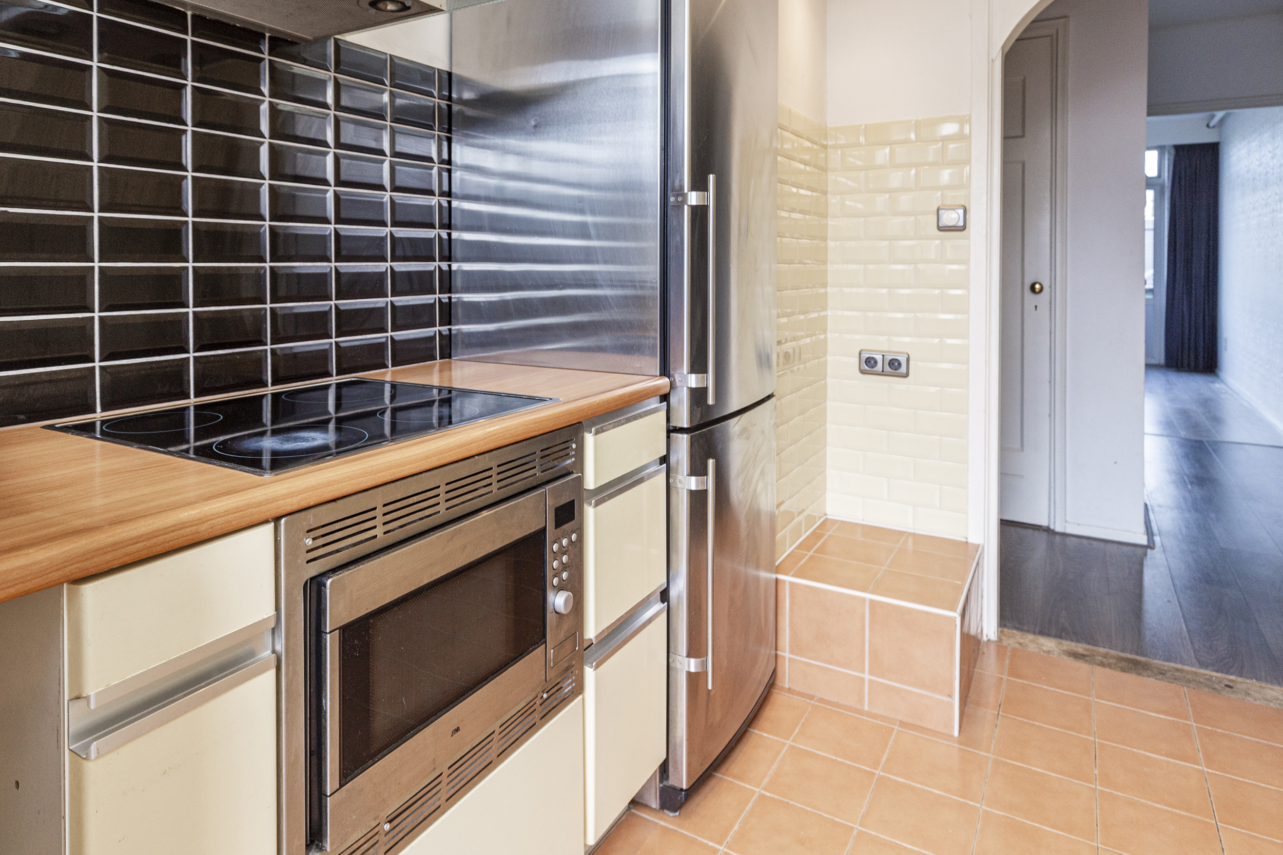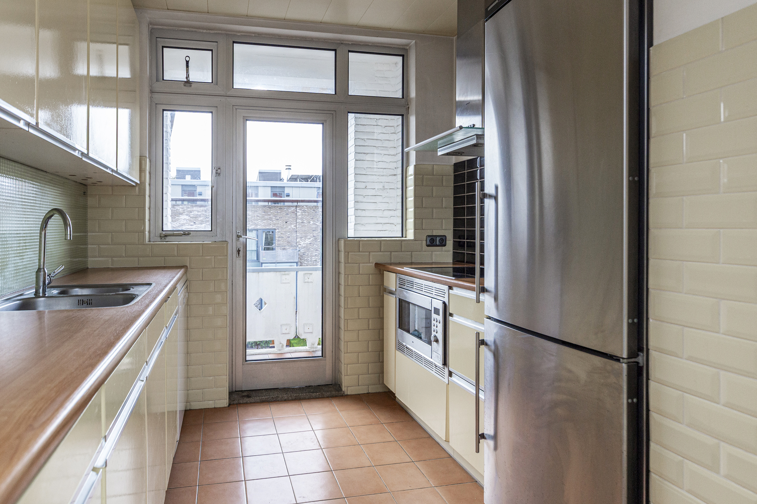 De L-vormige hal biedt toegang tot de ruime woonkamer, met een indrukwekkende diepte van ruim 11 meter. Vanuit de voorkamer heeft u een weids uitzicht over de straat. Vanuit de achterkamer heeft u toegang tot het balkon dat over de volle breedte van de woning loopt. In de woonkamer treft u een vaste kast en een mooie open trap met houden traptreden die u naar de 3e etage leidt. Eén slaapkamer bevindt zich op de woonetage aan de achterzijde van het appartement. Deze is voorzien van een inbouwkast en heeft ook toegang tot het balkon. De badkamer is voorzien van een douche en wastafelmeubel. Aan de voorzijkamer is een nette keuken met koelkast/vriezer, vaatwasser, combi oven/magnetron, afzuigkap, kookplaat en toegang tot het voorbalkon. Vanuit de gang heeft u toegang tot een apart toilet met fontein, een ruime kast en de meterkast.
