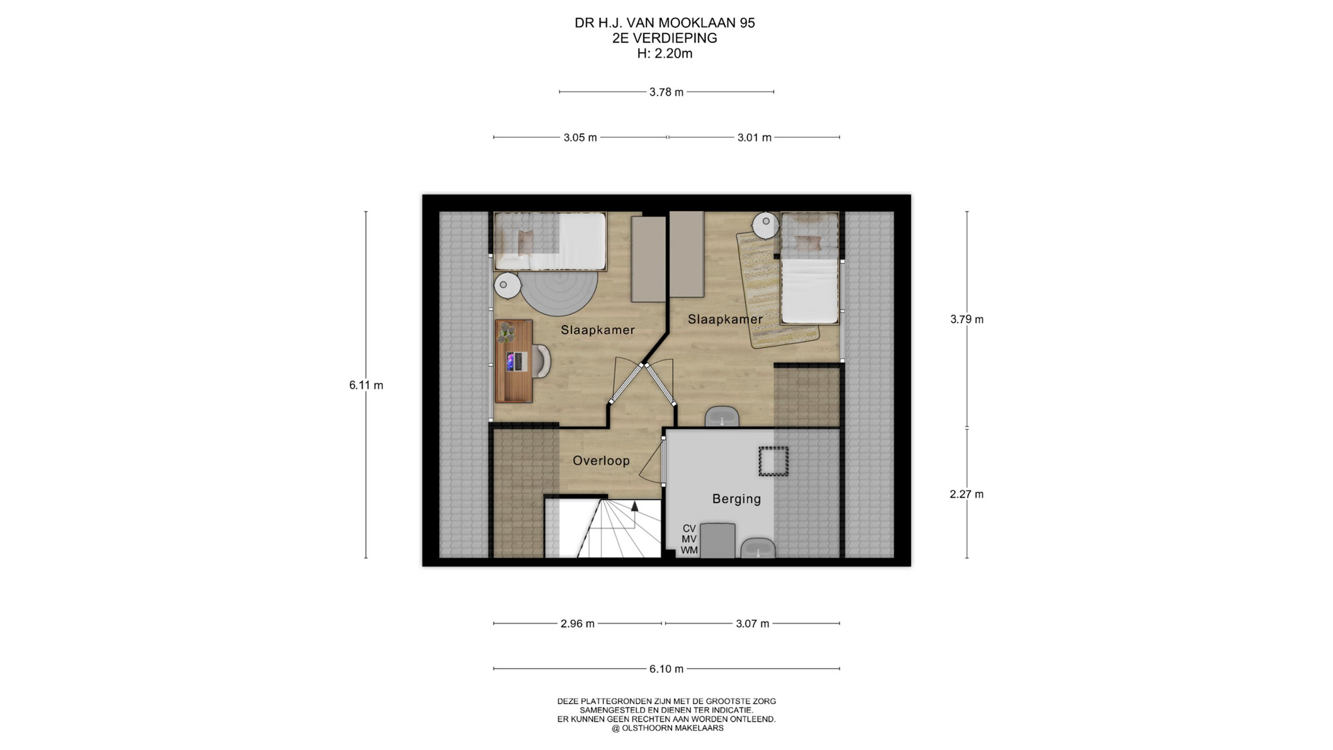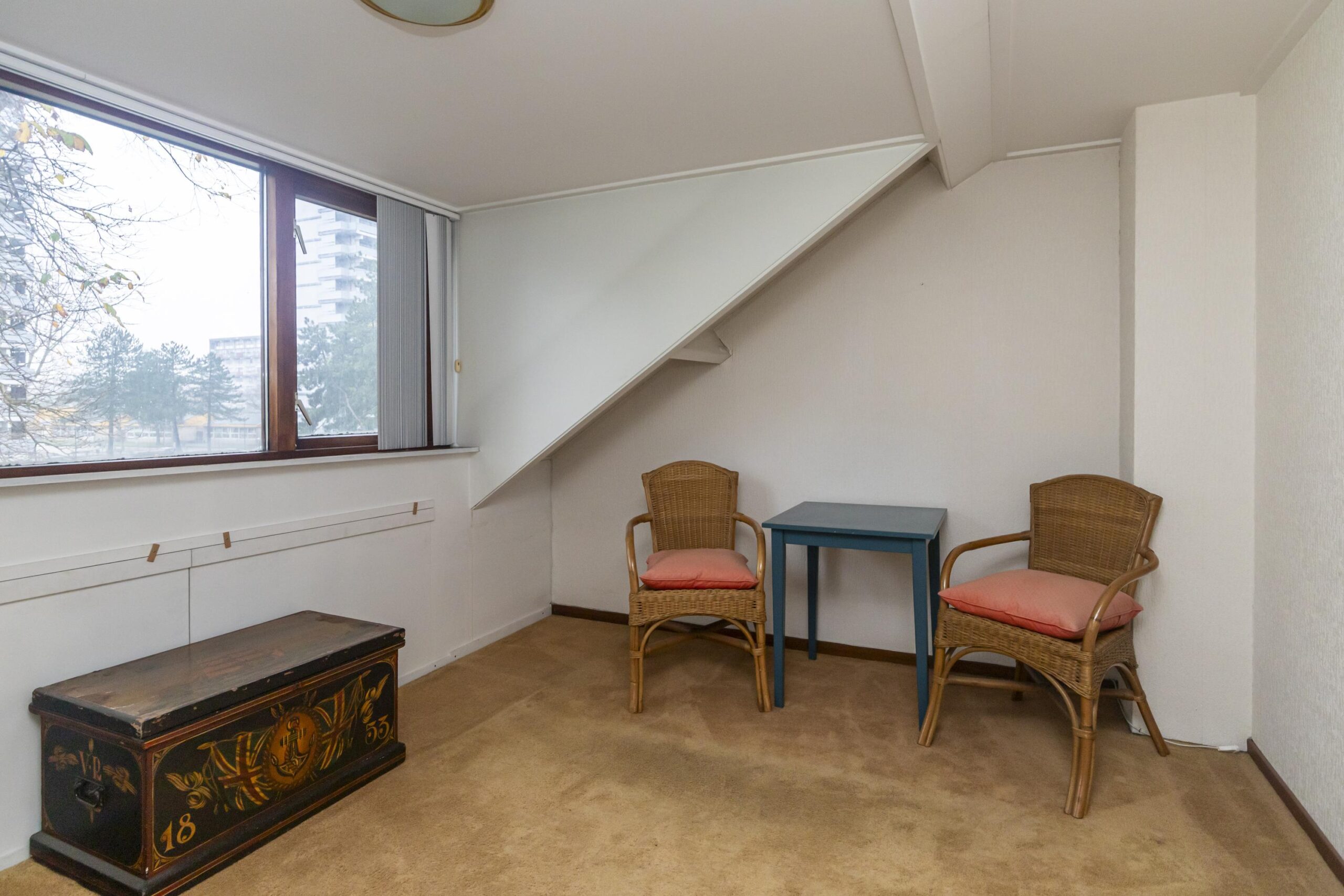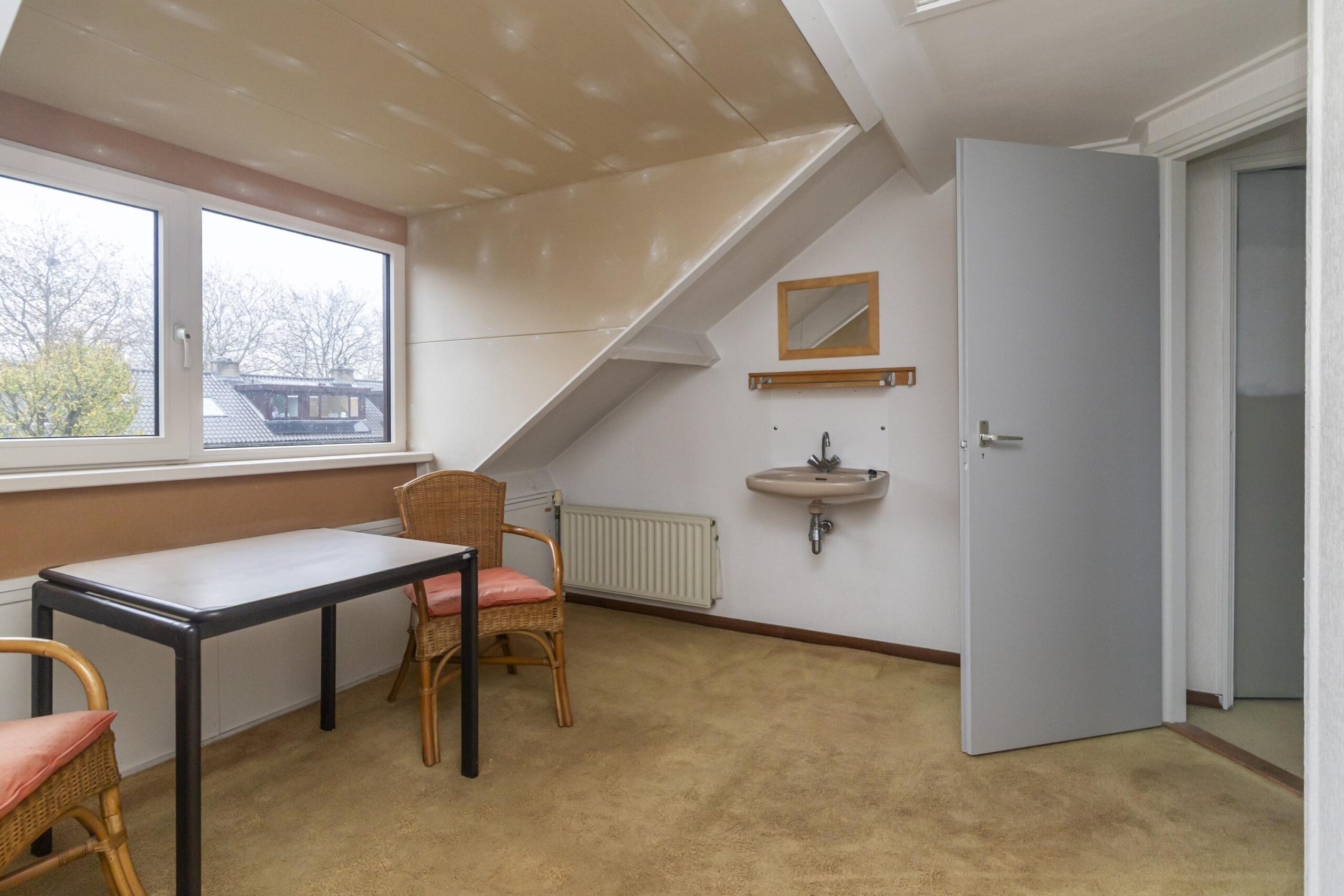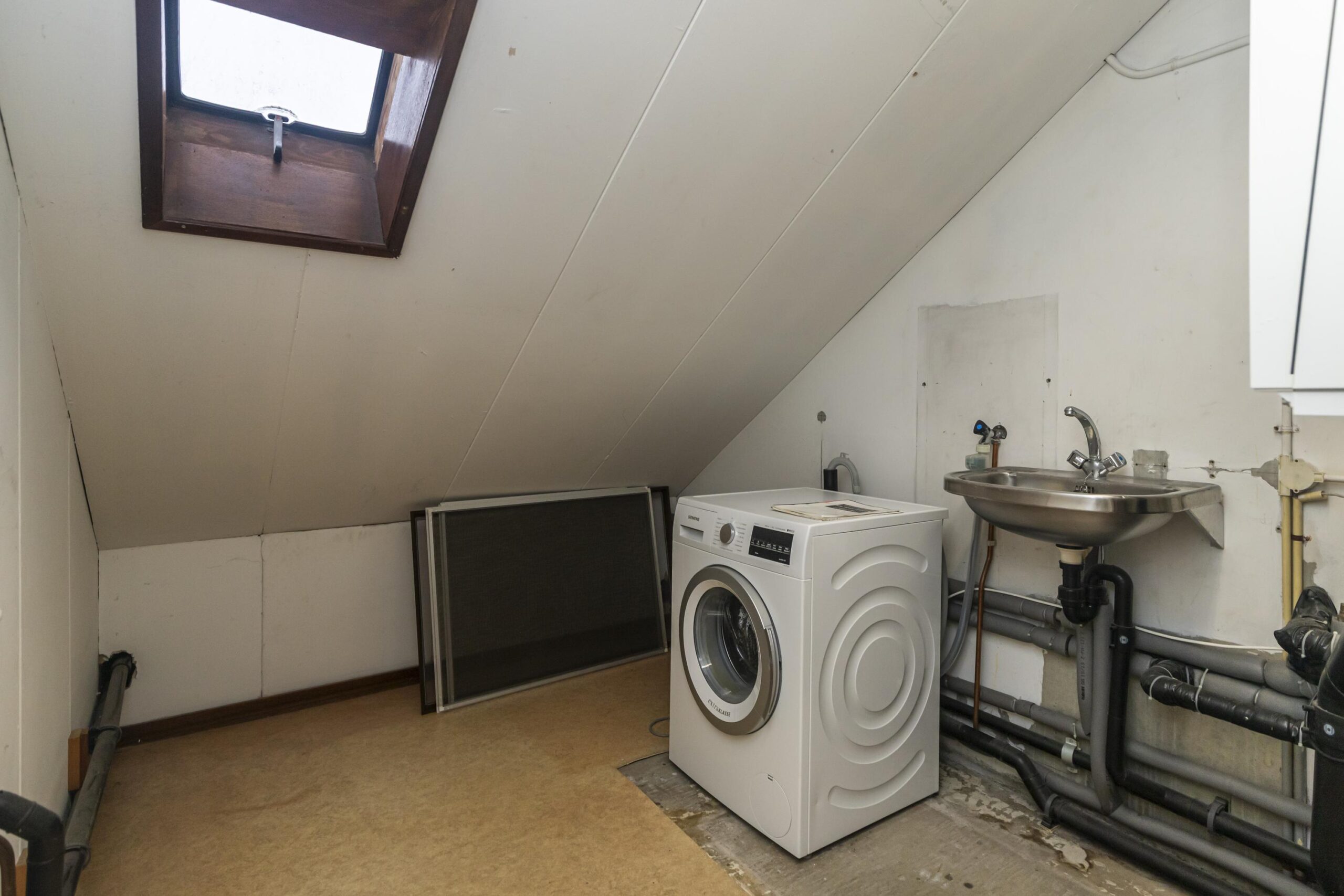 Overloop biedt toegang tot de installatieruimte en twee ruime zolderkamers door de twee dakkapellen. In de installatieruimte zijn de aansluitpunten voor de wasmachine aanwezig. Ter hoogte van de wasmachine is een wastafel aanwezig. Ook de CV ketel bevindt zich in deze ruimte. De riante zolderkamer aan de achterzijde heeft een wastafel en geeft toegang tot de vliering. De tweede ruime zolderkamer bevindt zich aan de voorzijde van de woning. Achter de knieschotten op de zolderverdieping is veel bergruimte aanwezig.
