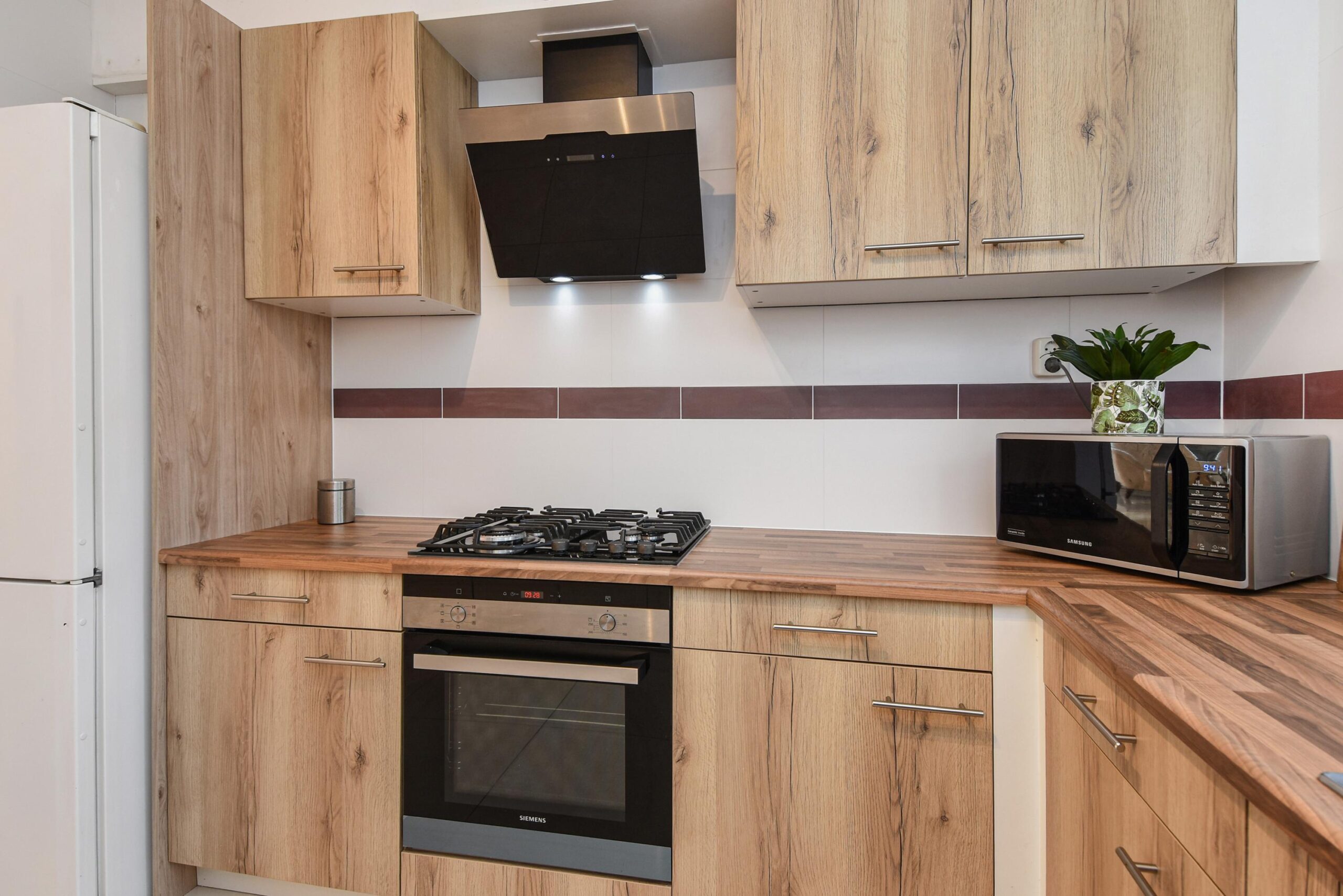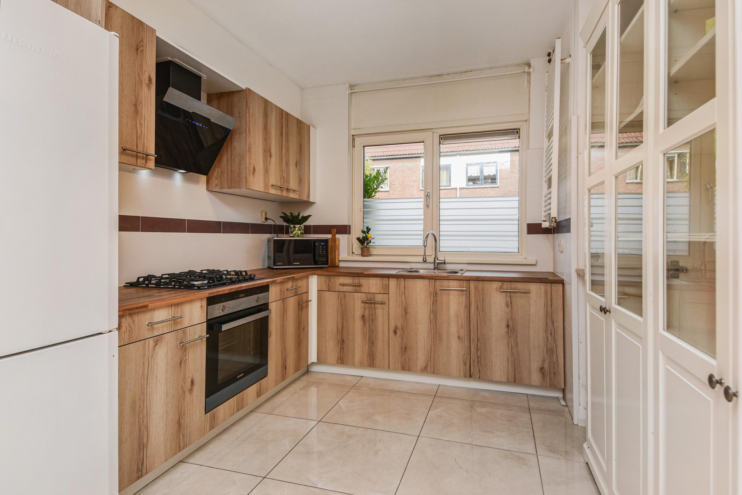 Bij binnenkomst betreed je de ruime hal die toegang biedt tot het moderne toilet met wastafel. Vanuit de hal loop je door naar de keuken, welke zich aan de voorzijde van de woning bevindt. De keuken is recent vernieuwd en uitgerust met een vaatwasser, oven en een 4-pits gasfornuis. Daarnaast is er genoeg opbergruimte aanwezig. Aan de achterzijde van de woning bevindt zich de sfeervolle woonkamer, gelegen in de uitbouw. Dankzij de grote schuifpui geniet je hier van veel lichtinval en een fijn uitzicht op de tuin. De achtertuin is gesitueerd op het zuidoosten en beschikt over een berging en een praktische achterom, ideaal om fietsen te stallen.