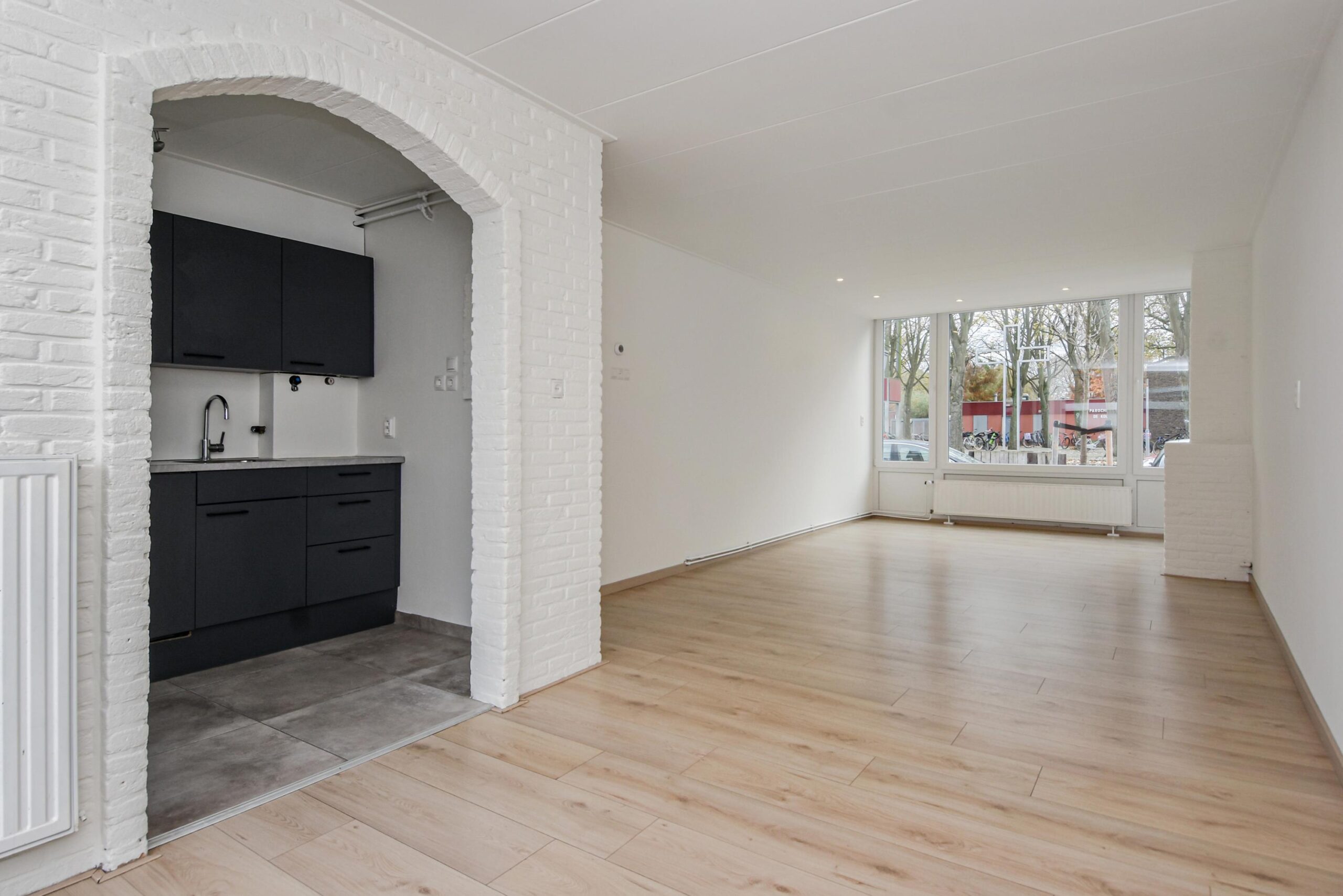 Bij binnenkomst in de woning kom je in een ruime hal welke toegang geeft tot alle vertrekken. Aan de linkerzijde bevindt zich de lichte woon- en eetkamer, die dankzij de grote raampartijen een prettige, open sfeer heeft. De halfopen keuken sluit hier mooi op aan en is uitgerust met diverse inbouwapparatuur, waaronder een koel-vriescombinatie, combi-oven, vaatwasser en een 4-pits gasfornuis.