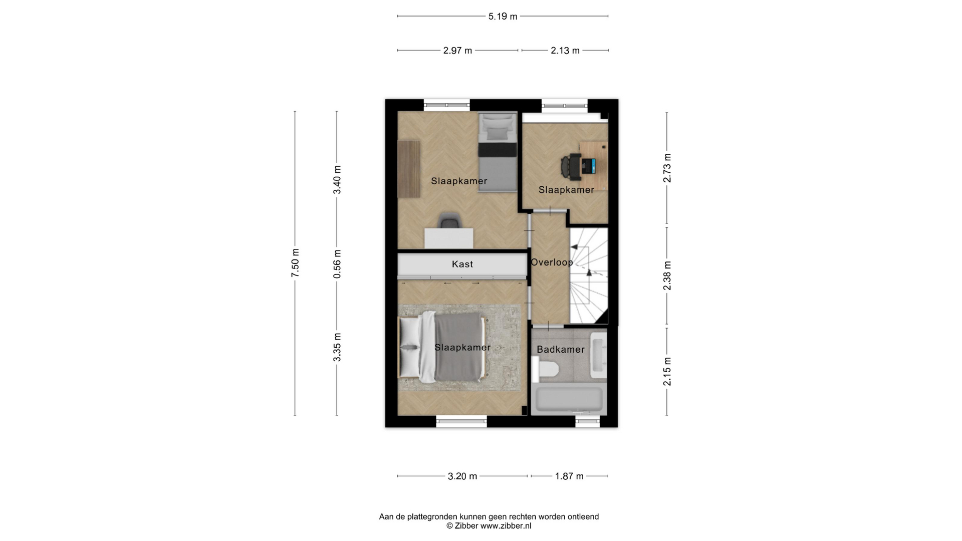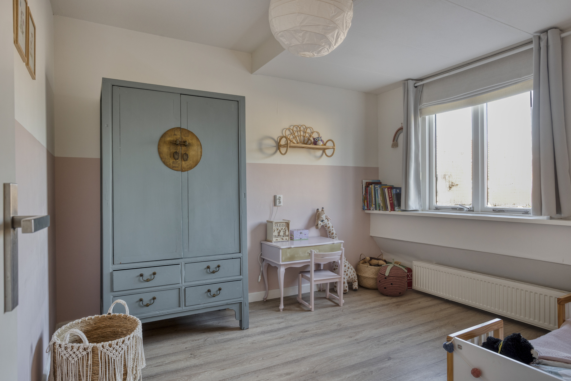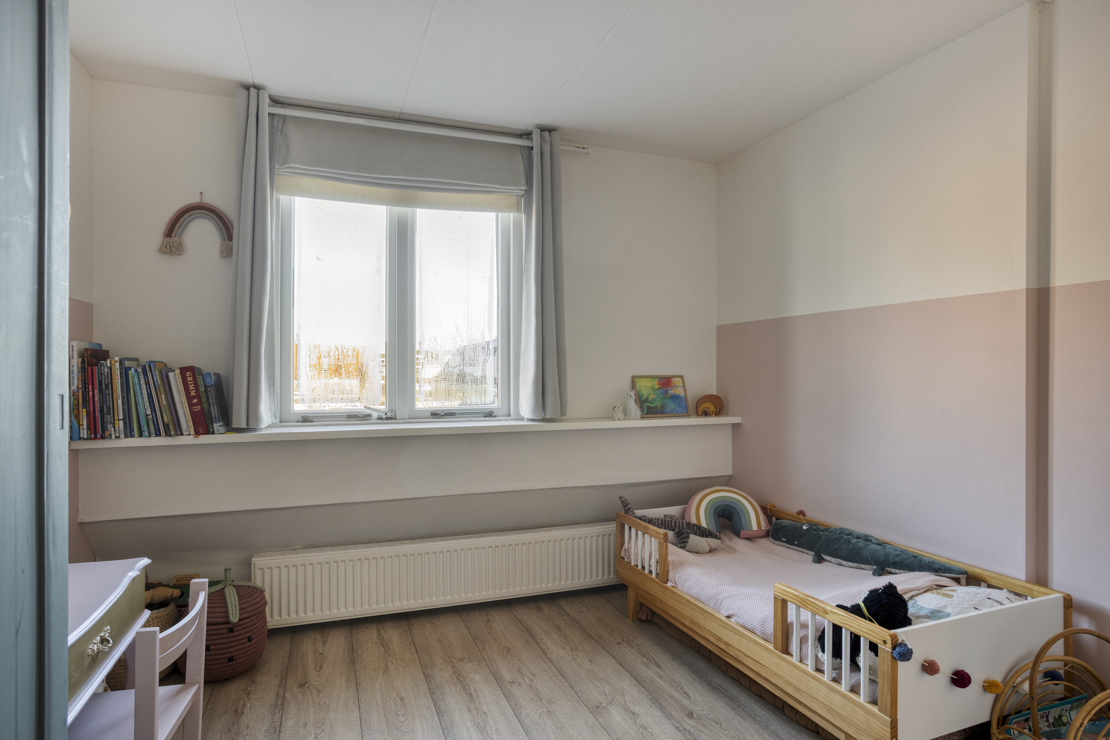 Aan de voorzijde ligt de eerste slaapkamer met vaste kast met schuifdeuren en radiatorombouw. De tweede en derde slaapkamer bevinden zich aan de achterzijde, beide voorzien van een laminaatvloer.