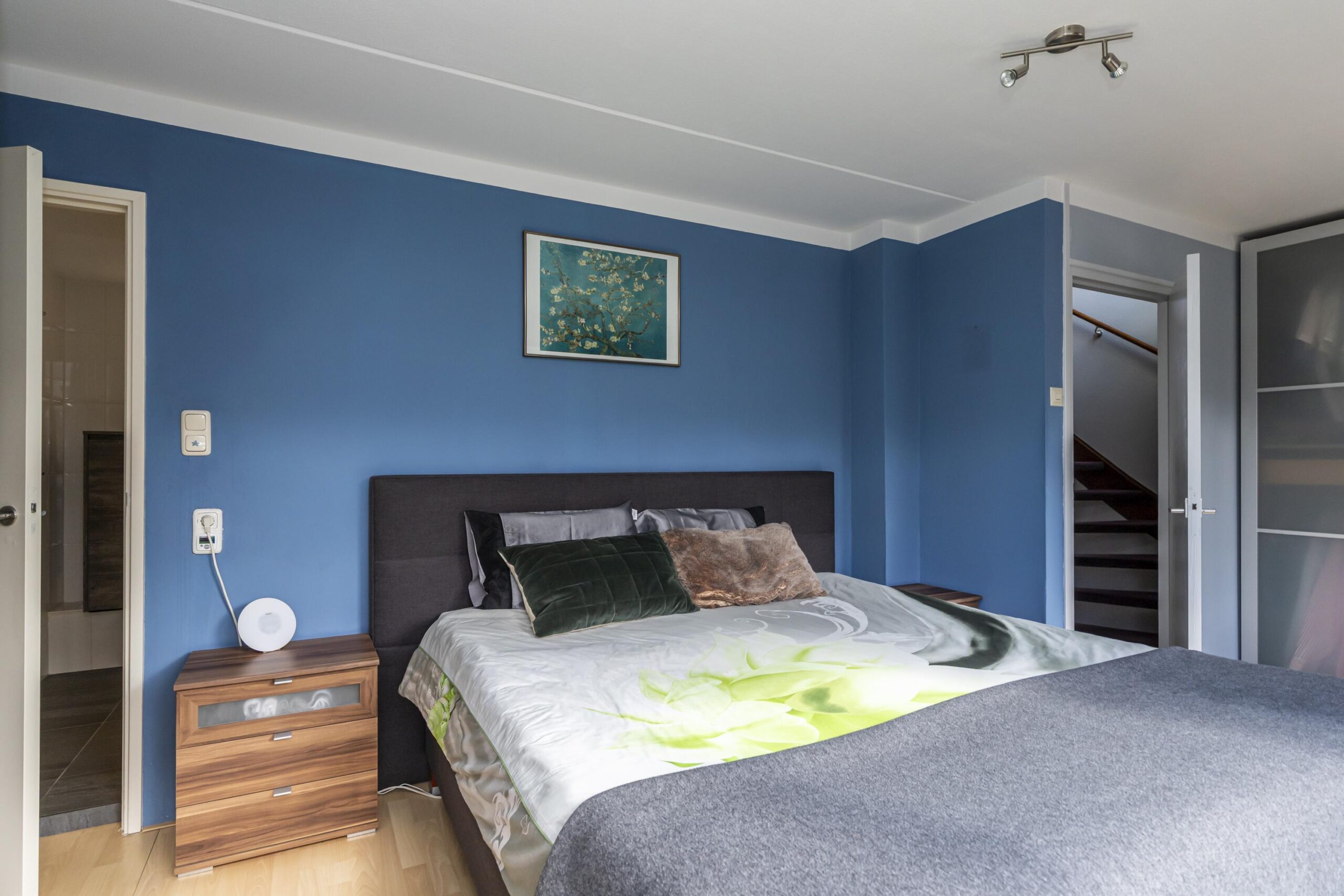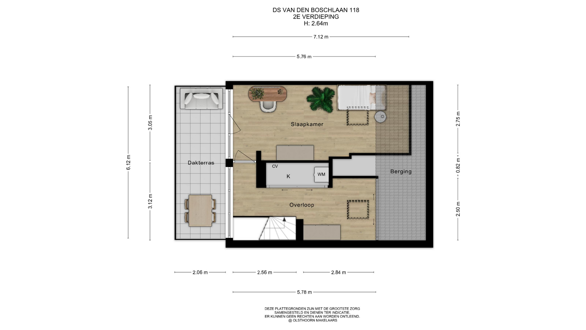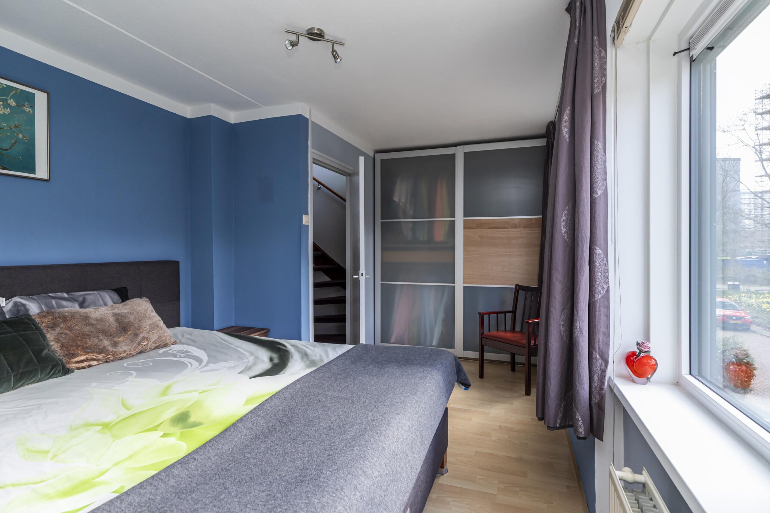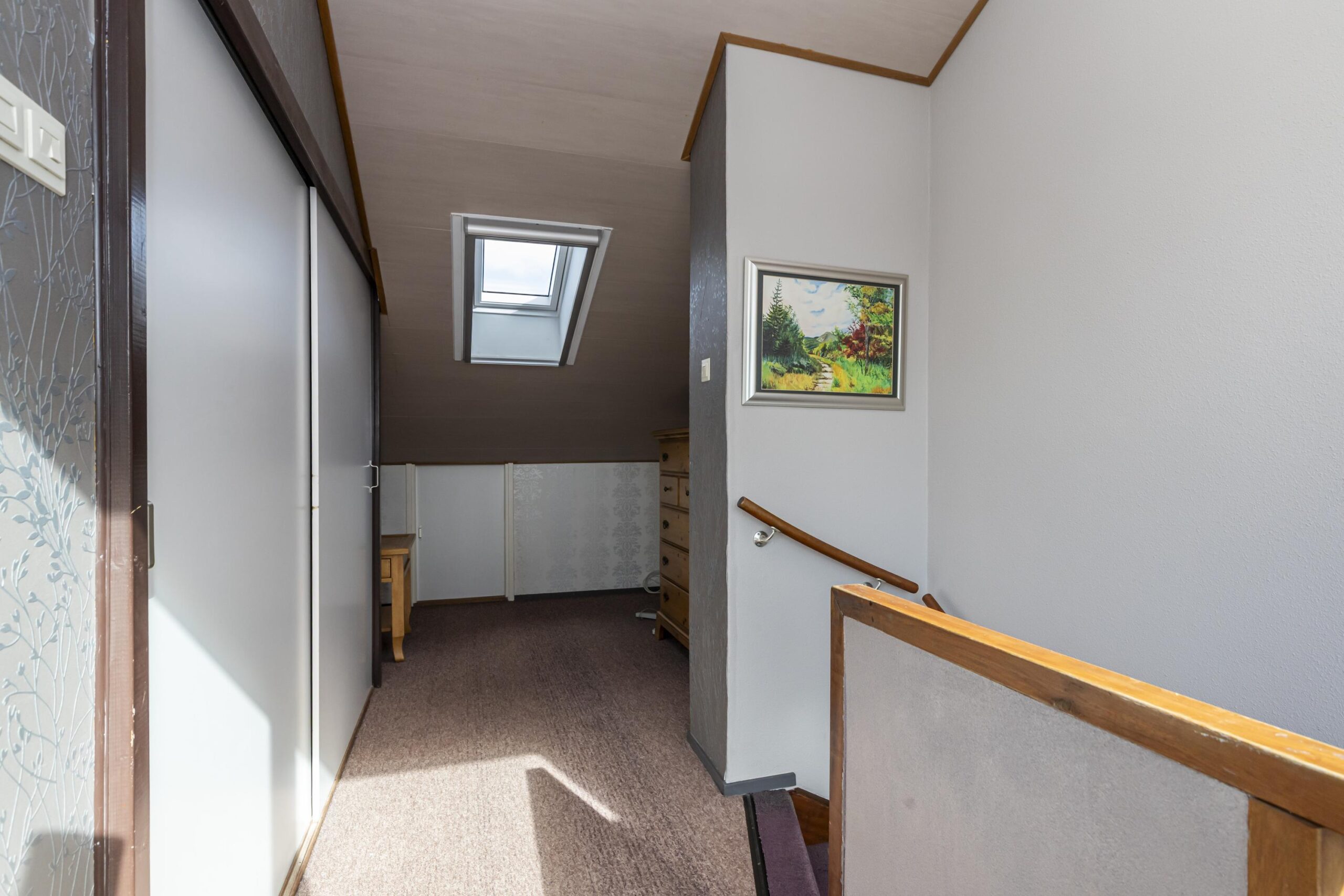 Deze verdieping voelt ruim en licht, door de grote raampartijen aan de voorkant en de twee dakramen aan de achterkant. Achter schuifdeuren bevinden zich de opstelplaatsen voor wasmachine en droger en de HR-ketel. Via een schuifdeur is er toegang tot extra opbergruimte. De vierde slaapkamer strekt zich uit over de volledige lengte van de woning en beschikt over een dakraam en een deur naar het zonnige dakterras op het zuiden. Een fijne plek om rustig buiten te zitten.