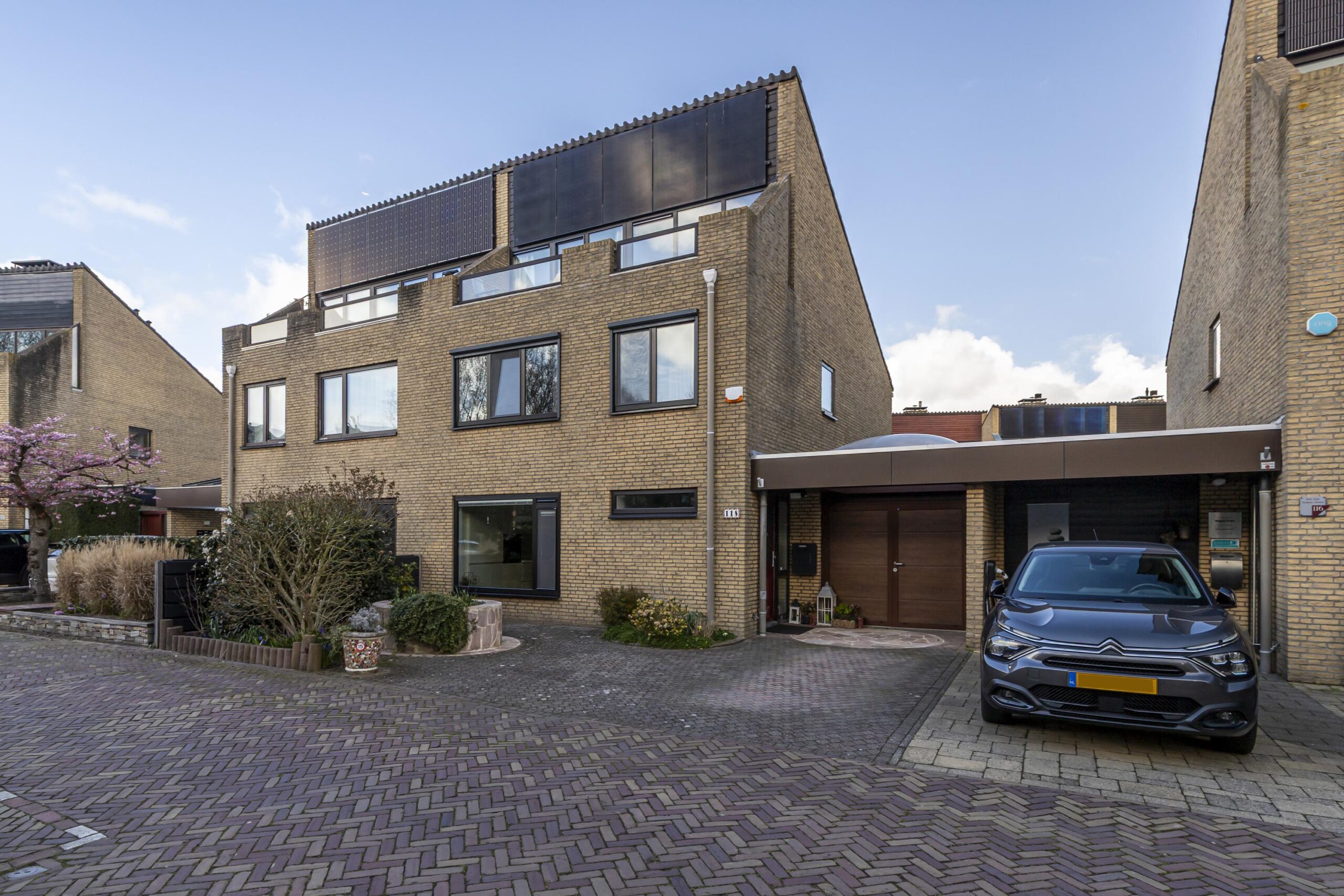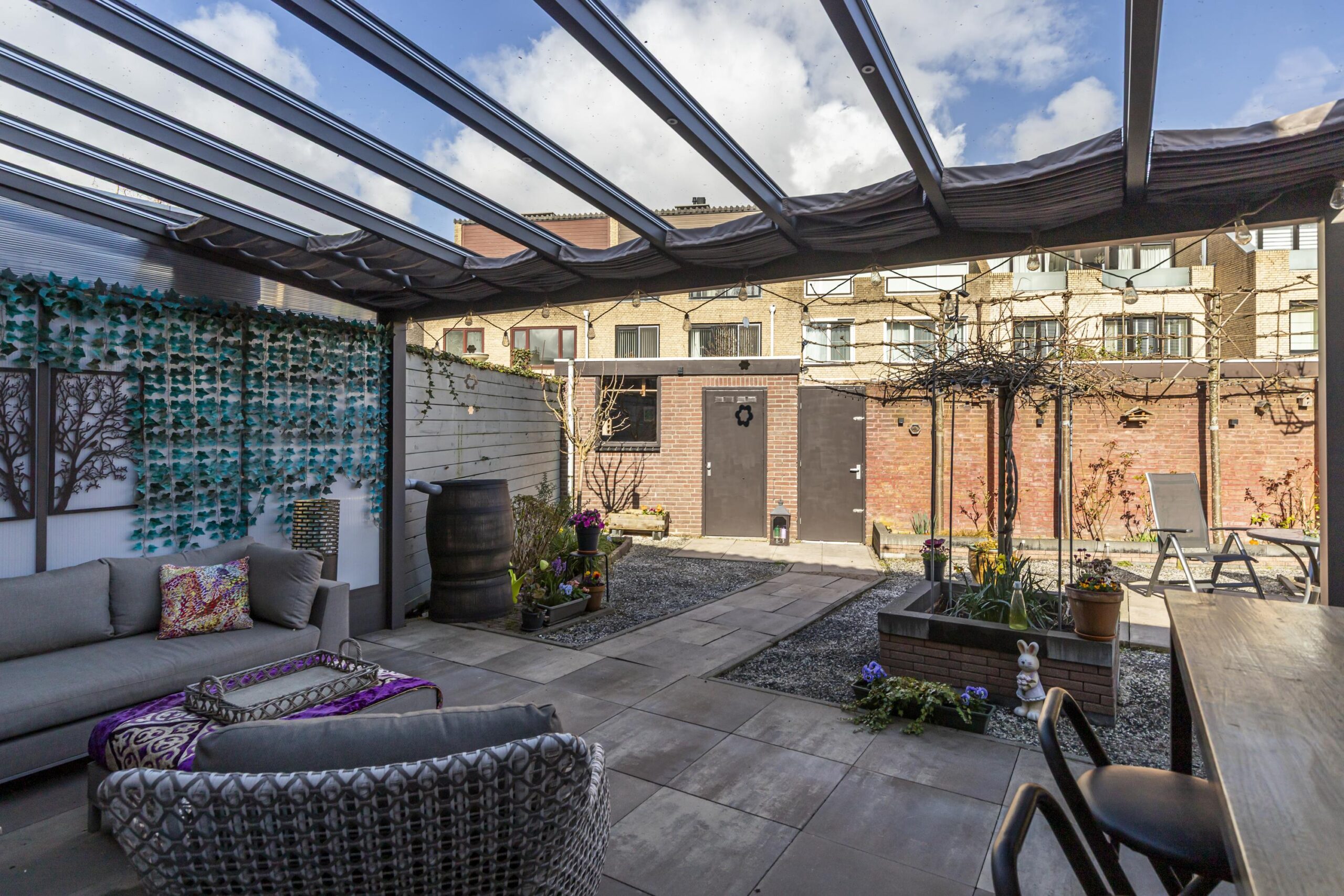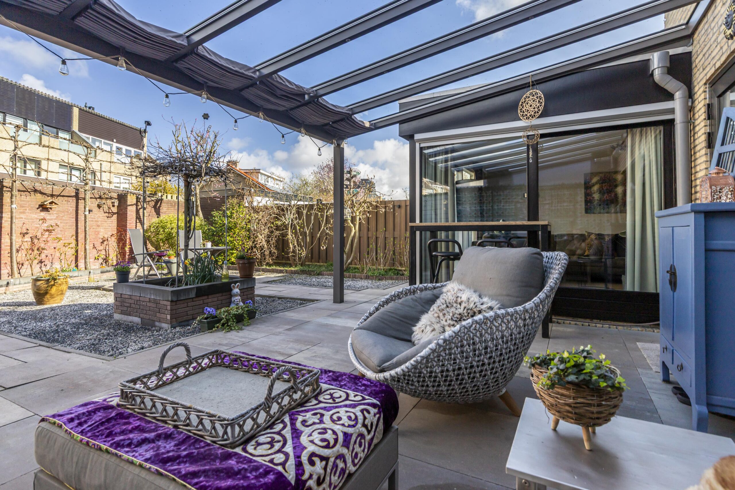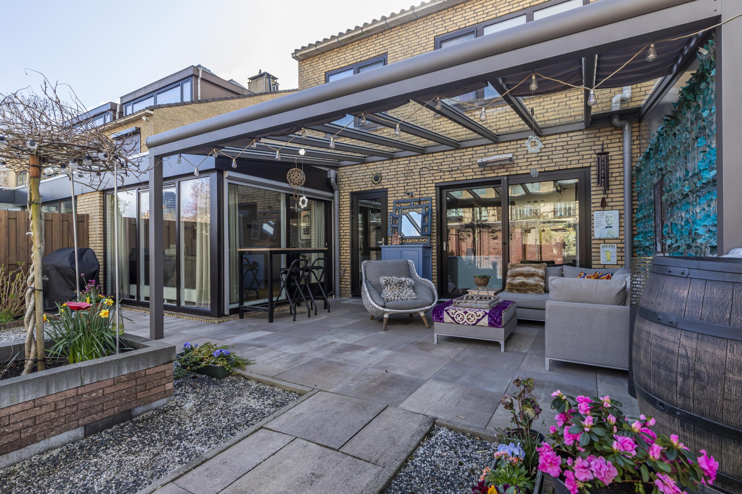 • Overkapping bij de voordeur en aan de achterzijde met zonwering en elektra
