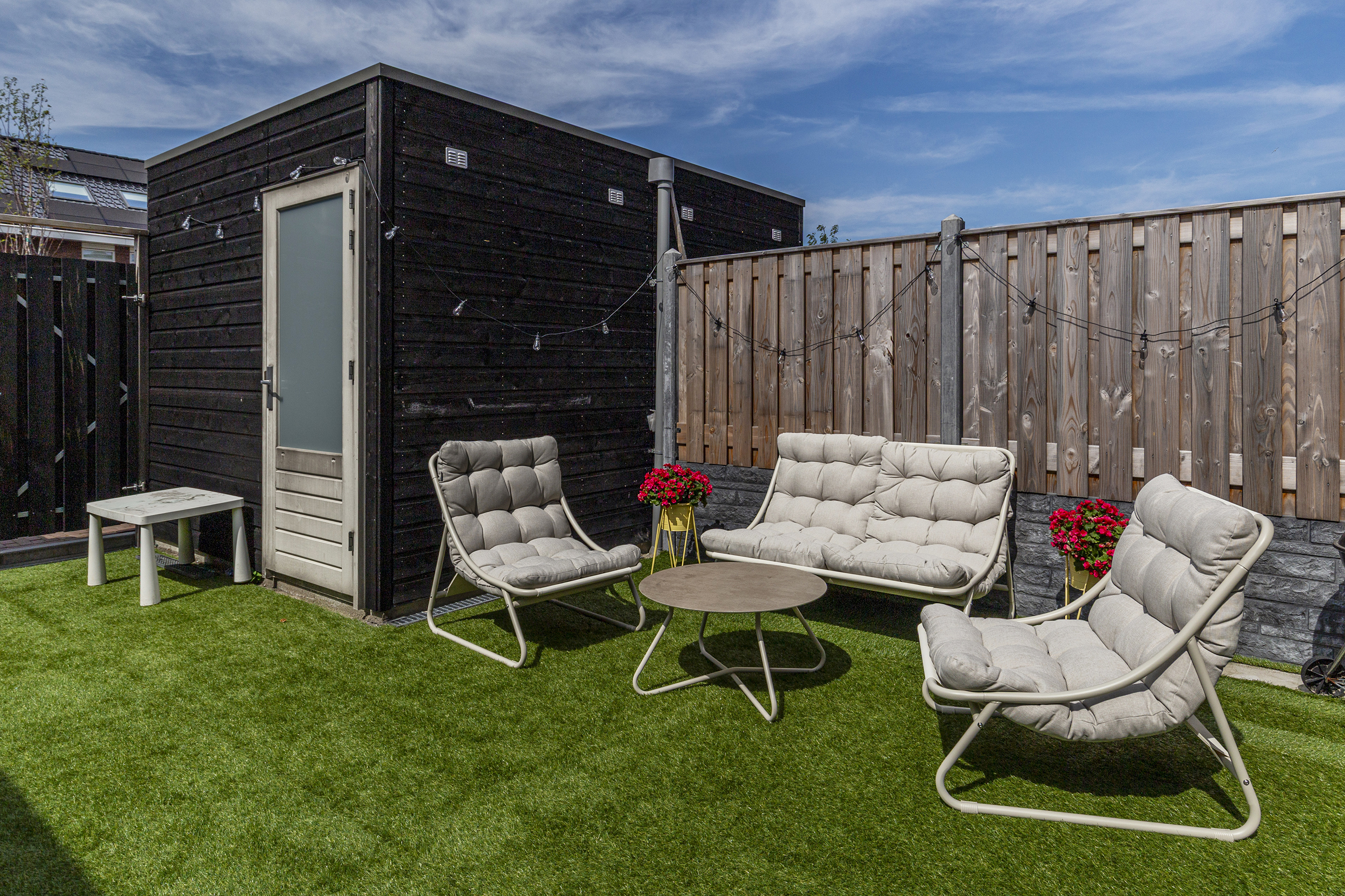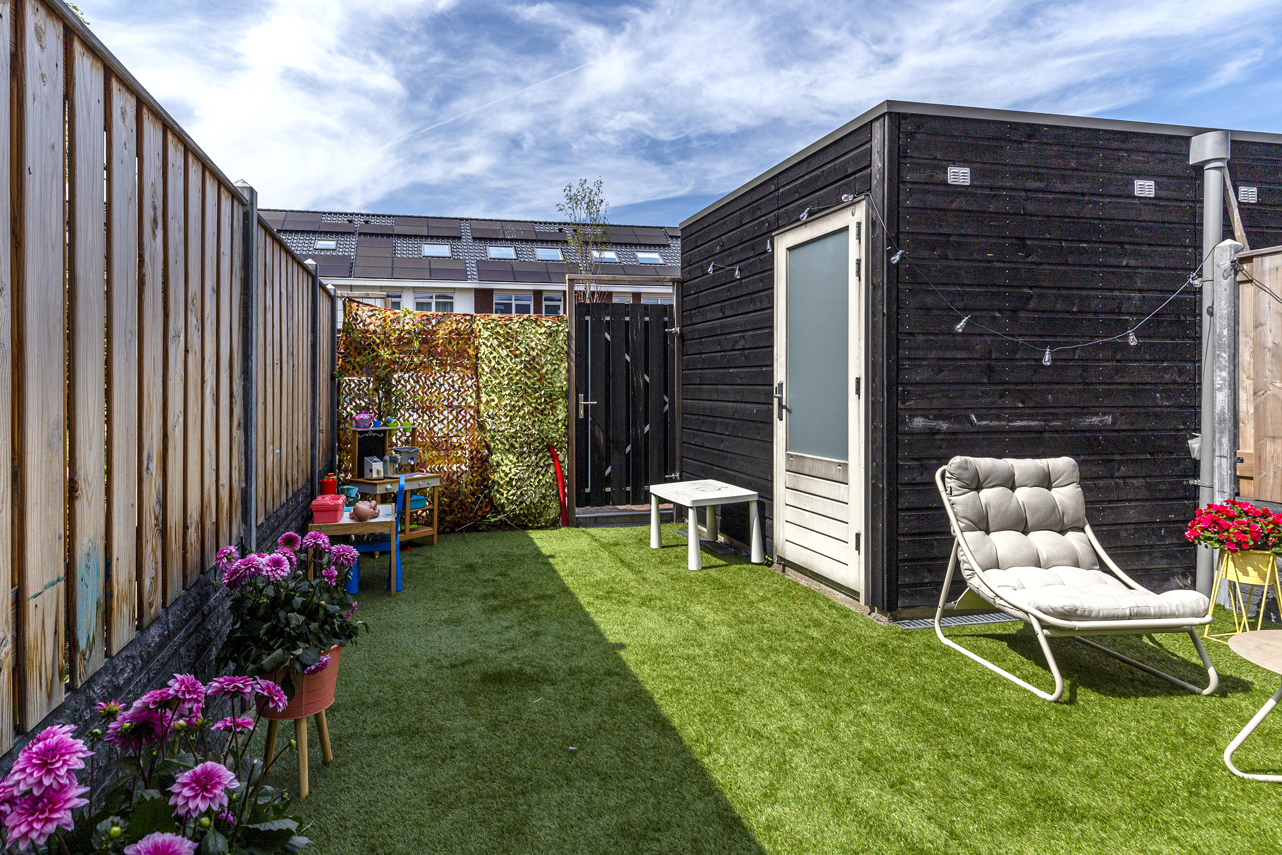 • Een zonnige tuin op het noordwesten met berging en achterom.