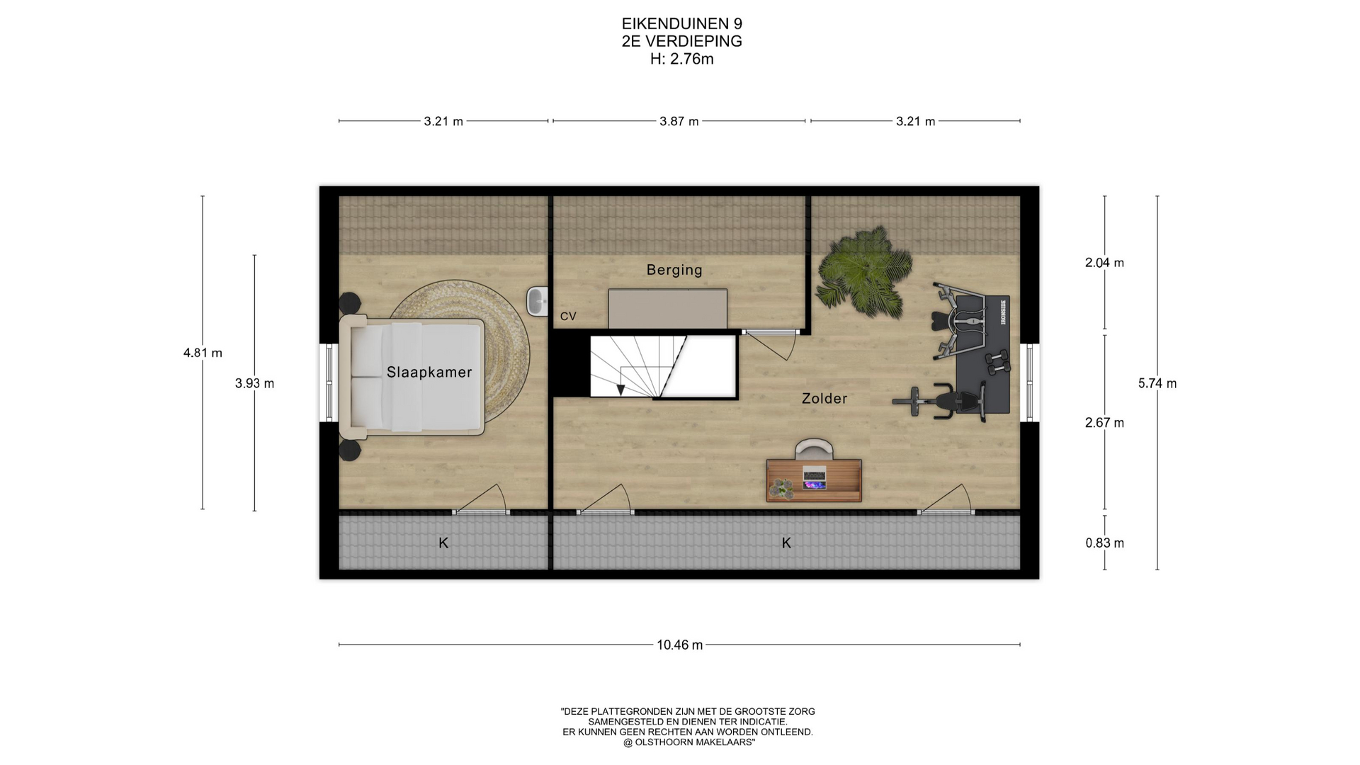 Op deze verdieping bevindt zich een ruime overloop met toegang tot bergruimte met opstelplaats c.v. combiketel (ca. 2018). De vierde slaapkamer is voorzien van een wastafel. De overige ruimte is naar eigen wens in te richten.