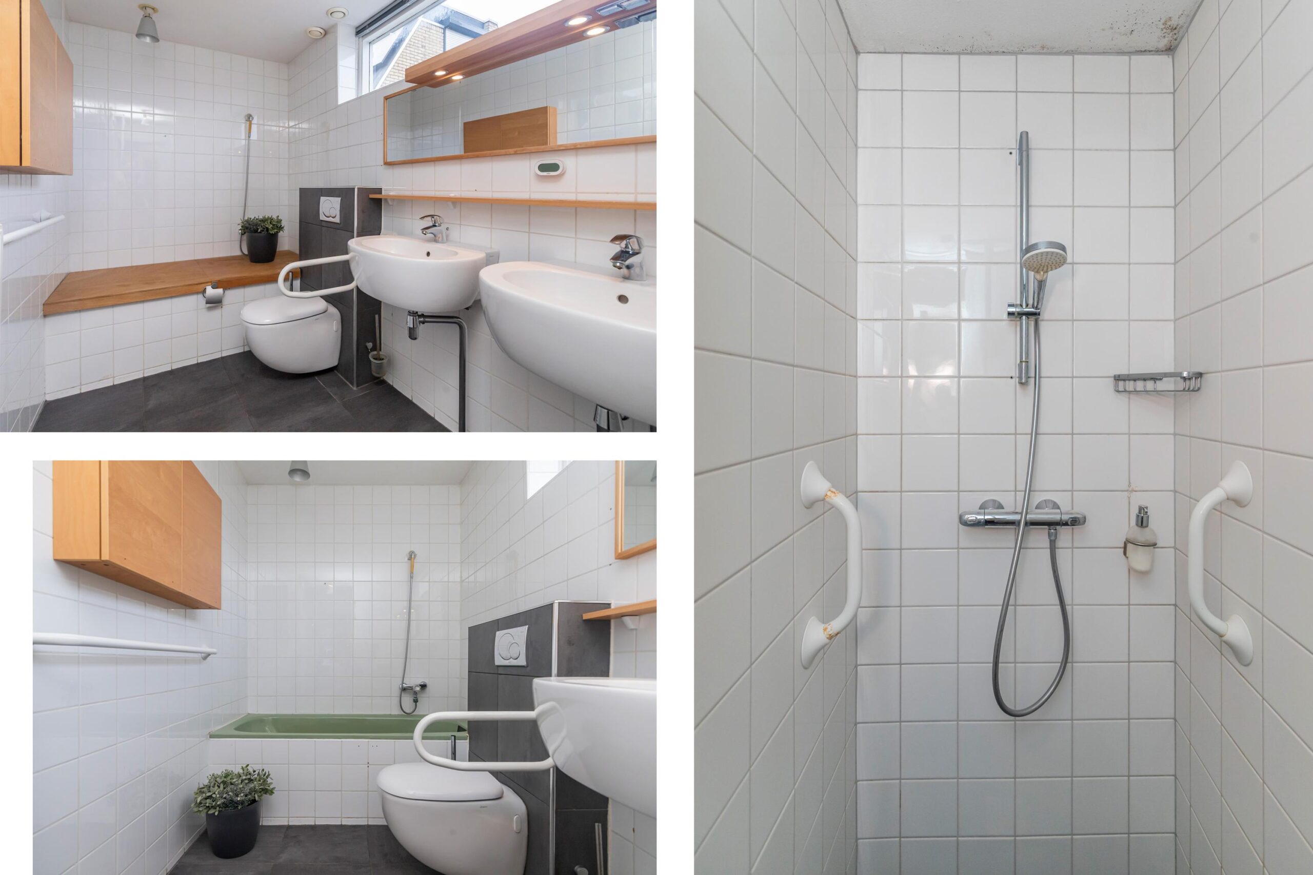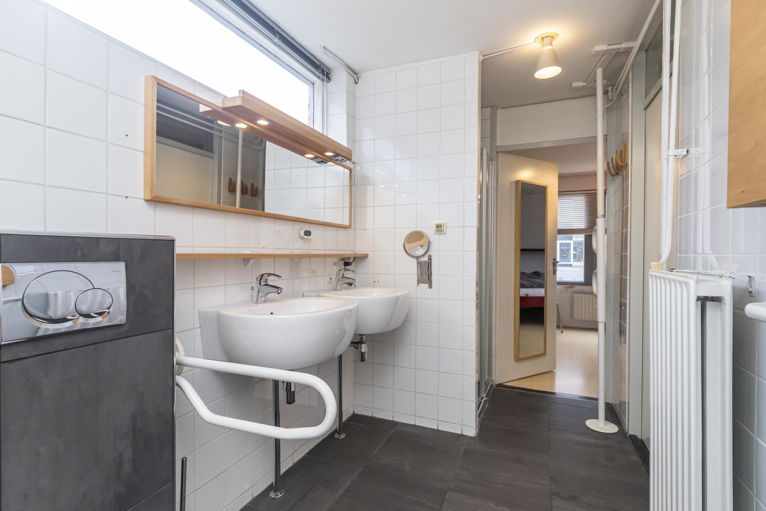- Badkamervoorzieningen Ligbad, toilet, douche, dubbele wastafel