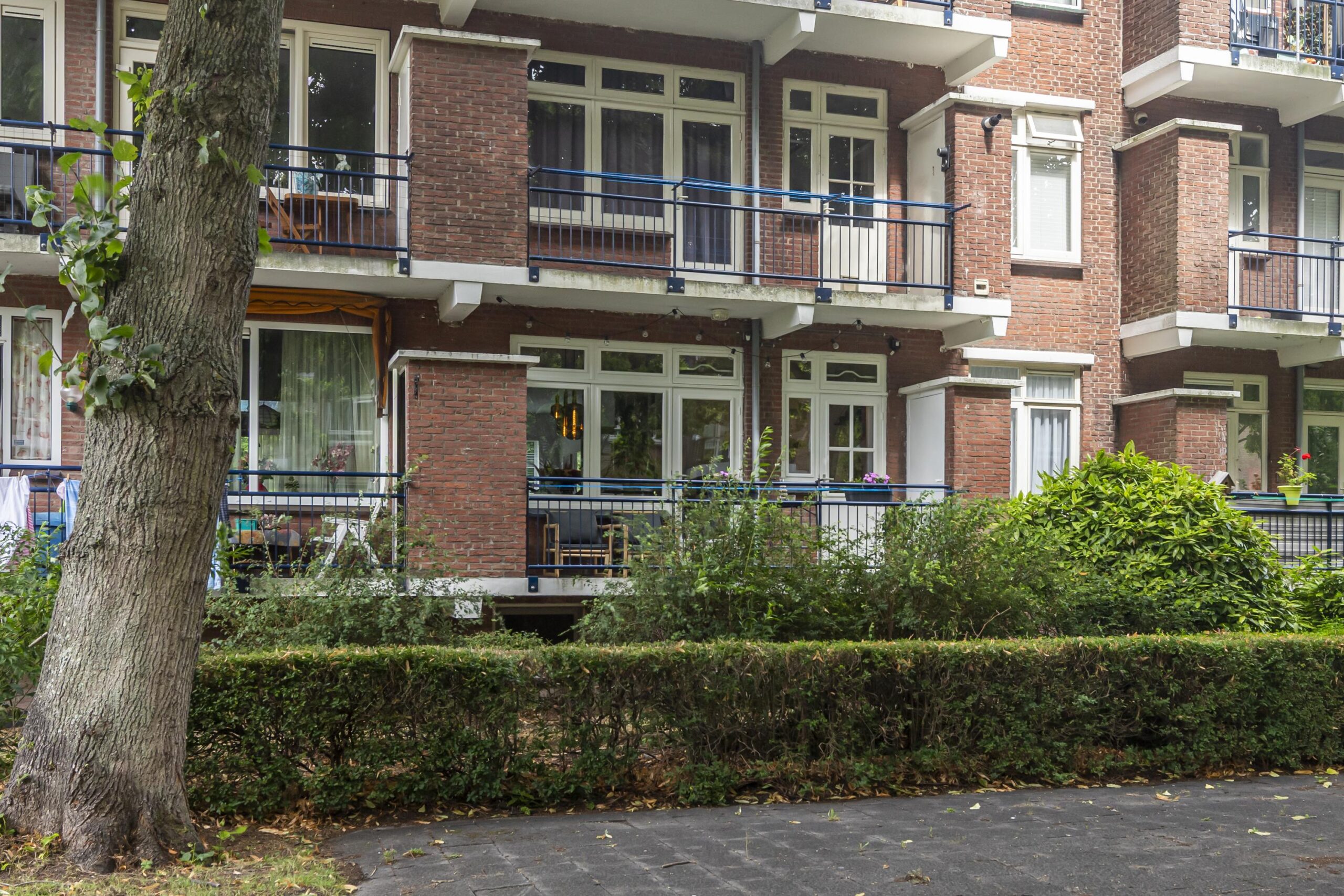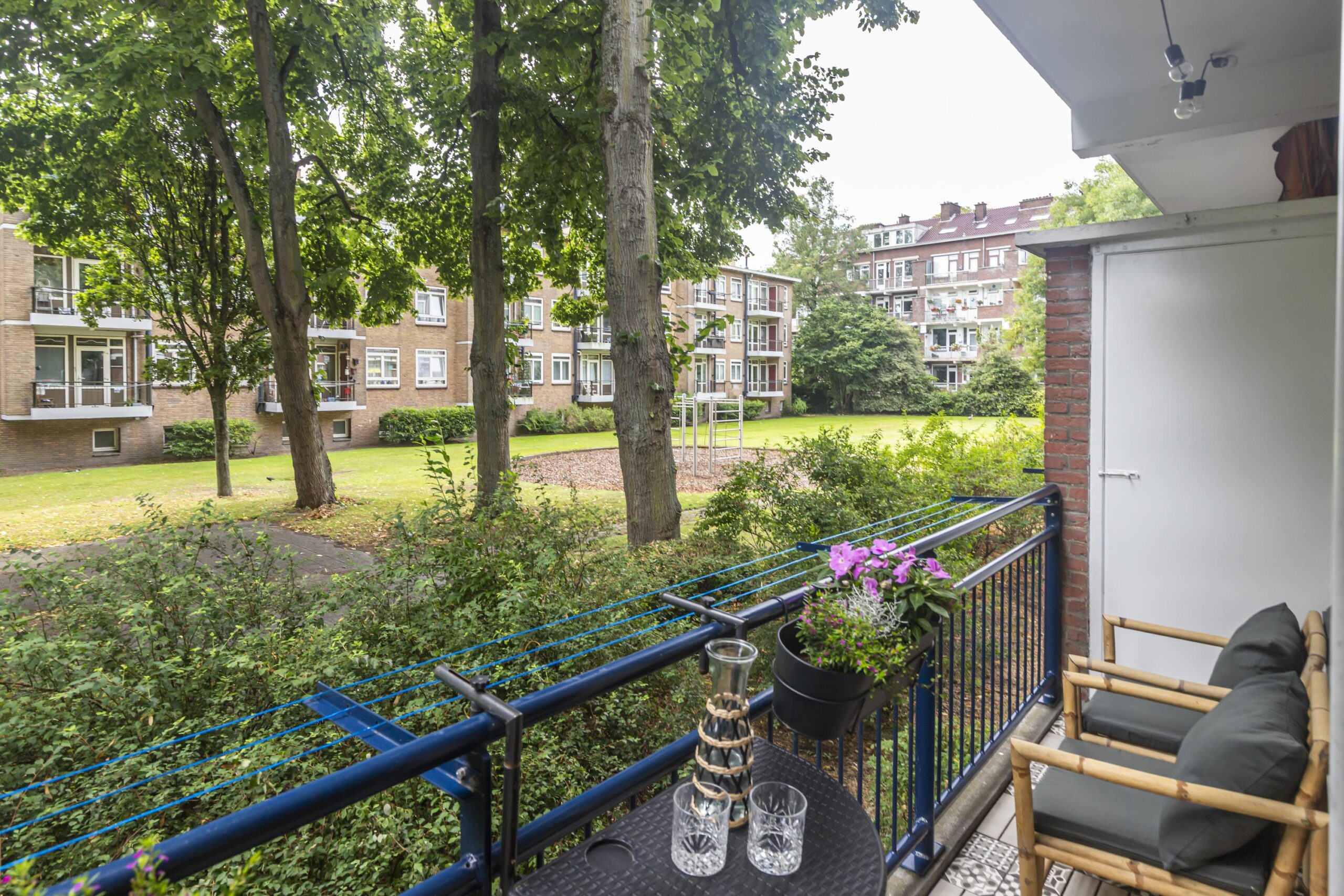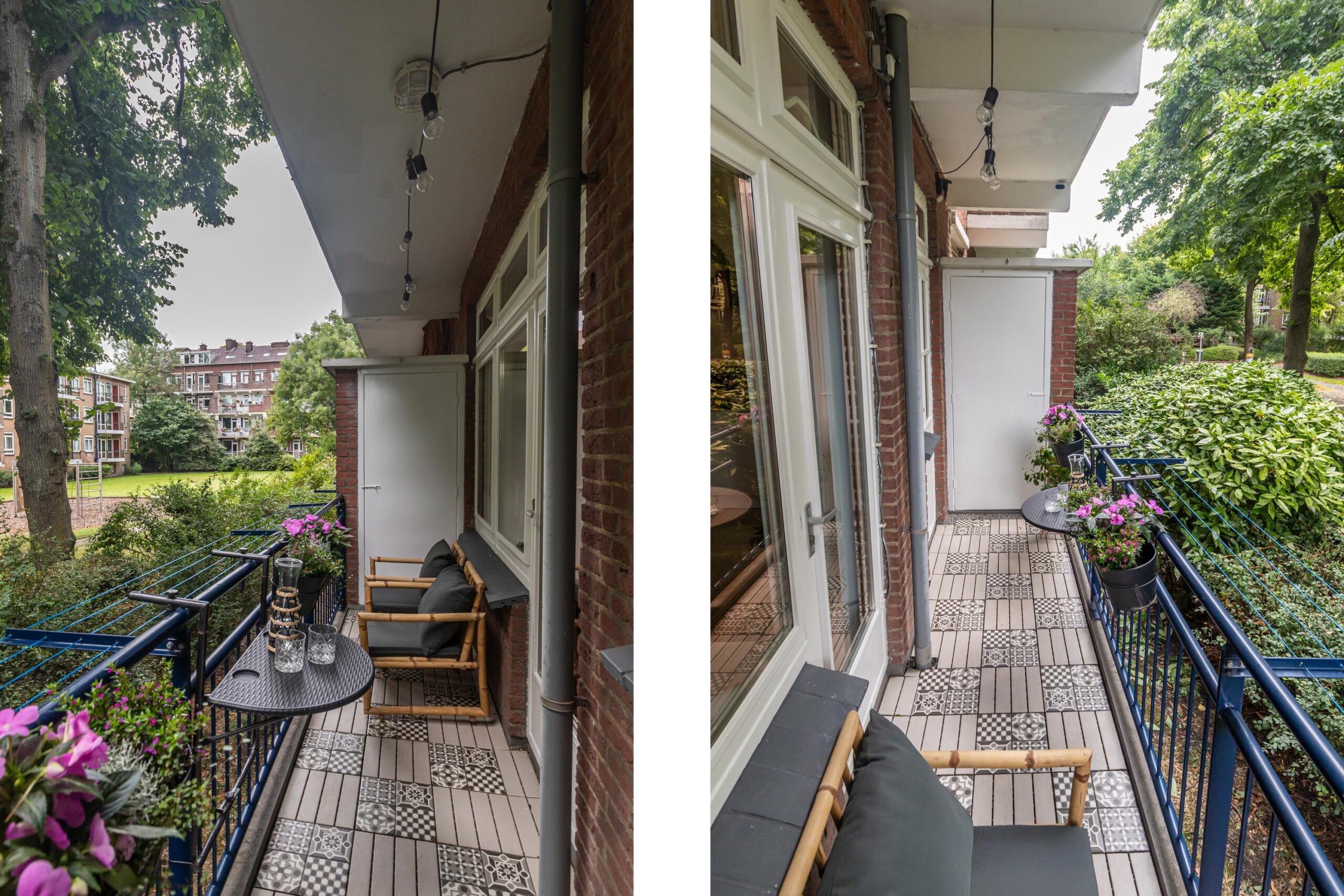 Het balkon aan de achterzijde is voorzien van twee praktische vaste kasten. Met het balkon op de ochtendzon en de voortuin op de avondzon, heb je elk moment van de dag een fijne plek om buiten te zitten.