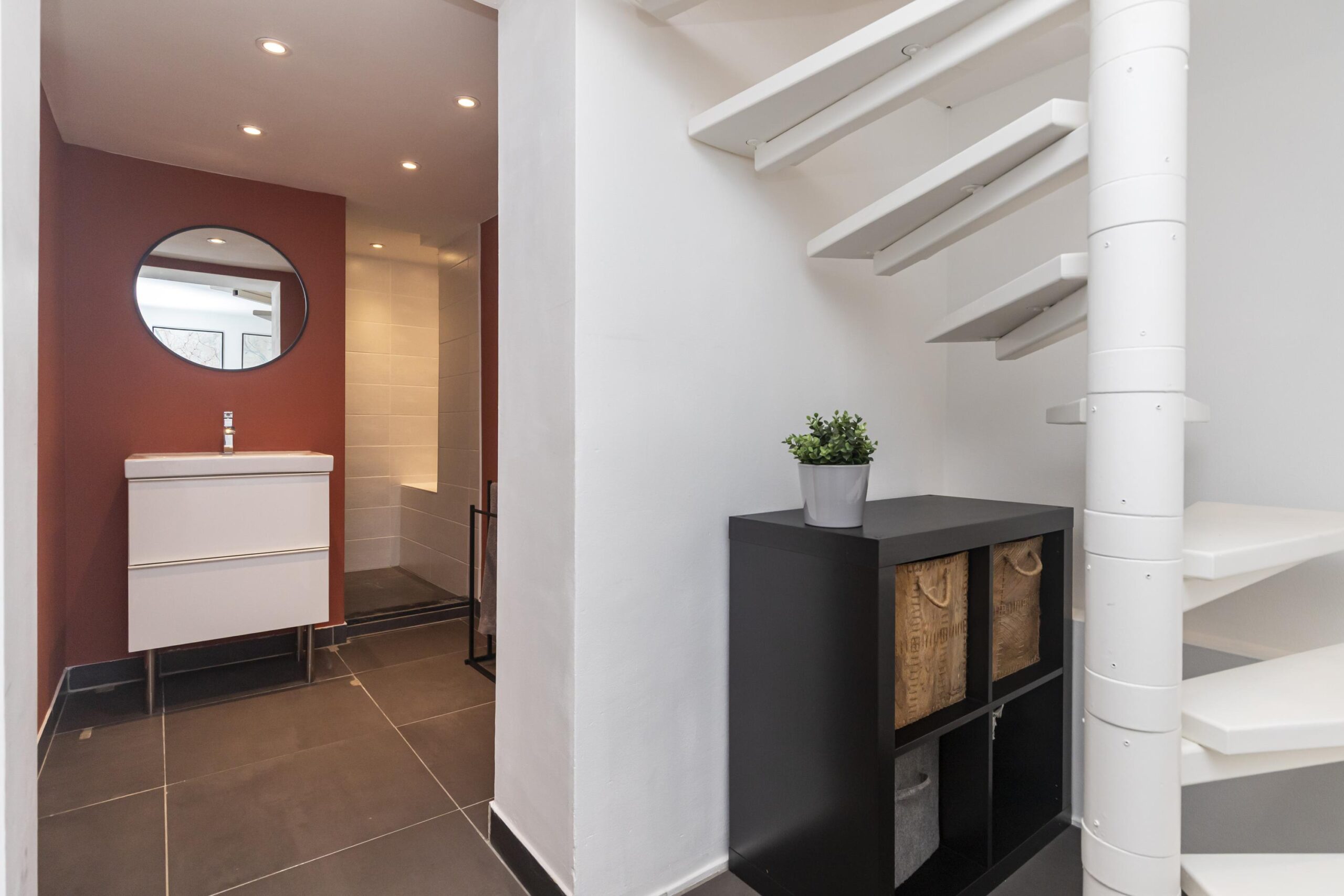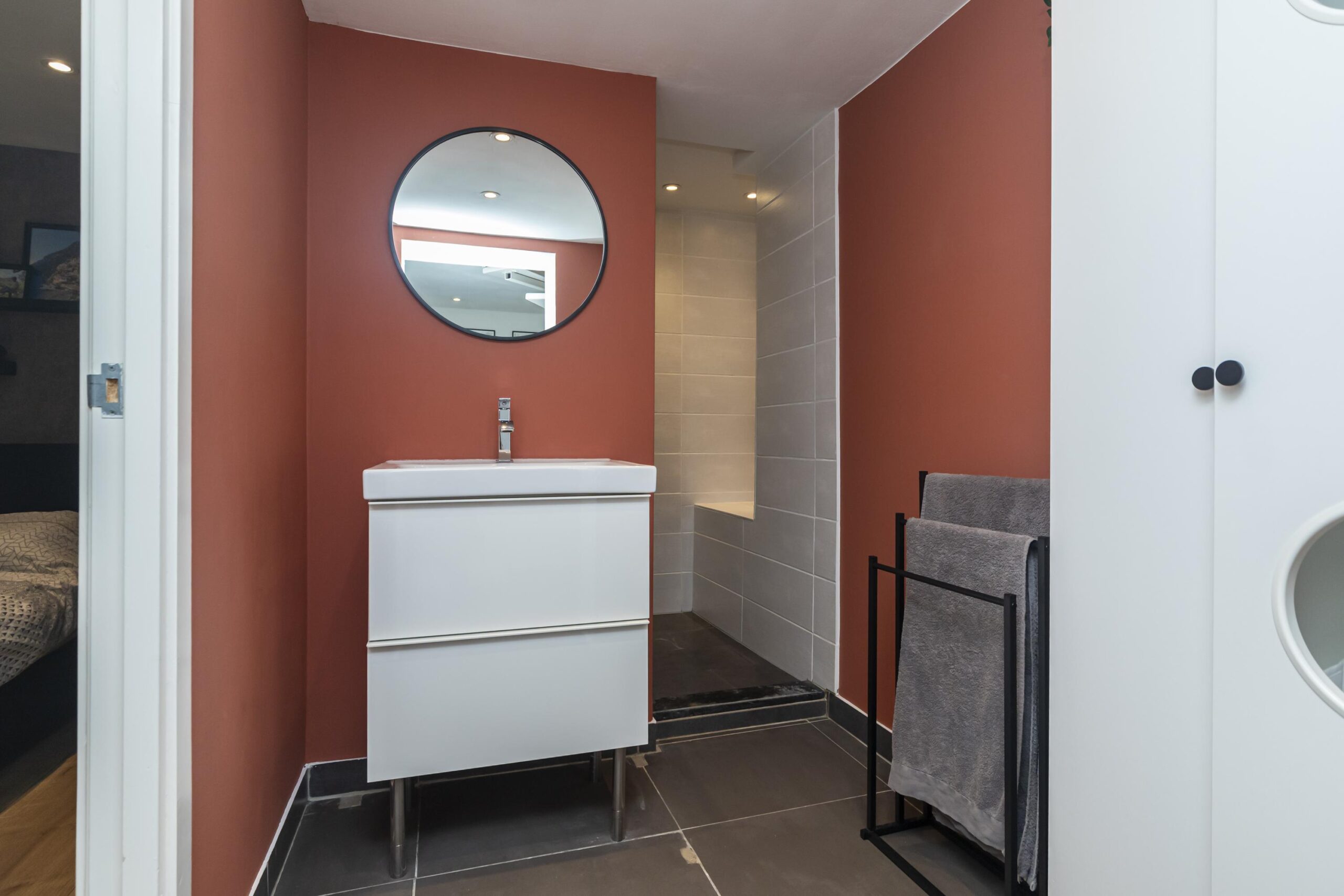 + Keurige badkamer met inloopdouche en wastafelmeubel;