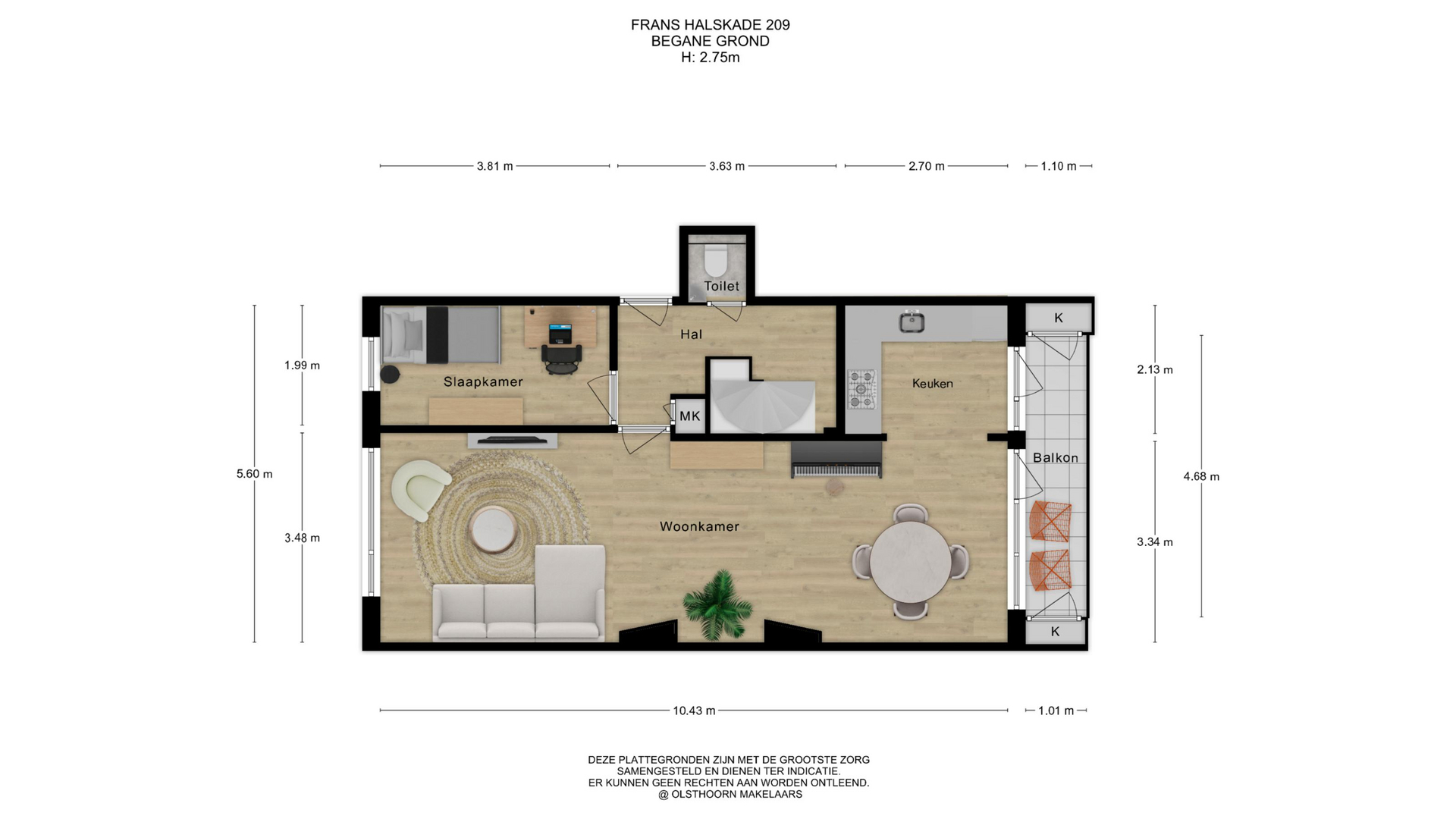 Deze informatie is geheel vrijblijvend, uitsluitend voor geadresseerde bestemd en niet bedoeld als aanbod. Ten aanzien van de juistheid van de vermelde informatie kan door de verkopend makelaar en haar opdrachtgever geen aansprakelijkheid worden aanvaard, noch kan aan de vermelde informatie enig recht worden ontleend.