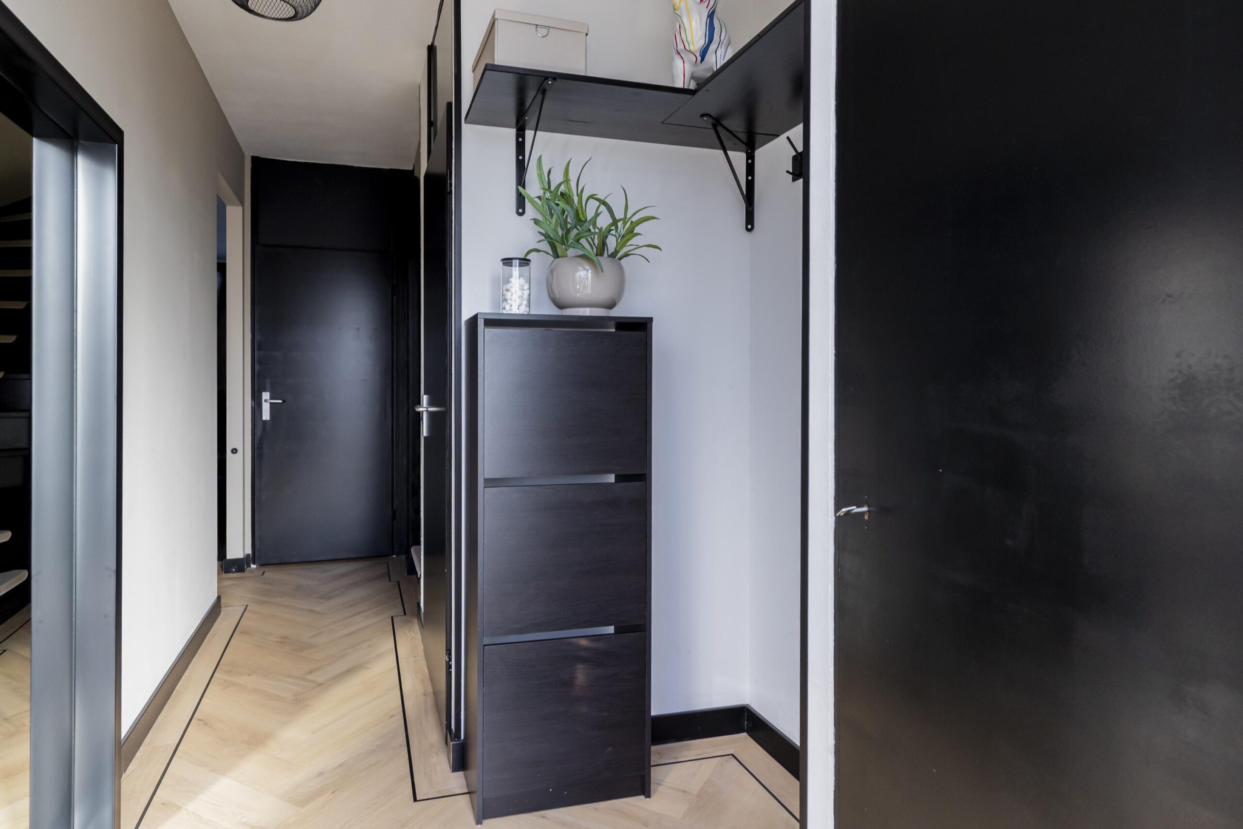 Wat direct opvalt, is de strakke uitstraling door de zwarte…