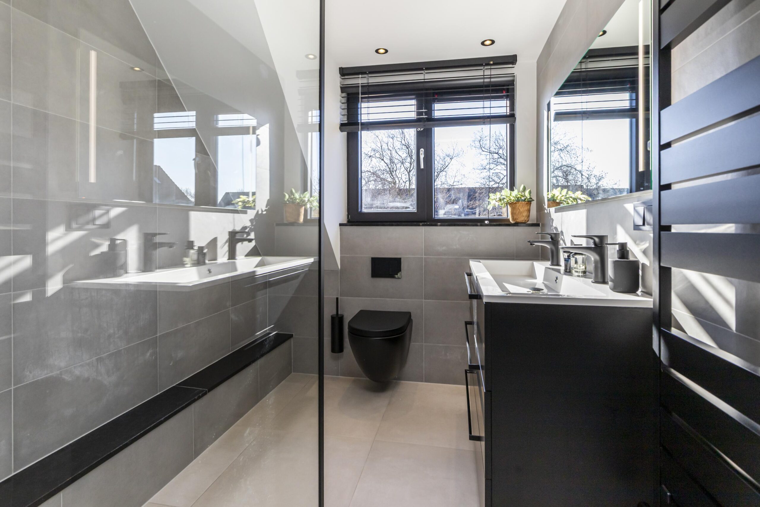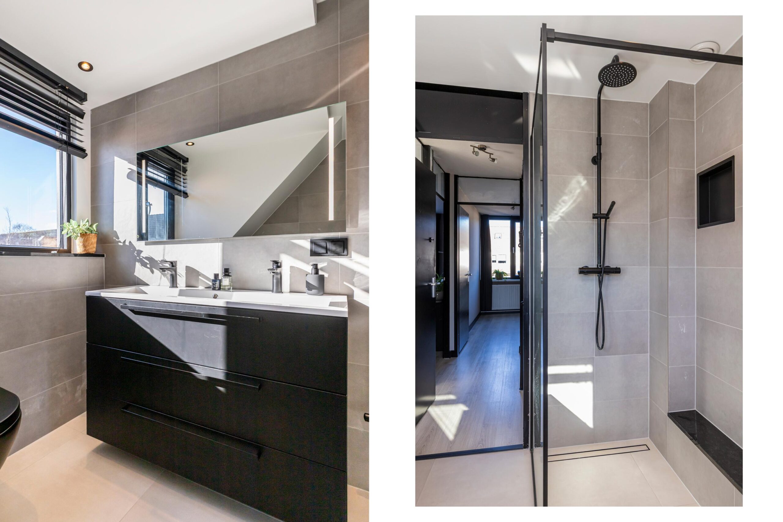 - Badkamervoorzieningen Toilet, dubbele wastafel, wastafelmeubel, inloopdouche