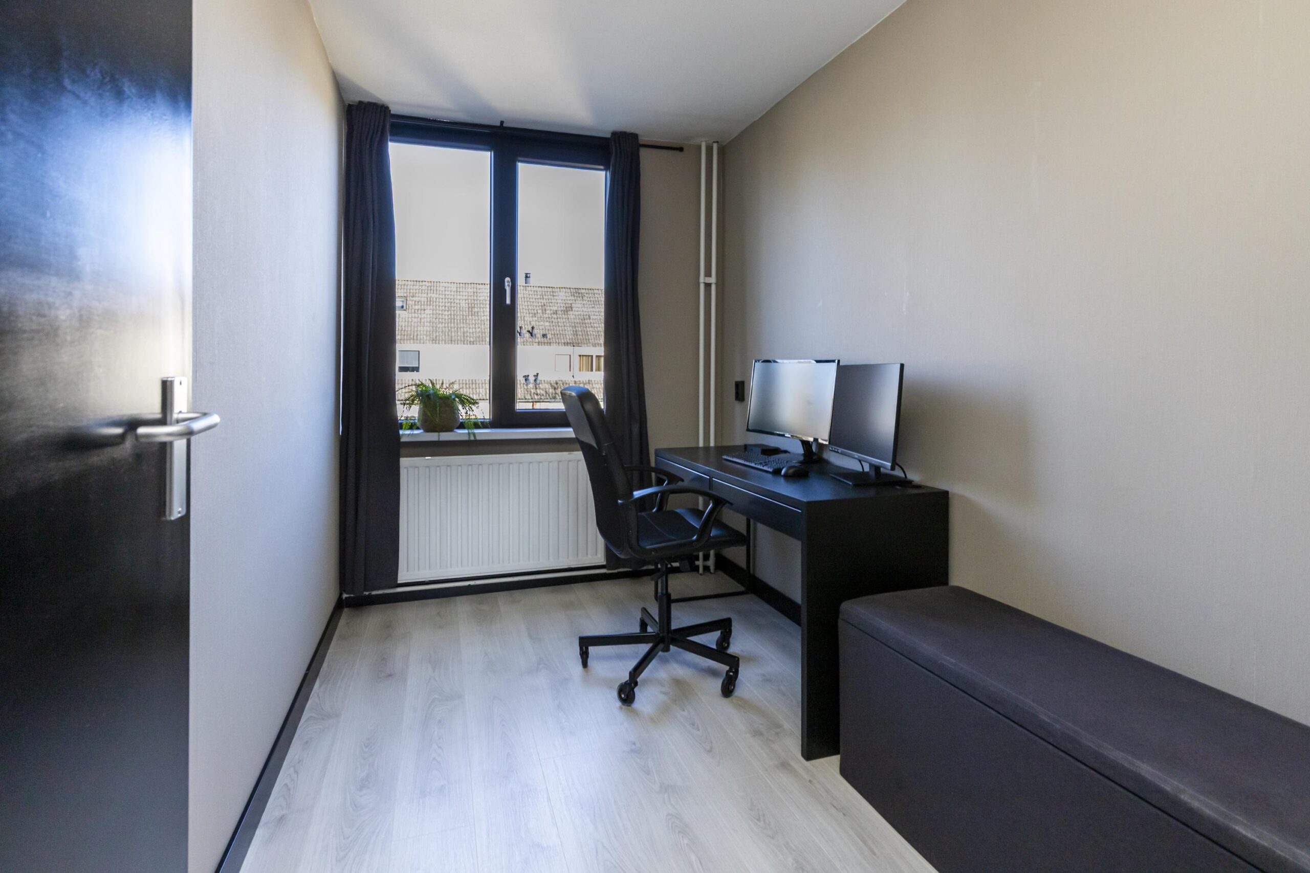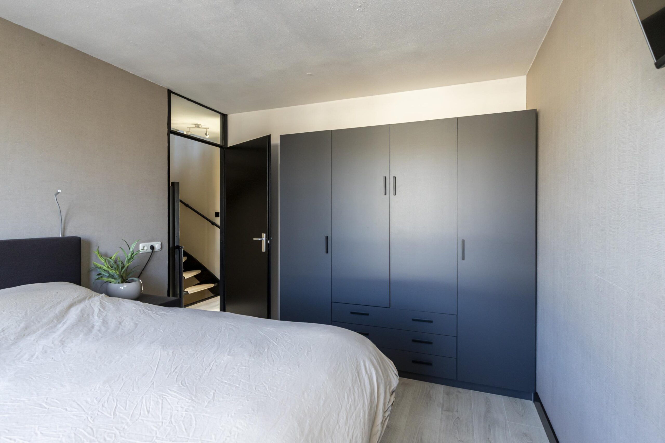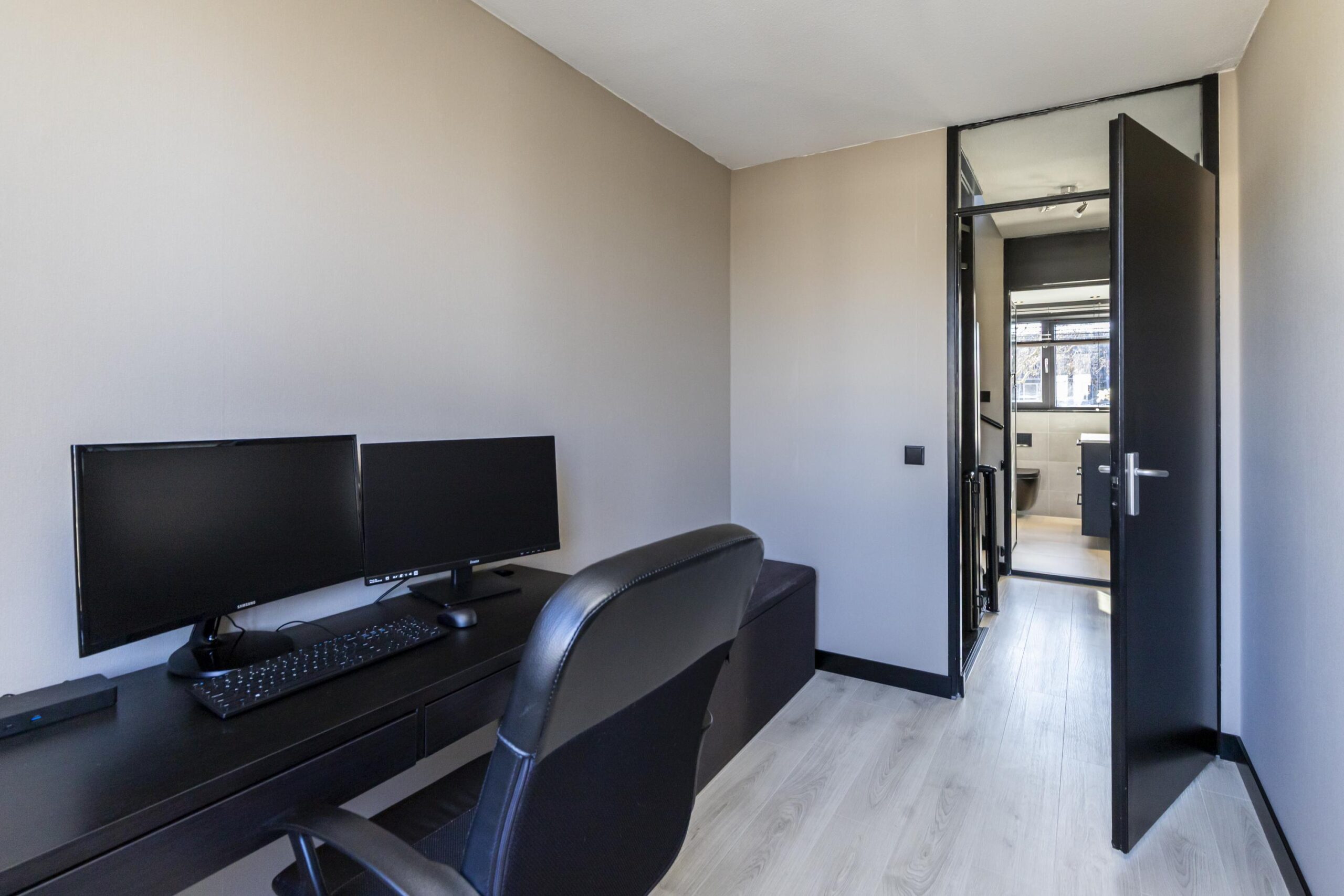 Op deze verdieping bevinden zich twee slaapkamers aan de achterijzde van de woning. Aan de voorzijde tref je de in 2023 gerenoveerde badkamer aan. De badkamer is strak afgewerkt met zwarte accenten en inbouwspots. Je vindt hier een inloopdouche, een dubbele wastafel, een handdoekenradiator en mechanische ventilatie. Alles is verzorgd en netjes uitgevoerd, helemaal van deze tijd. Aan de voorzijde is tevens de derde slaapkamer gesitueerd.