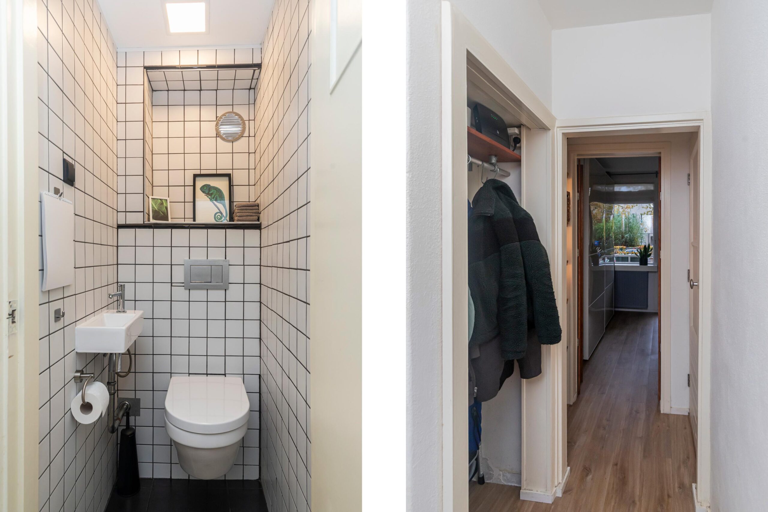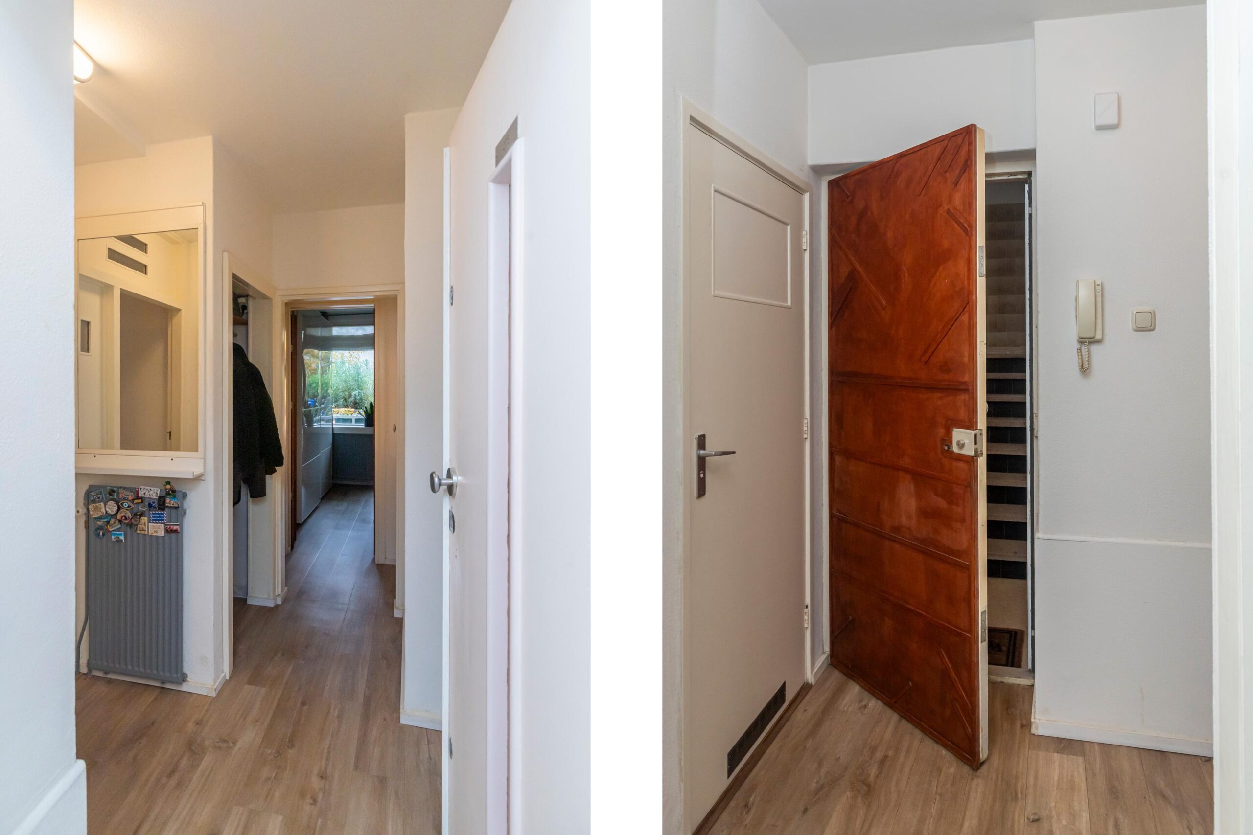 Middels de gemeenschappelijke entree met brievenbussen-/deurbellentableau komt u bij het trappenhuis waar u met een beperkt aantal treden de voordeur van het appartement bereikt. Achter de voordeur ligt de de hal met inbouwkast c.q. garderobekast. Modern toilet. De wooneetkamer (ca.1000x388/215) heeft een mooie, laminaatvloer en aan de voorzijde toegang tot het voorbalkon (ca.322x130) gelegen op het zuidoosten. Aan de achterzijde is een doorloop naar semi open moderne keuken (ca.305X222) voorzien van diverse inbouwapparatuur; inductiekookplaat met elektrische oven, vaatwasser, koel/vries combinatie. . Vanuit de keuken heeft u een toegang tot een klein achterbalkon met bergkast alwaar opstelplaats cv-combiketel en middels een kleine trap toegang tot de grote achtertuin (ca.890x486) en (ca.780x590) met achterom. Aan de voorzijde is de voorslaapkamer met toegang naar het voorbalkon. De badkamer is voorzien van een inloopdouche en wastafel. In de onderbouw bevindt zich een ruime berging (ca.392x295) met opstelplaats van wasmachine en droger.
