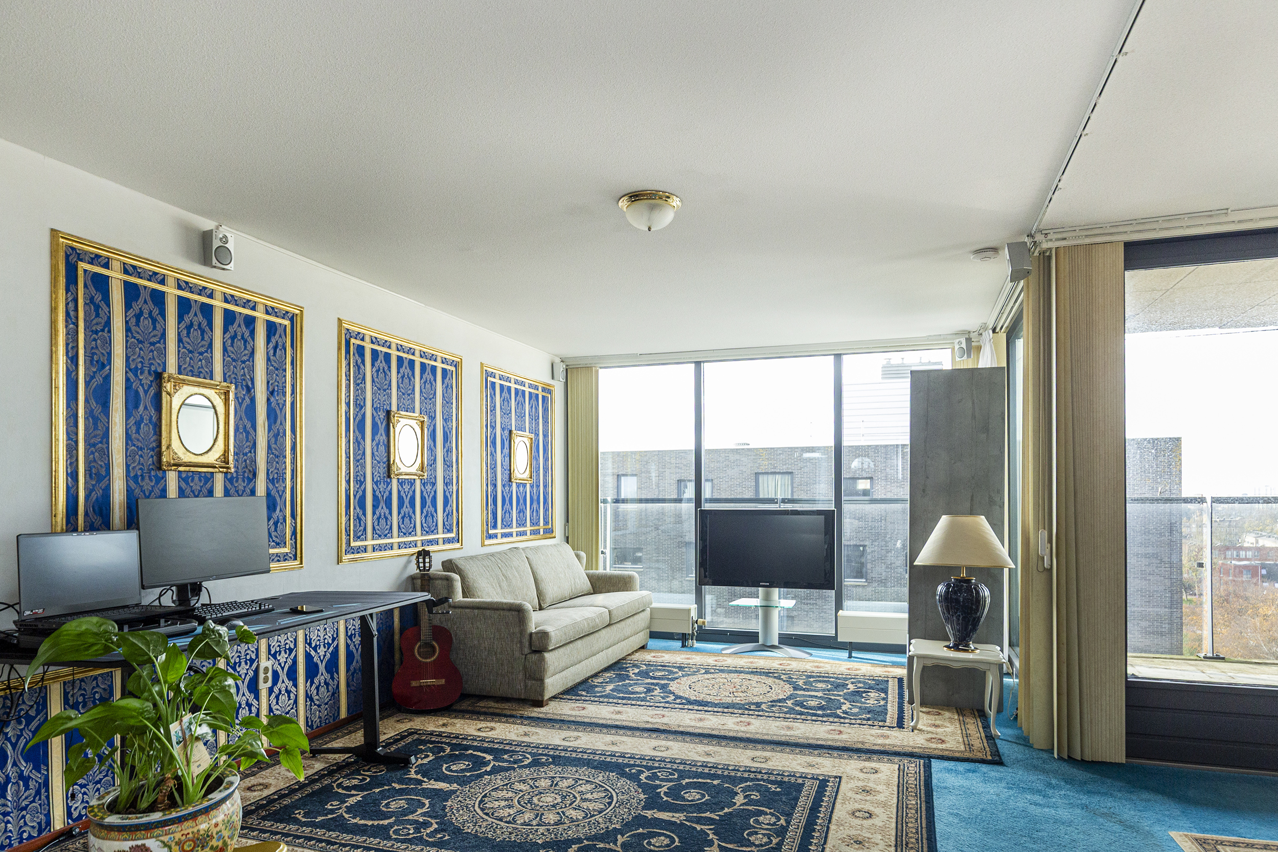 Op de achtste verdieping ligt de entree van het appartement. De ruime hal met meterkast, videofoon en praktische interne berging verbindt alle vertrekken. Het toilet met fonteintje ligt handig bij de entree. De lichte woonkamer heeft vloer-tot-plafond raampartijen en openslaande deuren naar het zonnige balkon. Aansluitend ligt de keuken met inbouwapparatuur waaronder een heteluchtoven en een afzuigschouw. Er zijn drie slaapkamers, twee ruim van formaat en een derde die uitstekend dienstdoet als werk of logeerkamer. De nette badkamer is compleet met ligbad, aparte douche en vaste wastafel.