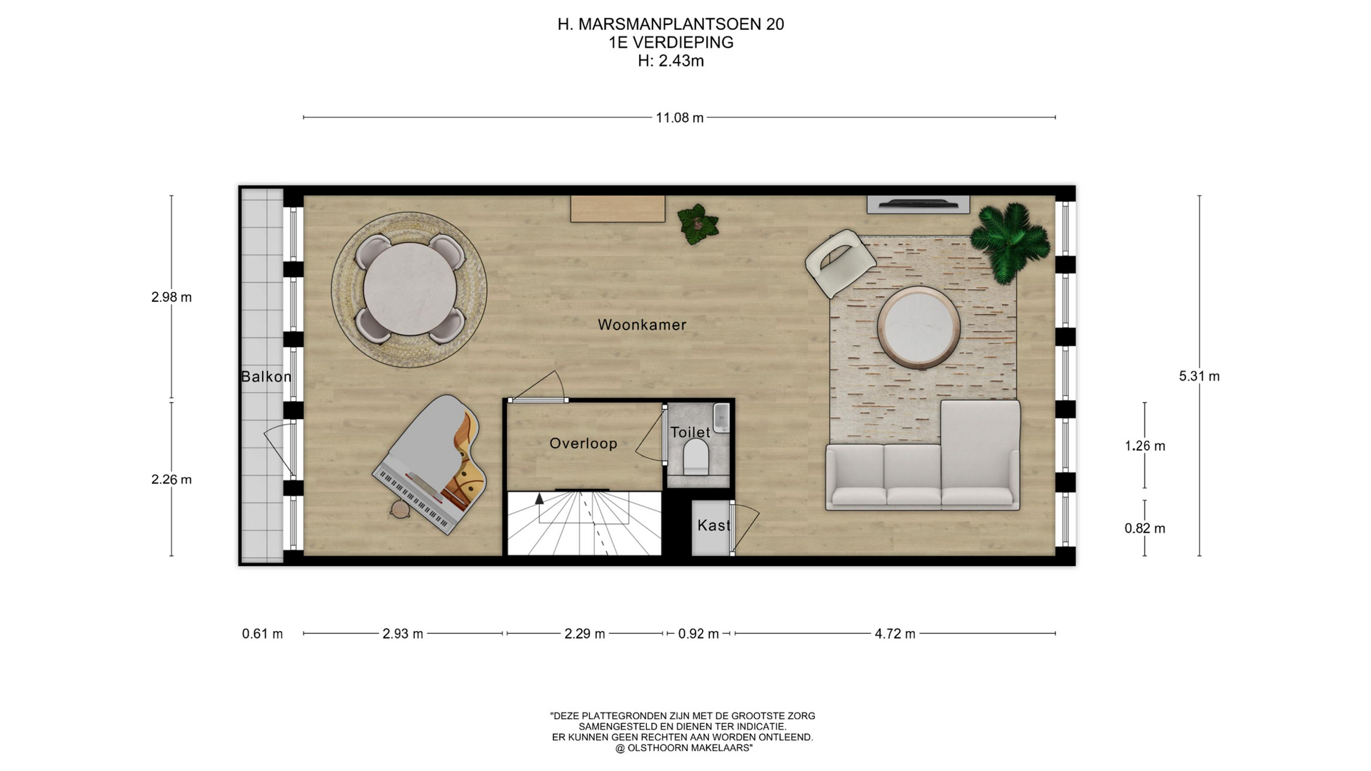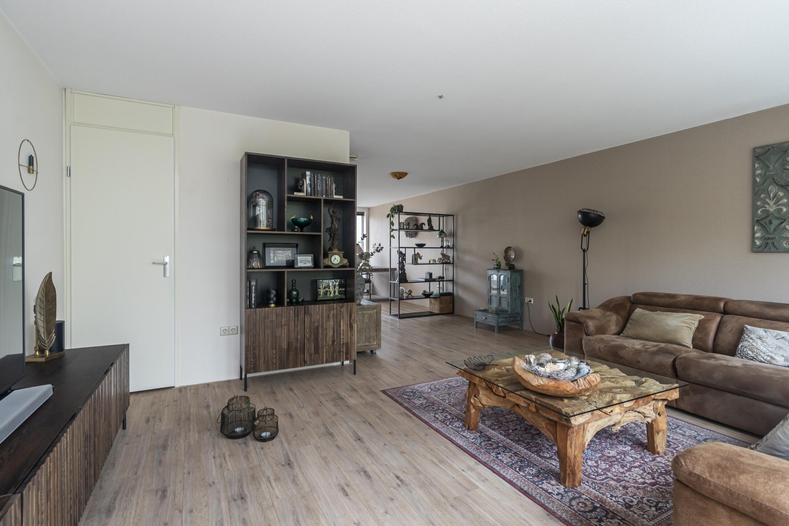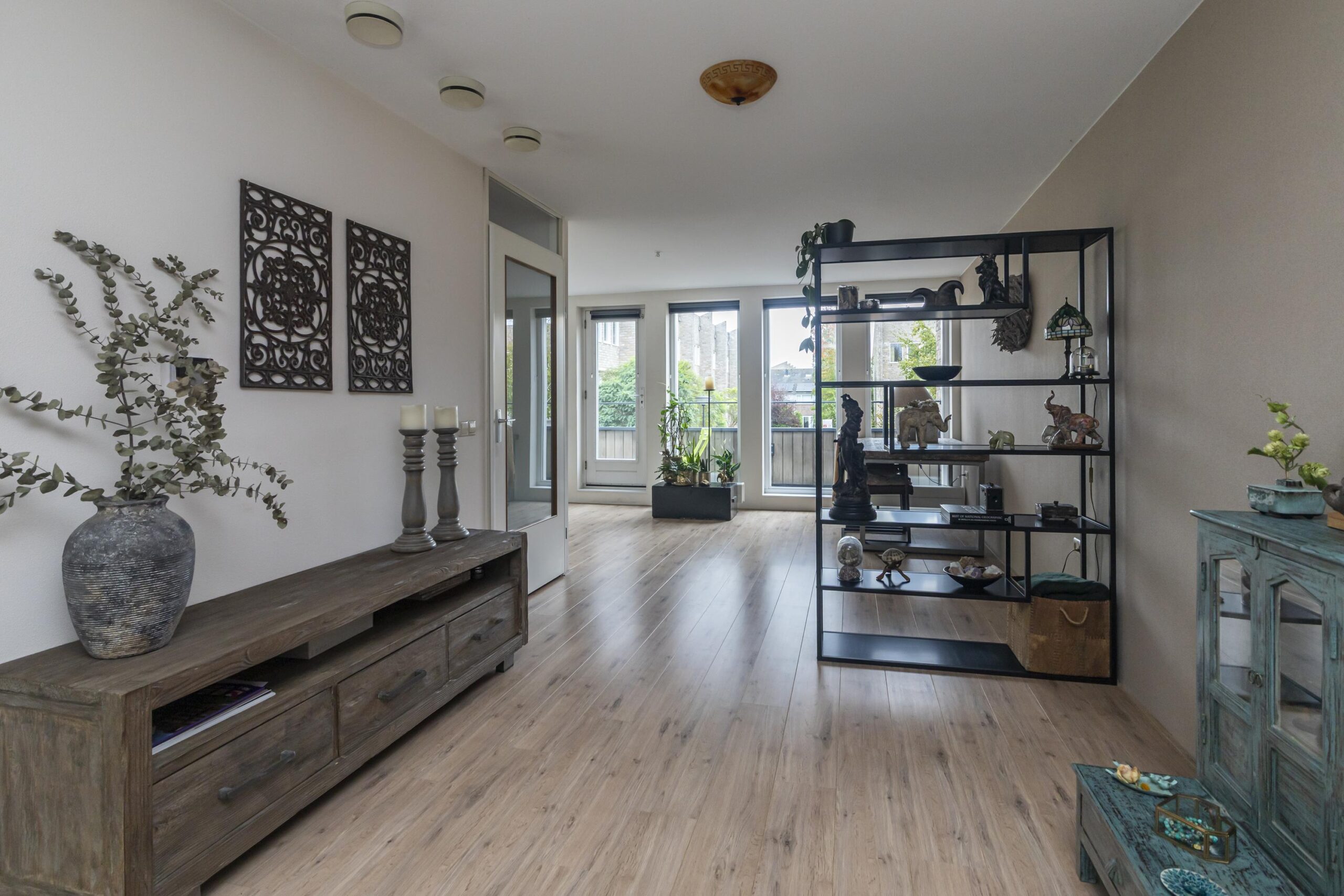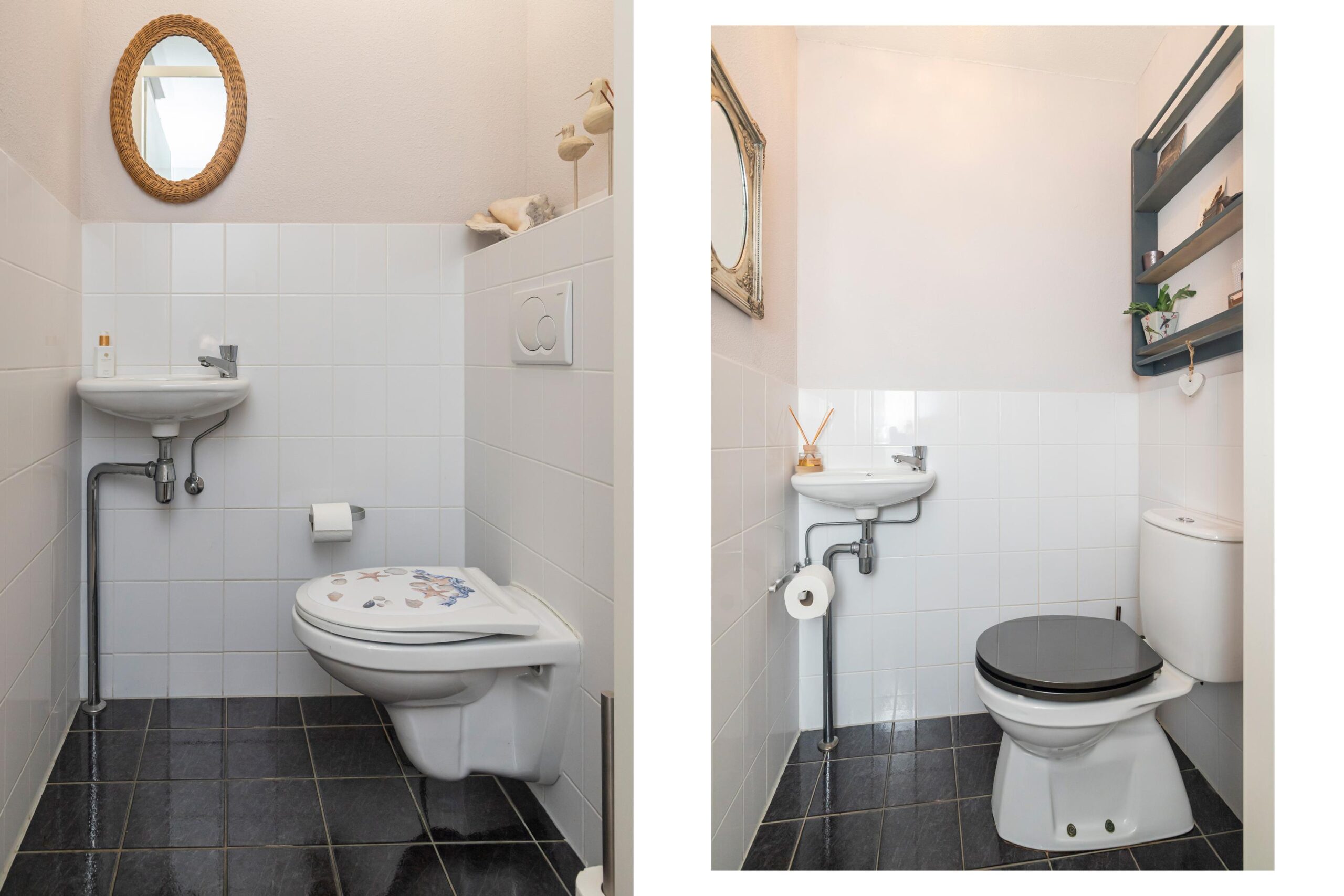 Overloop met separaat toilet. Royale woonkamer over de volle lengte met veel lichtinval, een zitgedeelte en een flexibele achterkamer ideaal voor een thuiswerkplek, tv hoek of eetkamer.