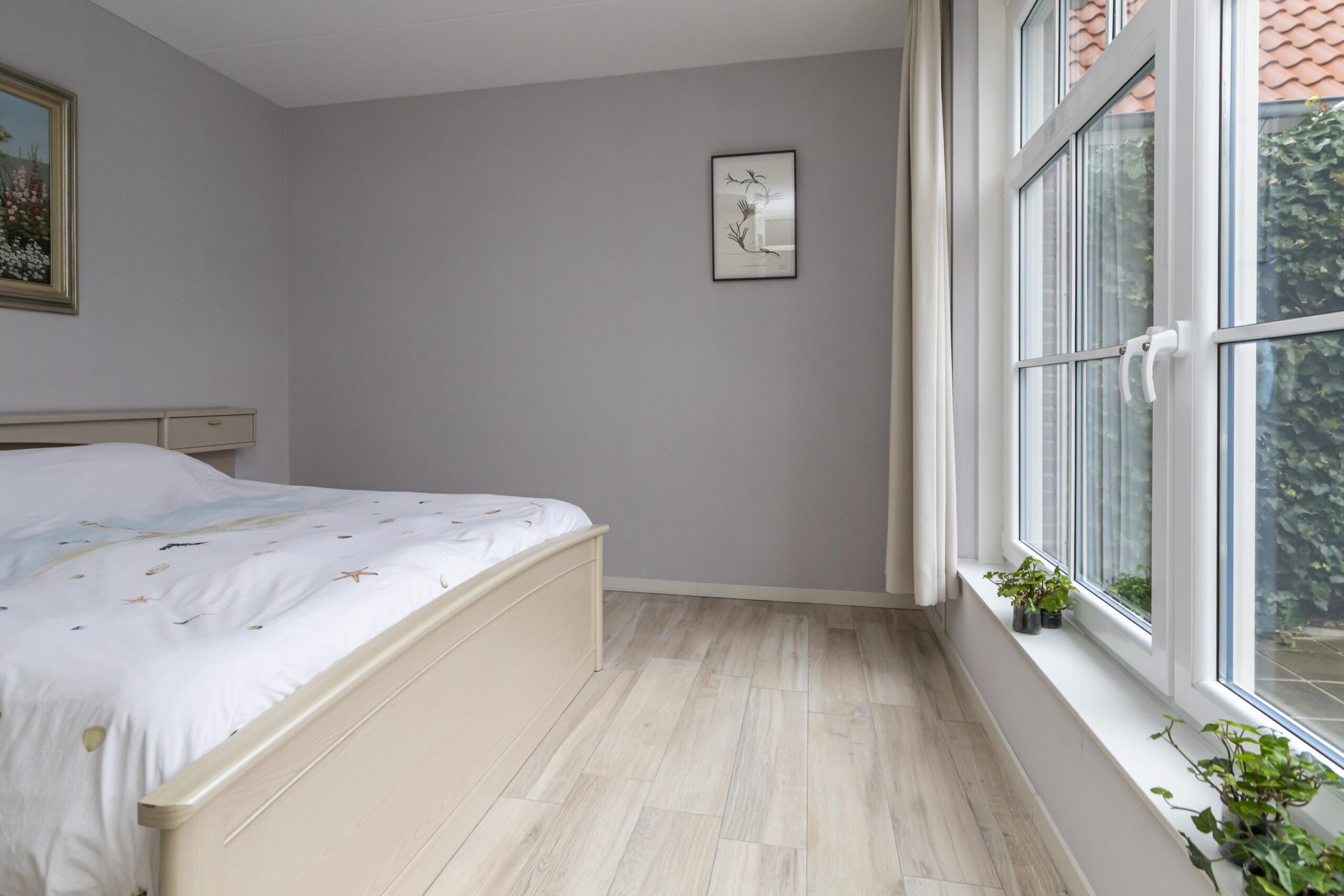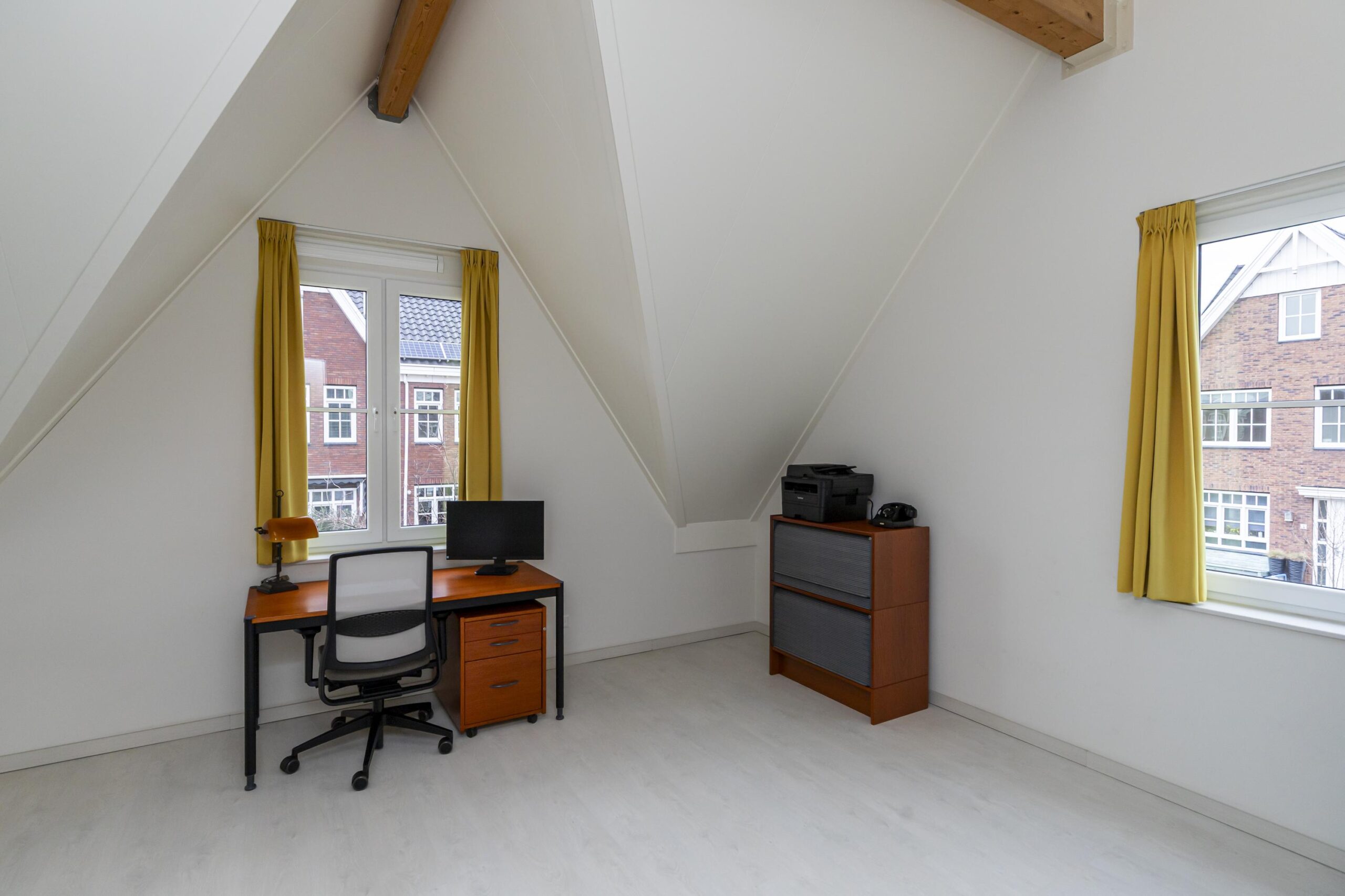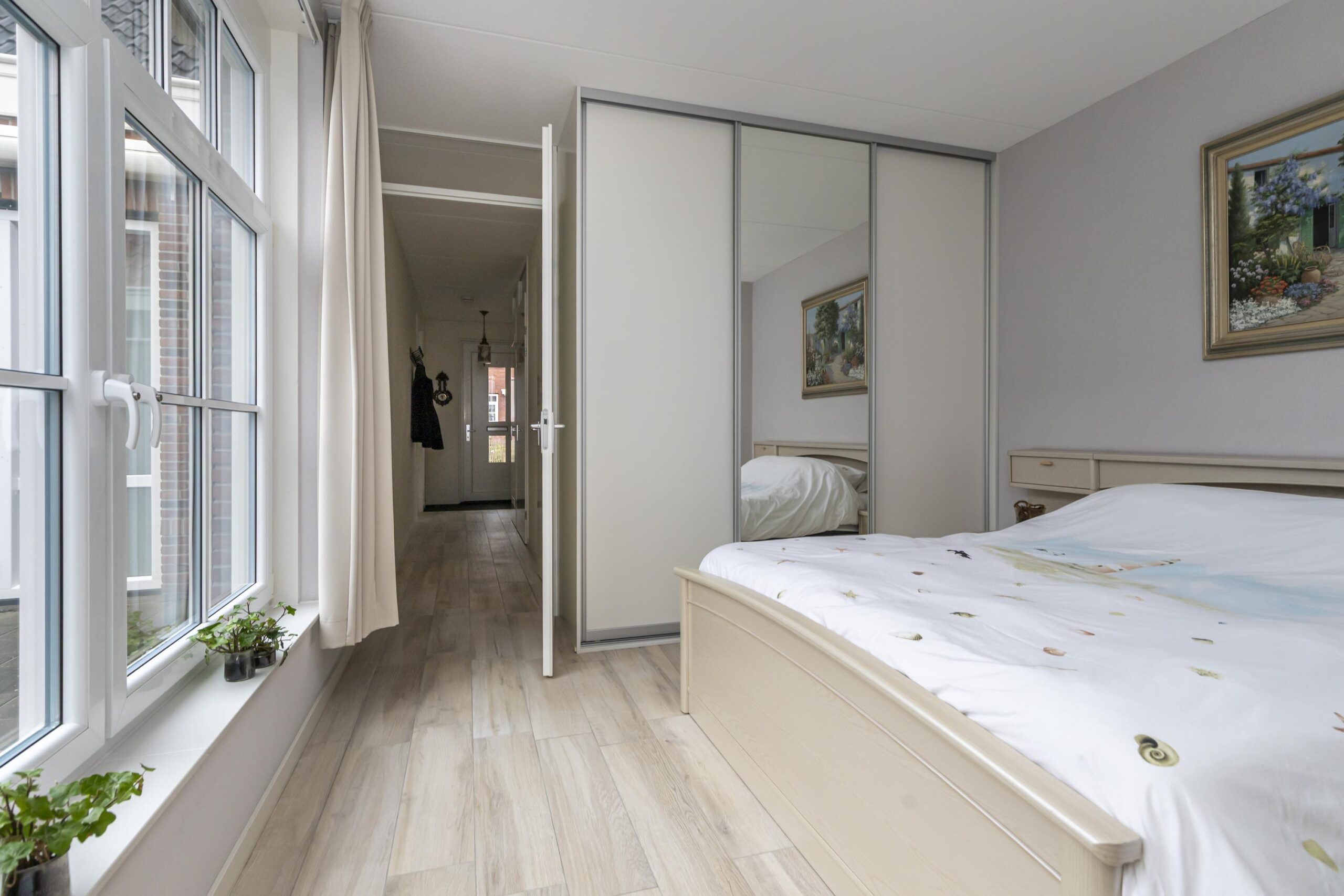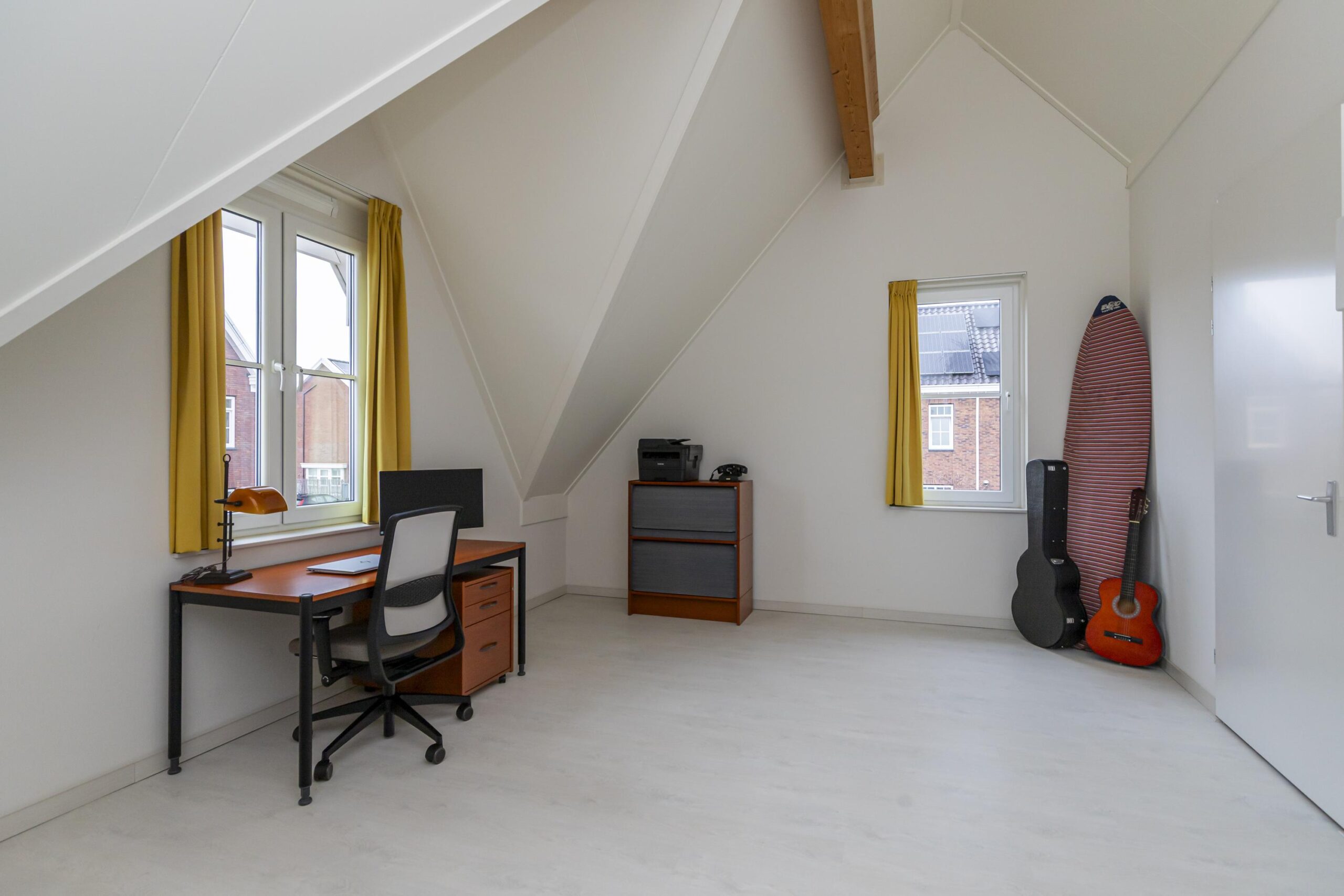 Overloop met toegang tot een ruime slaapkamer met veel lichtinval en een grote inpandige berging. Deze verdieping biedt bovendien extra kansen: met een dakkapel en een slimme herindeling is het hier mogelijk om een derde slaapkamer te maken. Er is ook voldoende ruimte om in de nok een vliering/zolder te realiseren.
