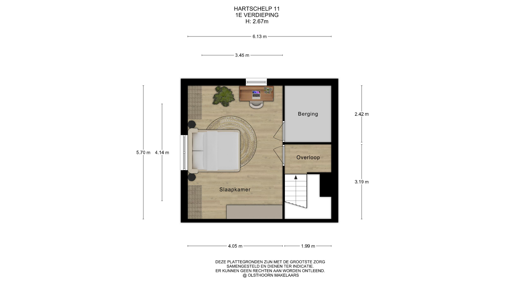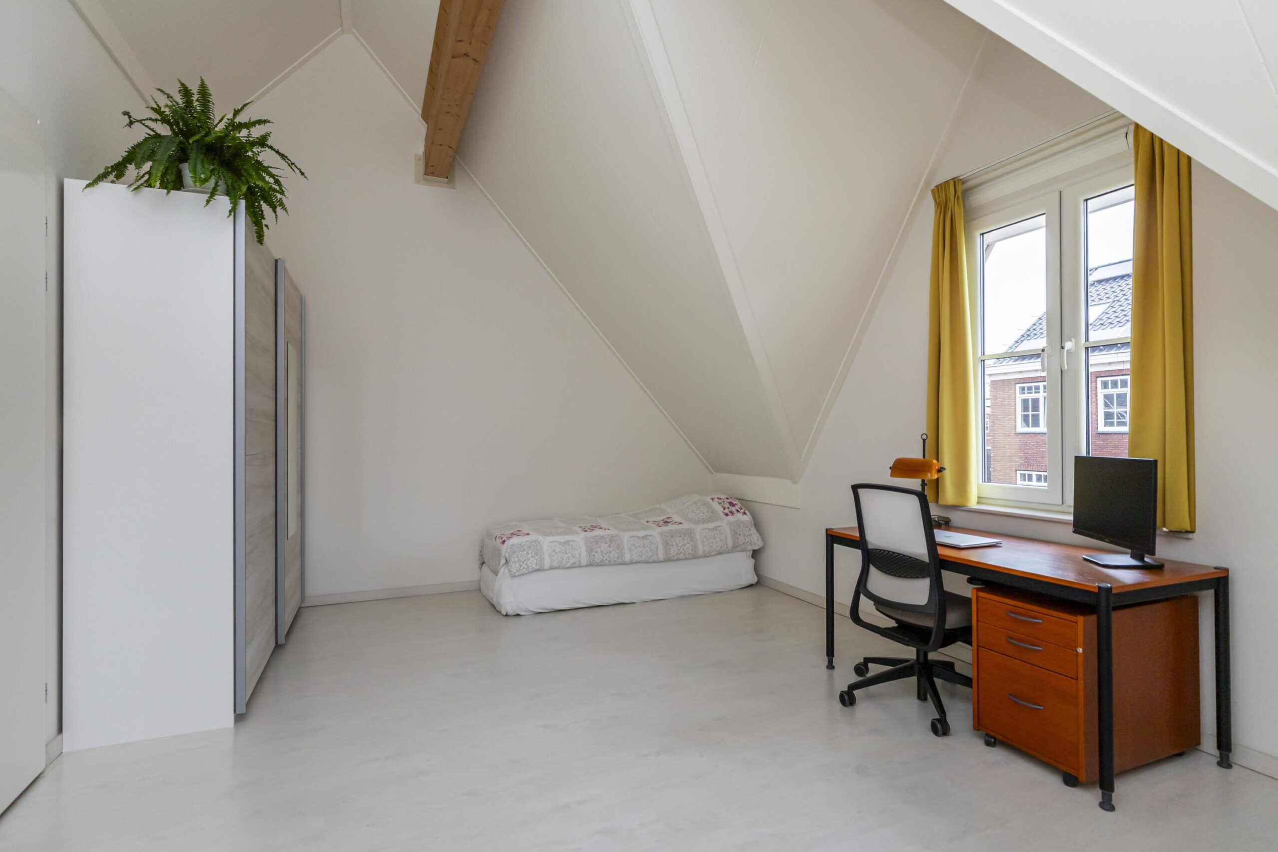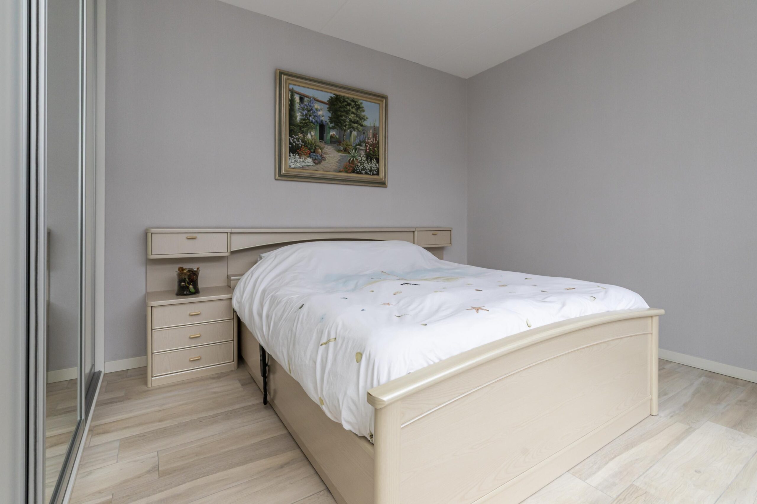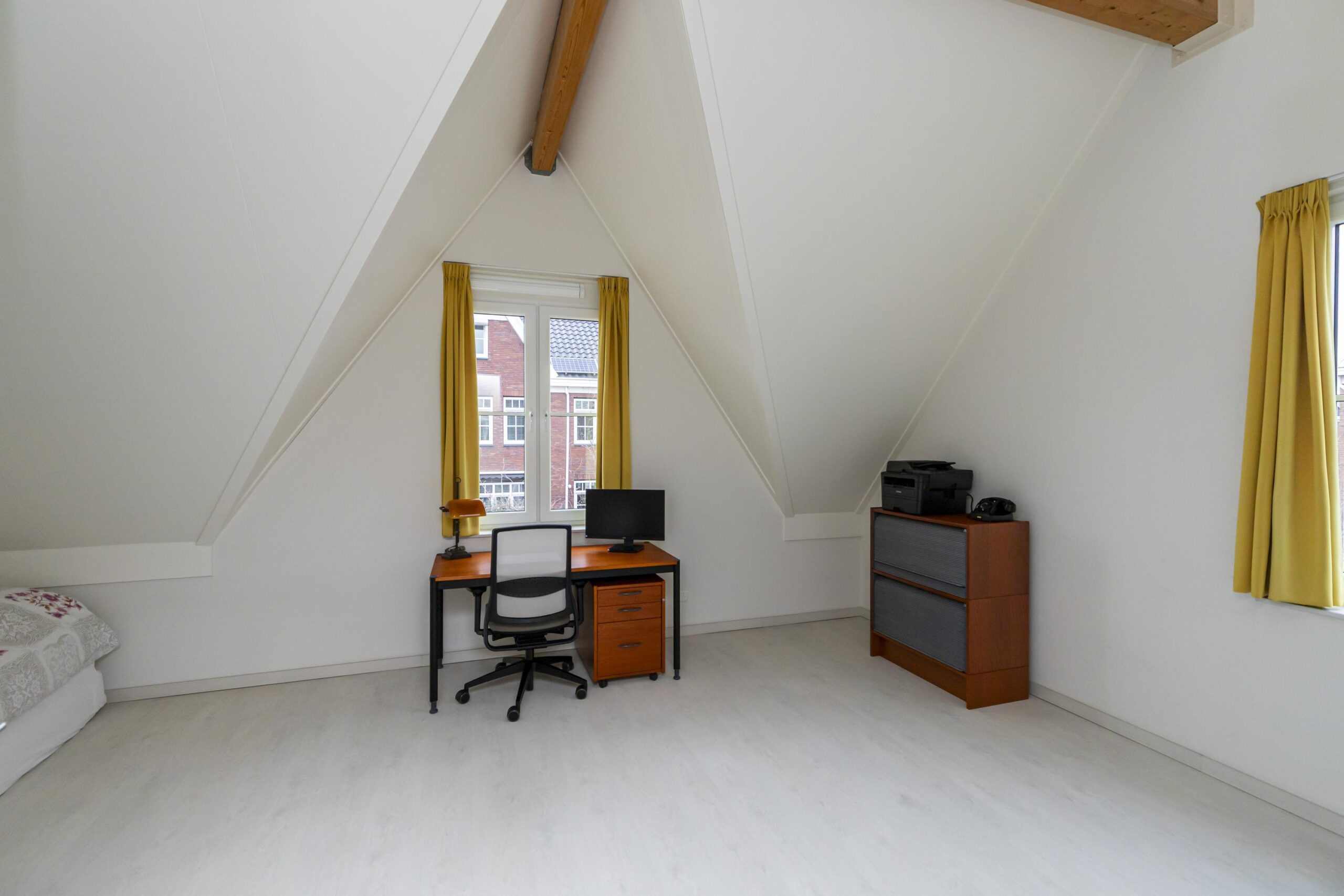 Overloop met toegang tot een ruime slaapkamer met veel lichtinval en een grote inpandige berging. Deze verdieping biedt bovendien extra kansen: met een dakkapel en een slimme herindeling is het hier mogelijk om een derde slaapkamer te maken. Er is ook voldoende ruimte om in de nok een vliering/zolder te realiseren.