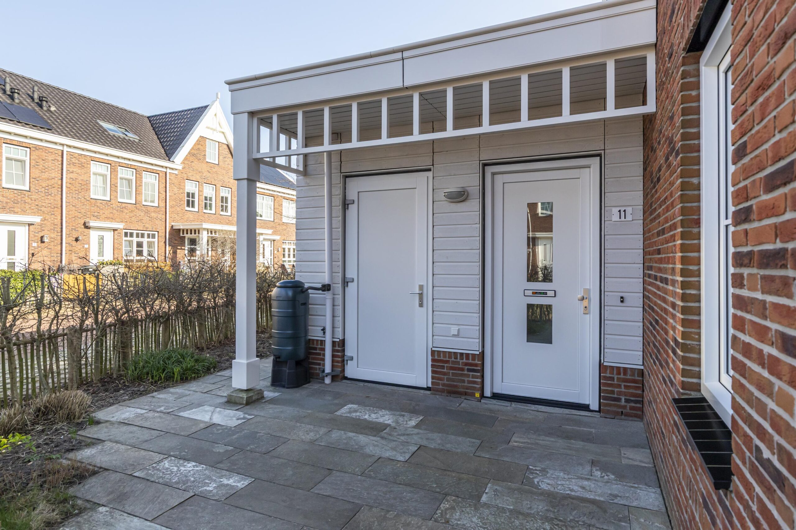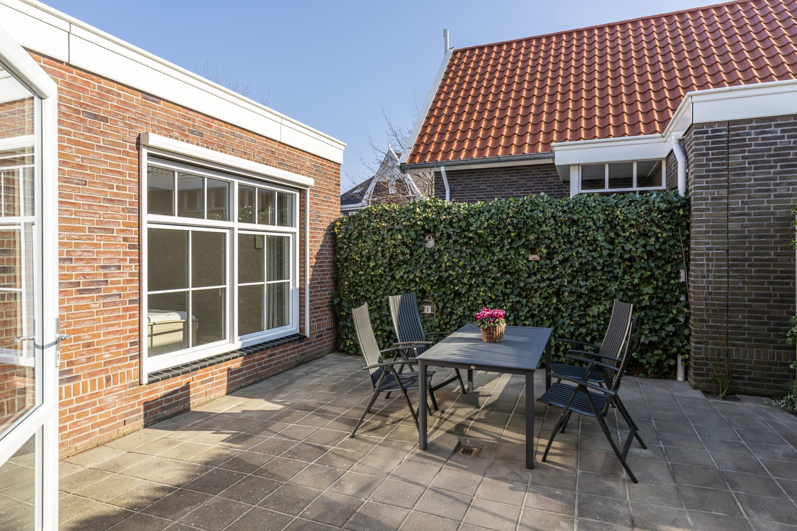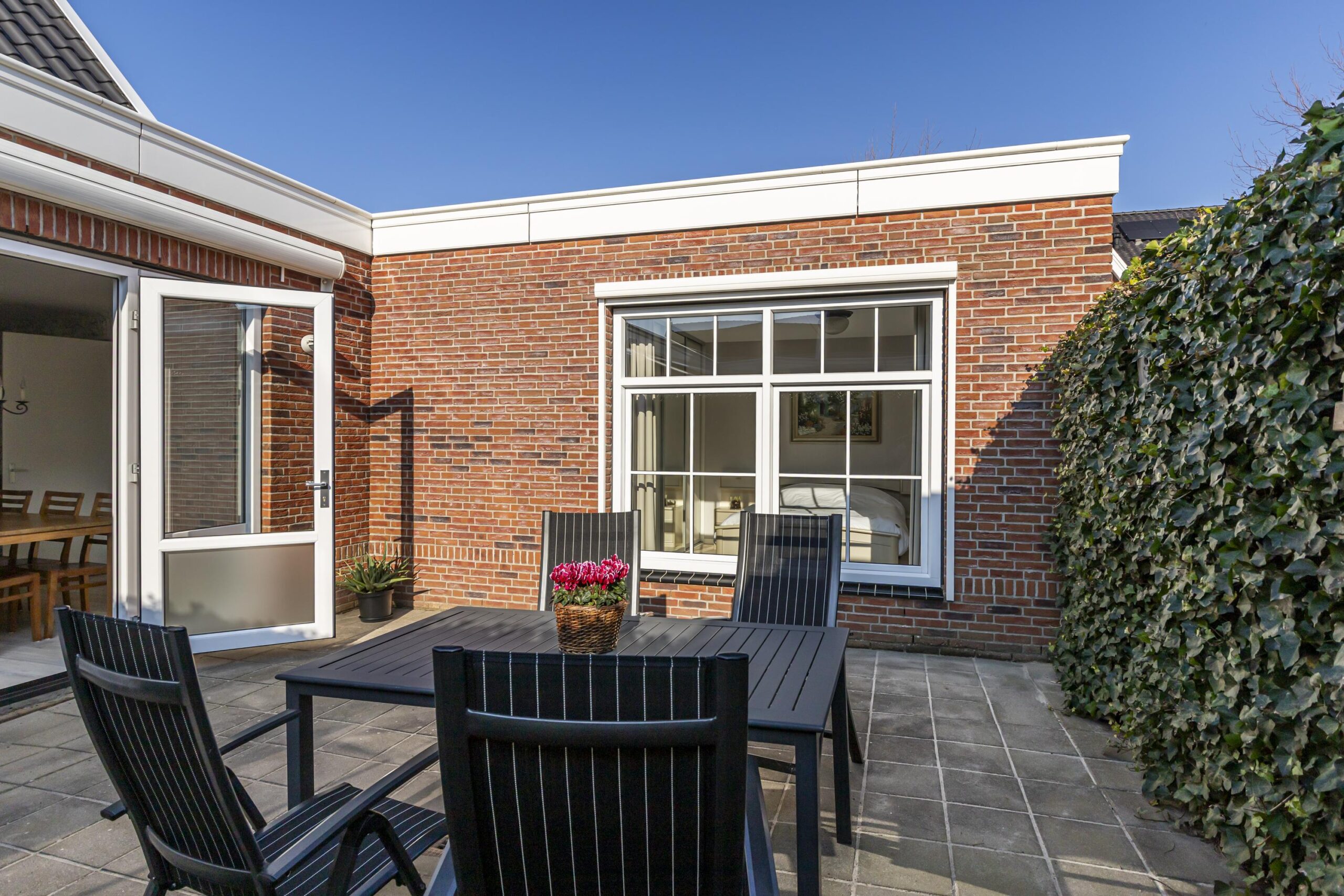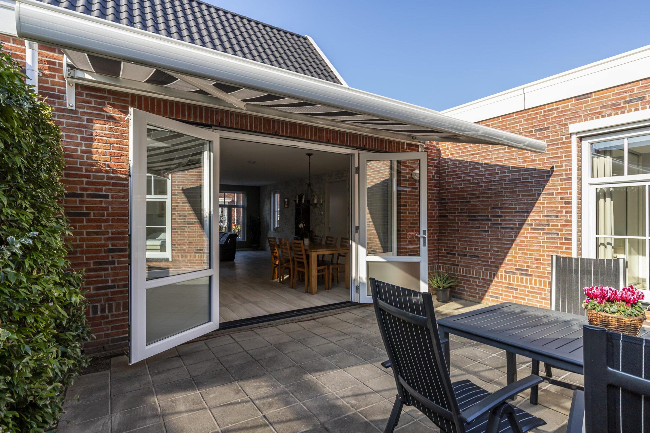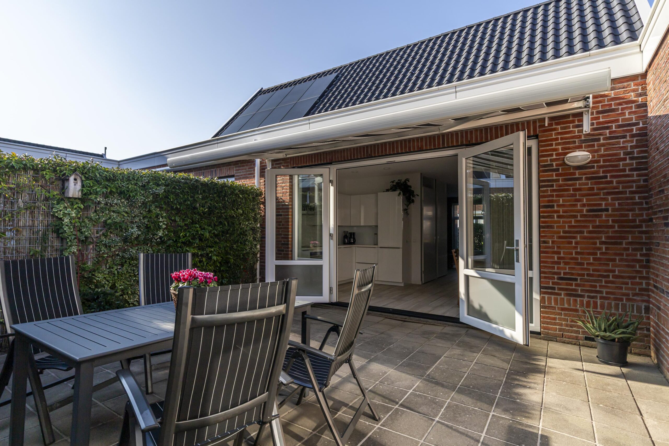 Rondom de woning liggen een voor-, zij- en achtertuin. Dankzij de hoekligging geniet je van extra ruimte en vrijheid met eventueel mogelijkheid tot een uitbouw. De achtergevel van de woning is voorzien van een elektrisch bedienbaar knikarm zonnescherm, zodat het in de achtertuin heerlijk genieten is op zonnige dagen.