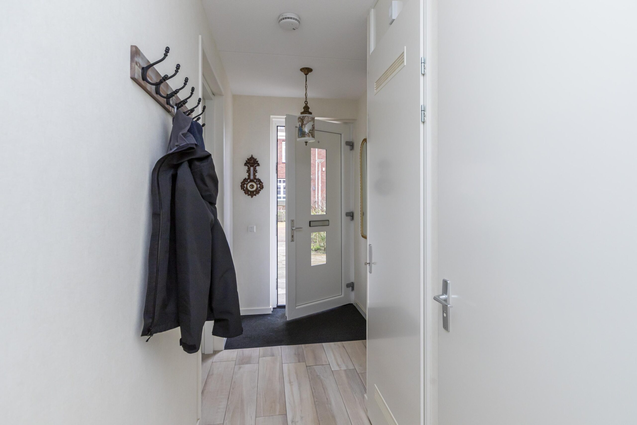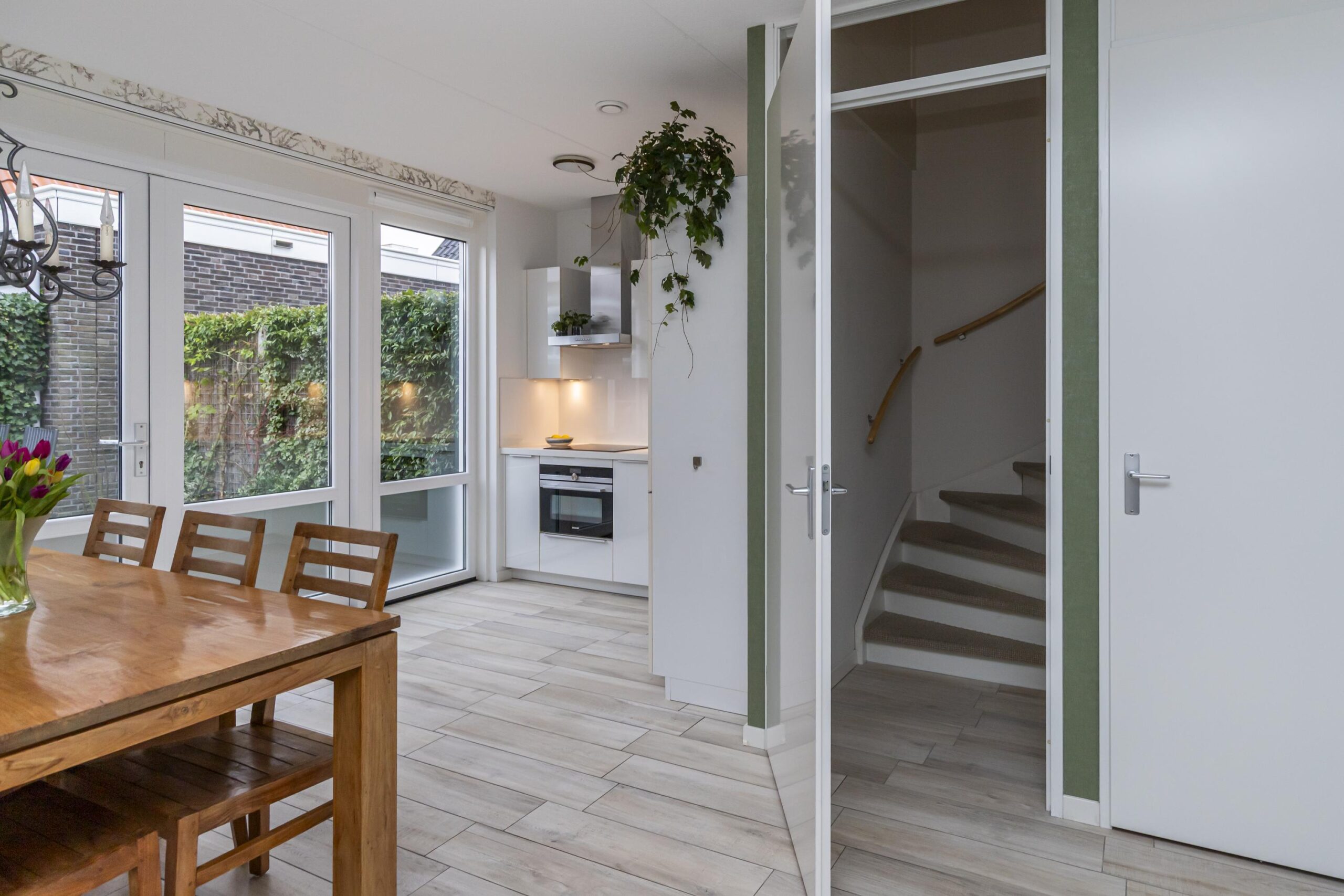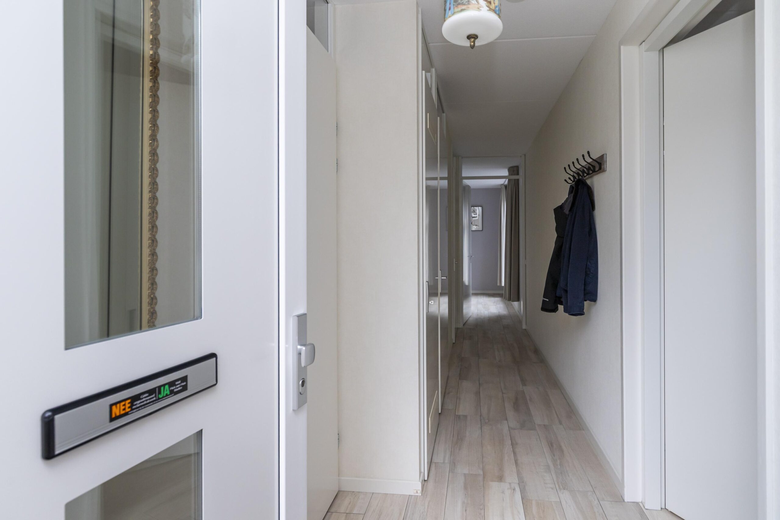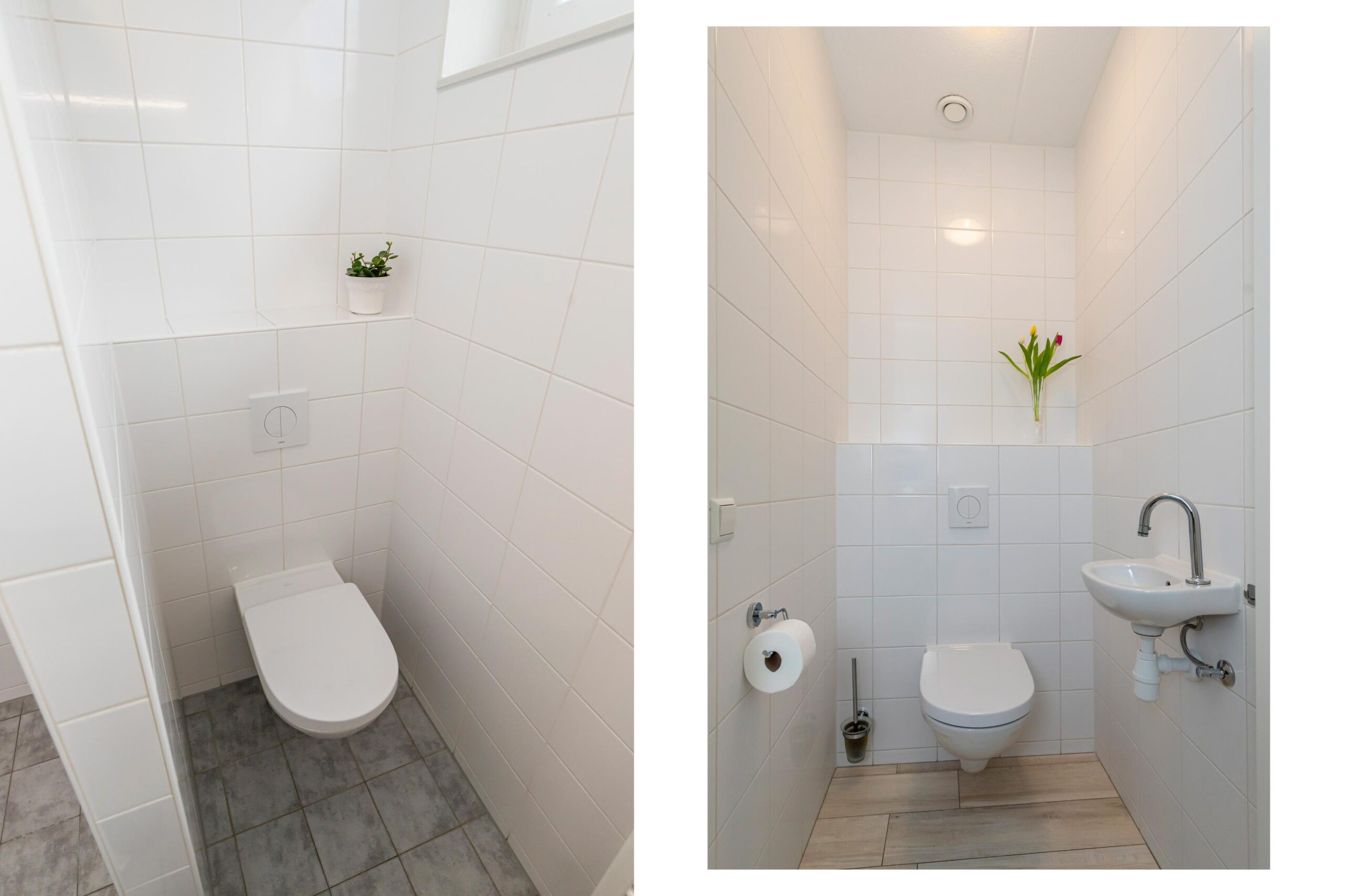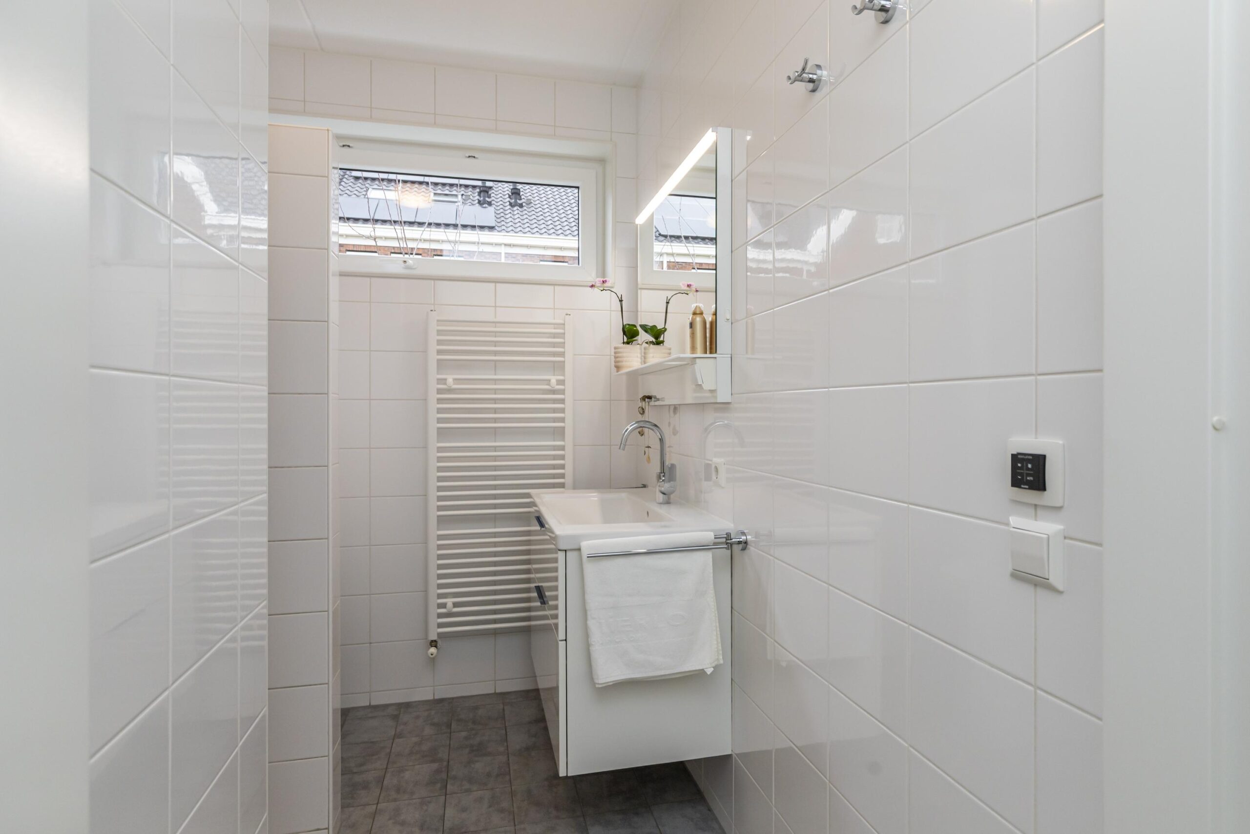 In de hal bevinden zich daarnaast toegang tot toilet, badkamer, slaapkamer en woonkamer. De badkamer is voorzien van inloopdouche, tweede toilet, wastafelmeubel en een design radiator. De slaapkamer heeft een inbouwkast en grote openslaande ramen met een elektrische screen. De lichte woonkamer heeft aan de voorzijde het zitgedeelte en aan de achterzijde de keuken (Siemens inbouwapparatuur).
