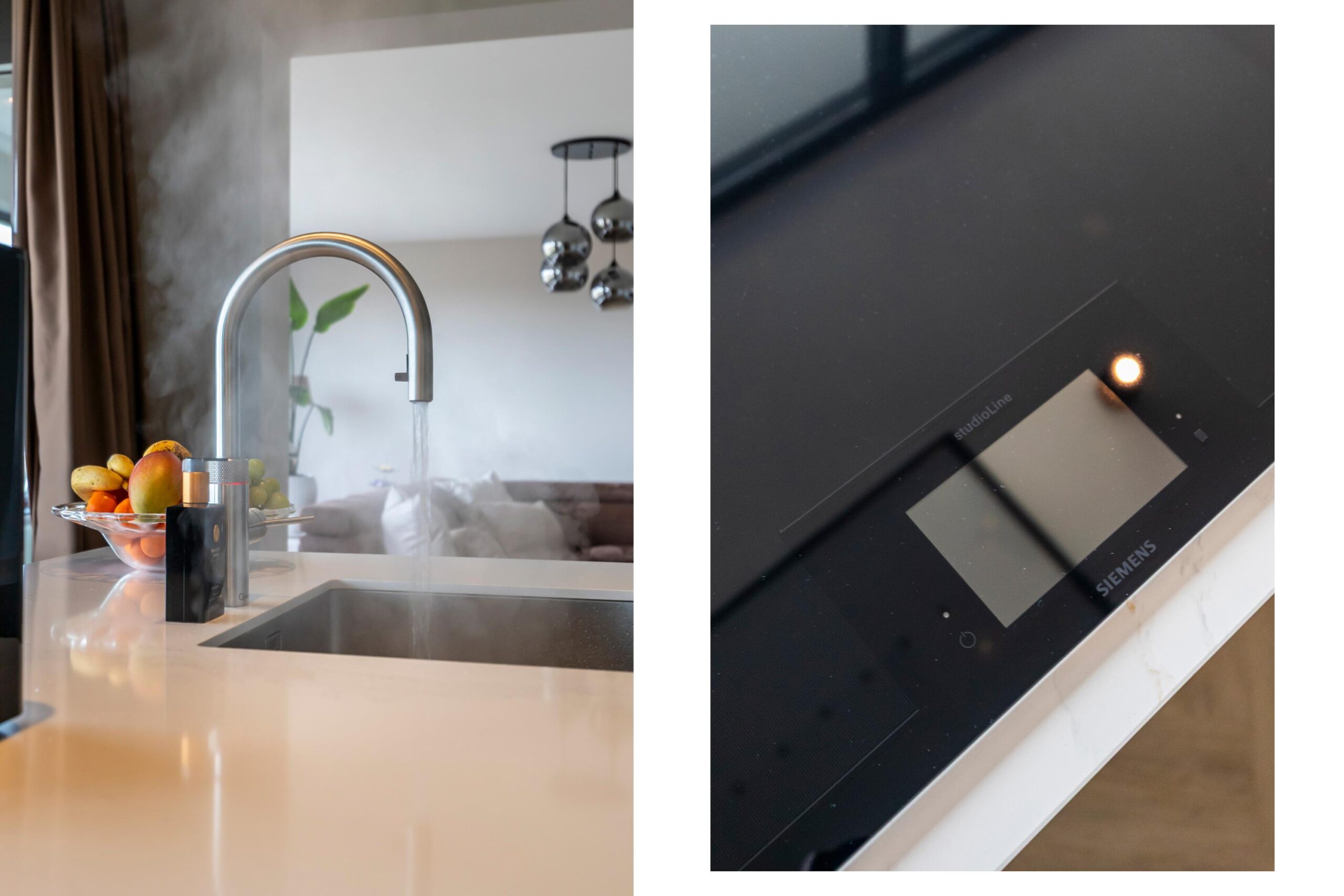 De woonkeuken uit 2021 vormt een centraal onderdeel van de woning en is zowel stijlvol als praktisch ingericht. Het kook en spoeleiland, de ruime kastruimte met uittreklades en het composiet werkblad maken de keuken zeer compleet. De keuken is voorzien van diverse hoogwaardige inbouwapparatuur, waaronder een flexinductiekookplaat, combi oven magnetron, combi stoomoven, grote koelkast, separate No Frost vriezer, plafondafzuiging met geïntegreerde sfeerverlichting, vaatwasser en Quooker. De apparatuur is tevens via wifi te bedienen.