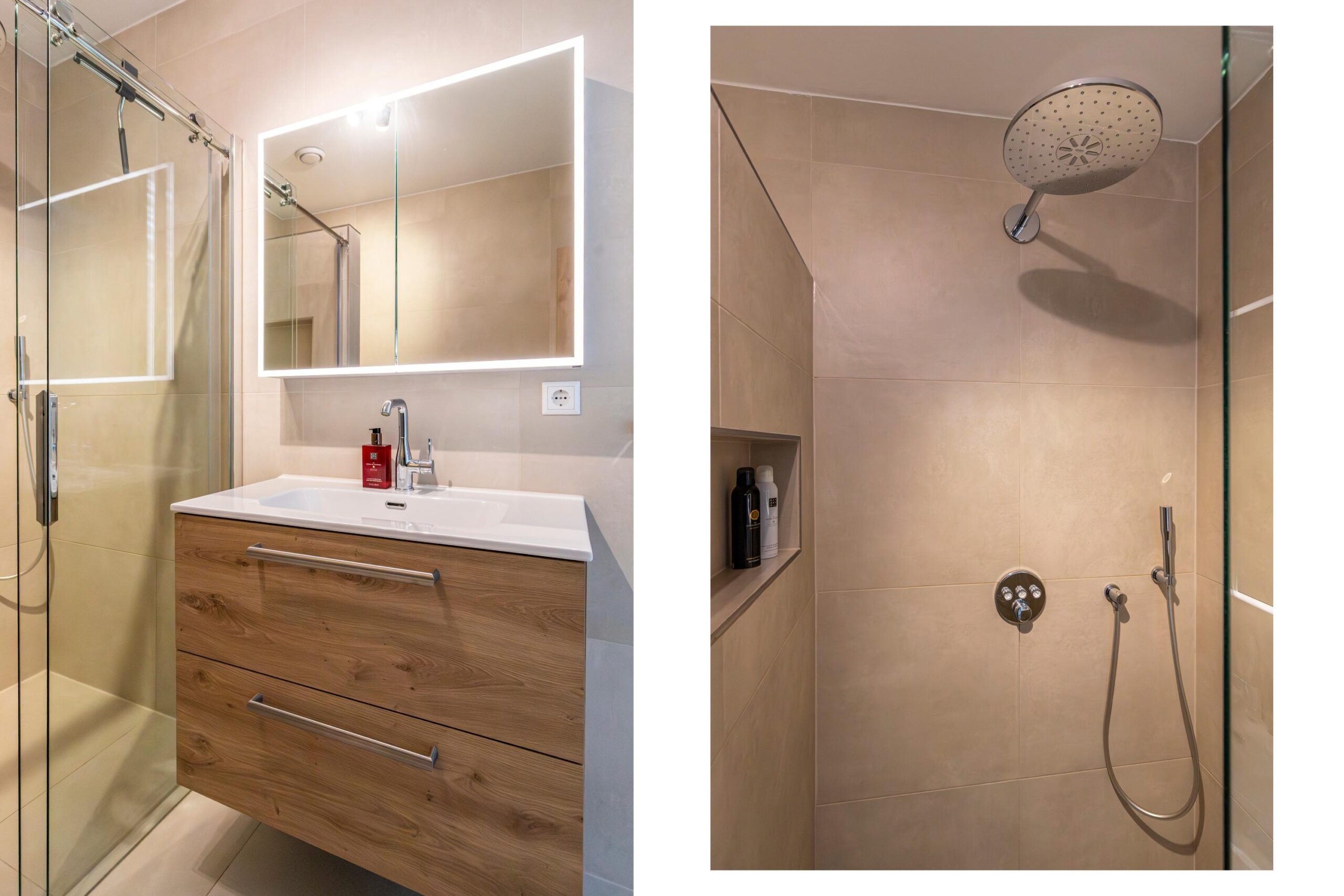 De moderne badkamer uit 2021 is strak afgewerkt en voorzien van een ligbad, inloop regendouche, wastafelmeubel, kolomkast en designradiator. Het separate toilet met fontein is eveneens vernieuwd in dezelfde stijl. Daarnaast is er een praktische wasruimte met mechanische ventilatie.