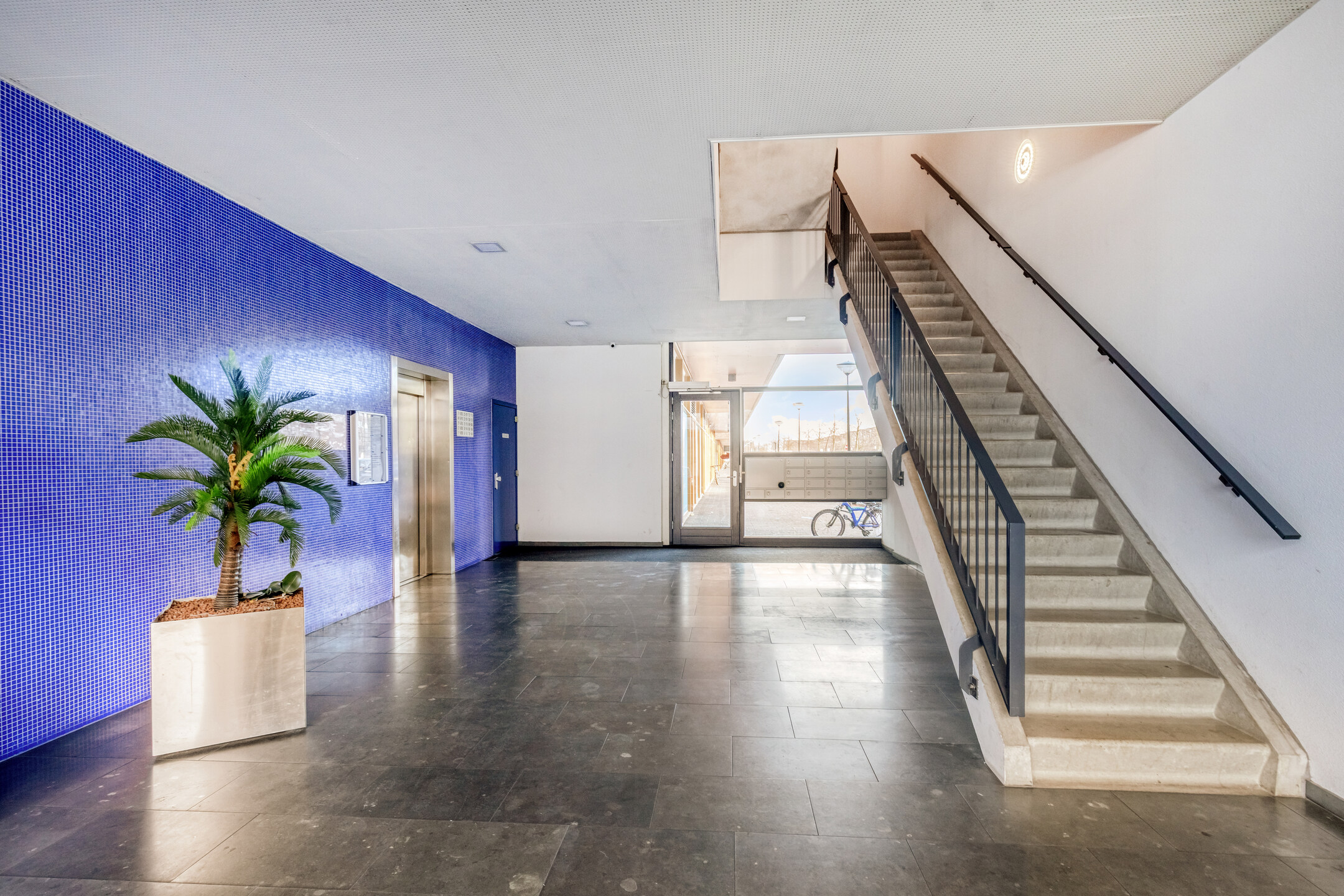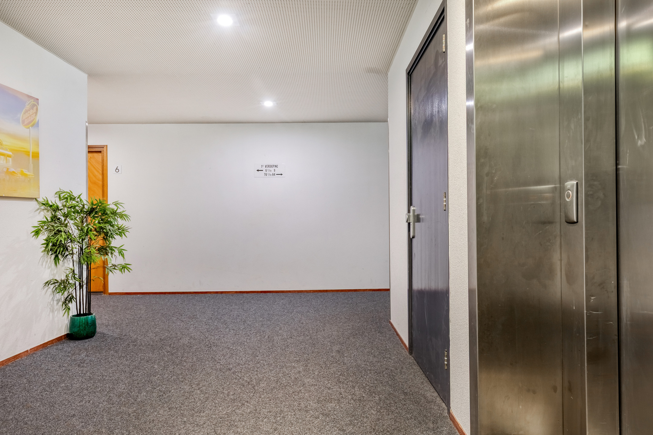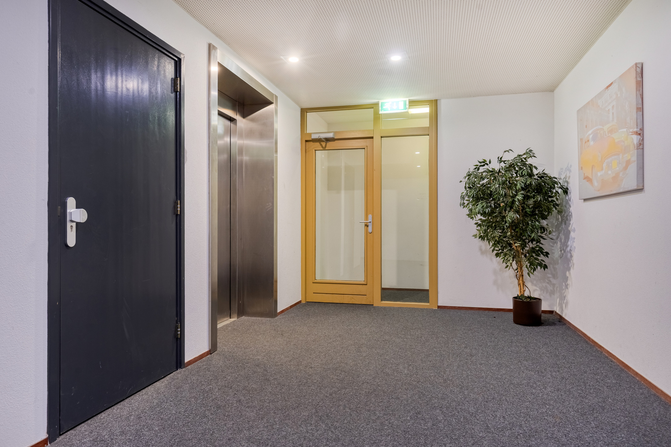 Afgesloten centrale hal met brieven- en bellentableau. Via de trap of lift bereik je de eerste verdieping. In de onderbouw bevinden zich de (fietsen)bergingen, ideaal voor extra opslagruimte.
